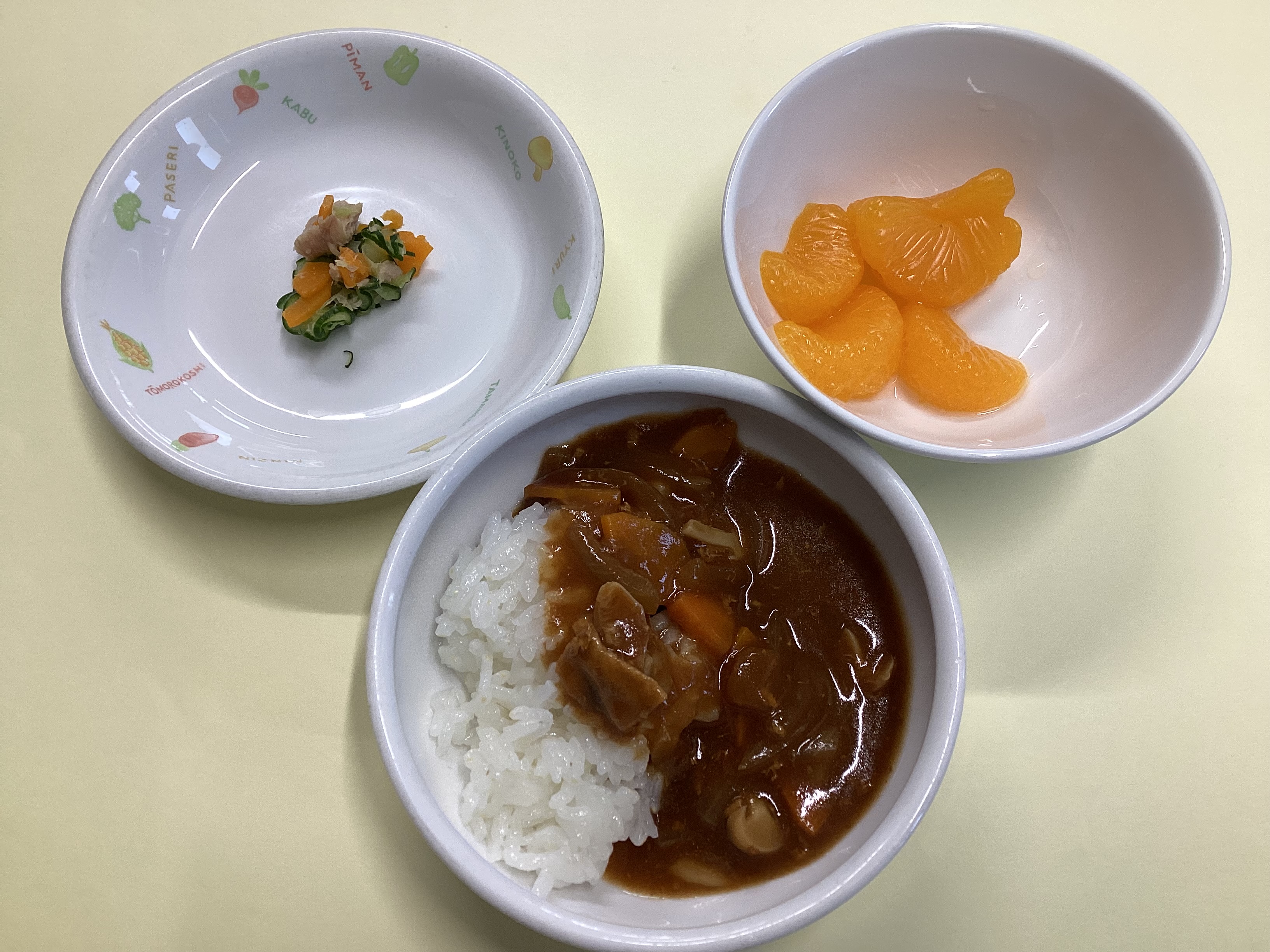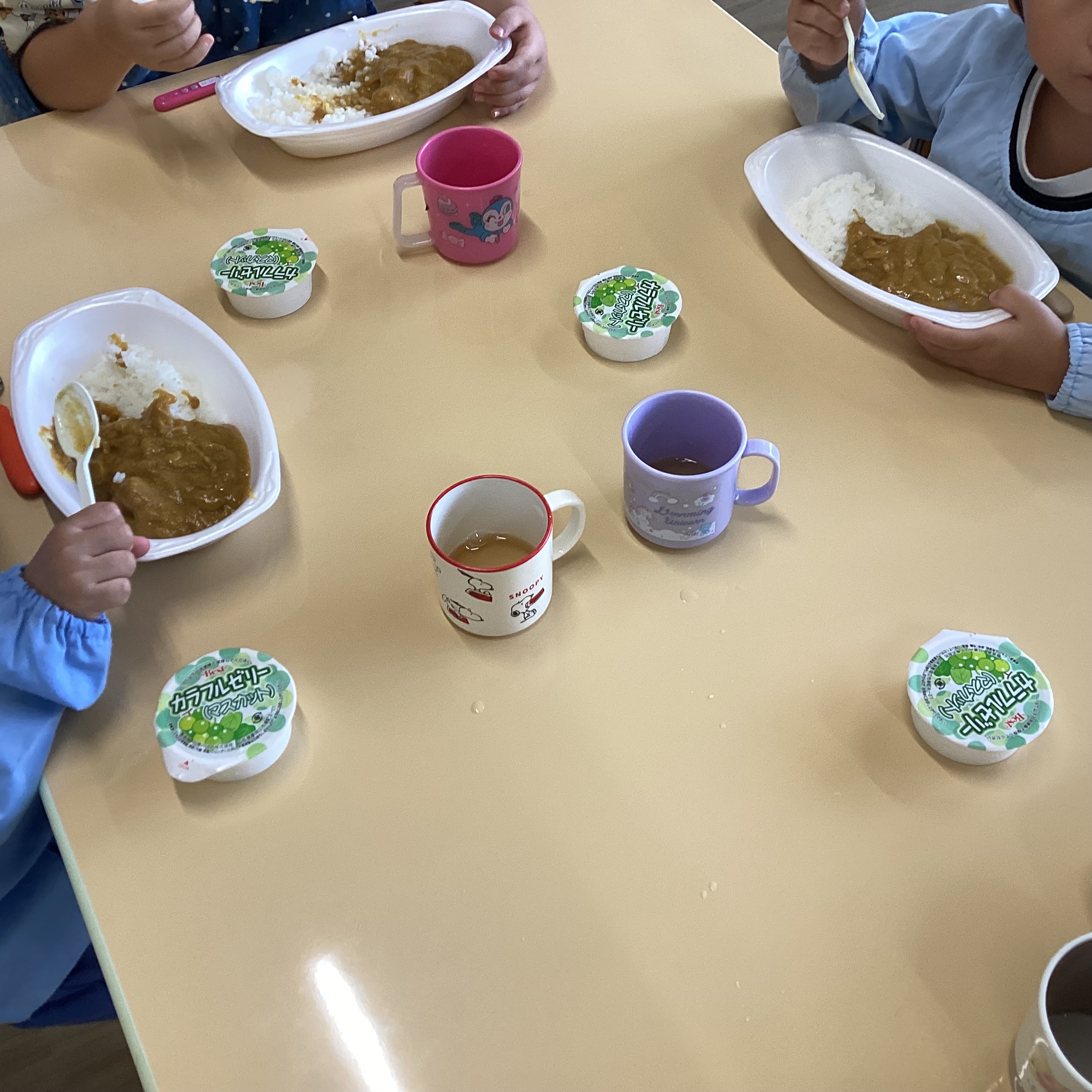 令和7年9月1日のお給食♪ 2025年 9月 5日 Fri 管理者 9月1日は防災の日ということで、幼児組さんは防災食用のカレーとご飯を食べました(^O^) ご家庭でも防災の備えをしっかりとしておきましょう! 幼児 ・非常食用カレーライス ・ゼリー カレー美味しかったようで、みんなよく食べていました(*^-^*) 未満児 ・ハヤシライス ・ツナサラダ ・みかん缶 未満児さんたちも幼児組さんになったら防災食のカレー食べましょうね('ω')ノ