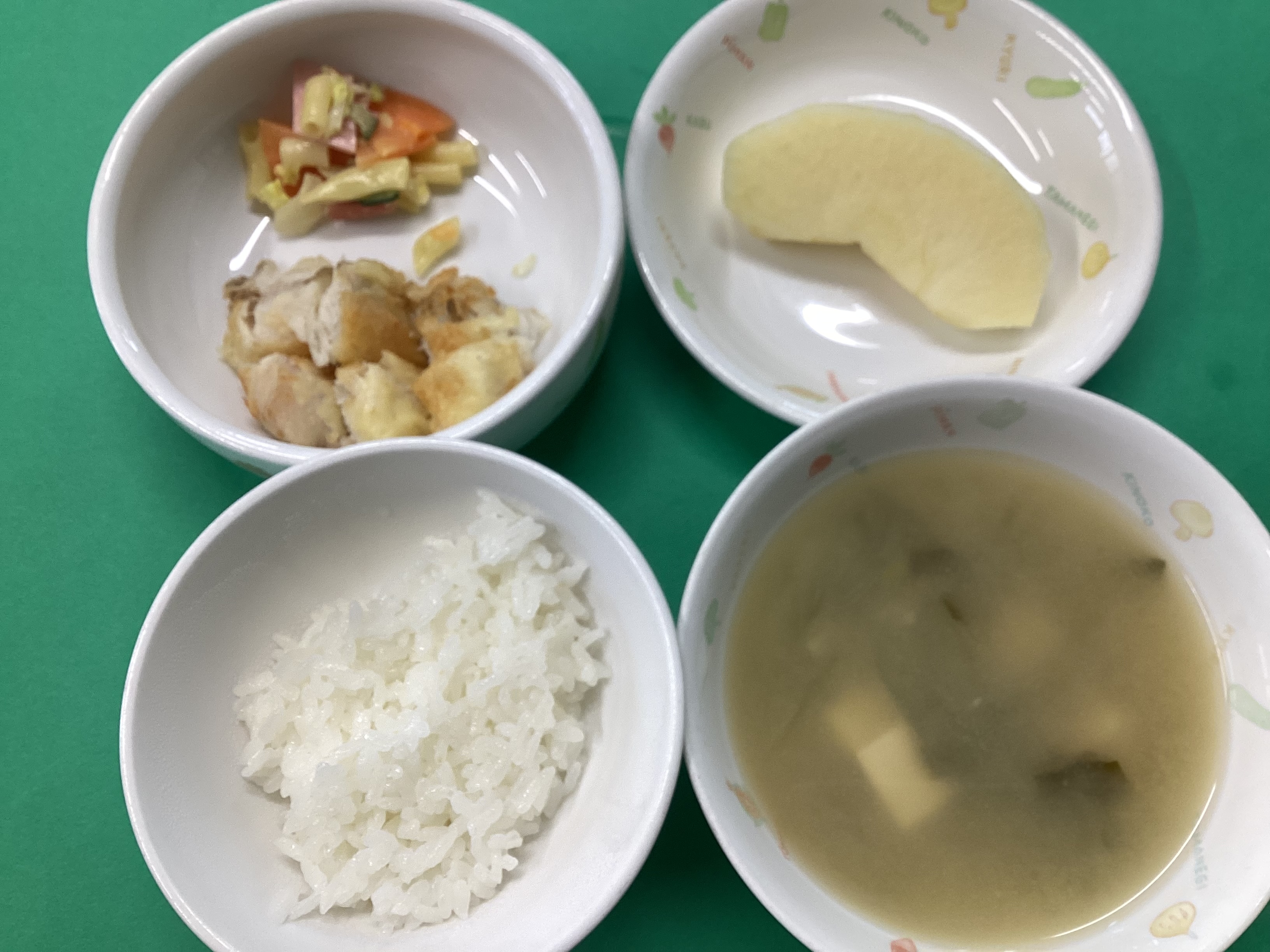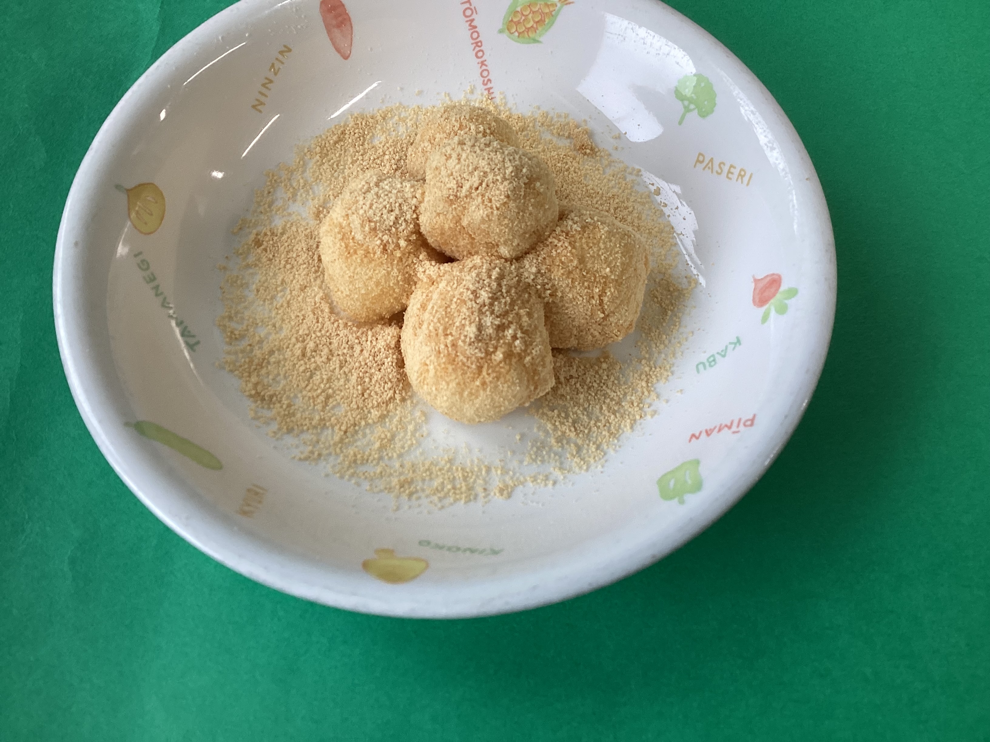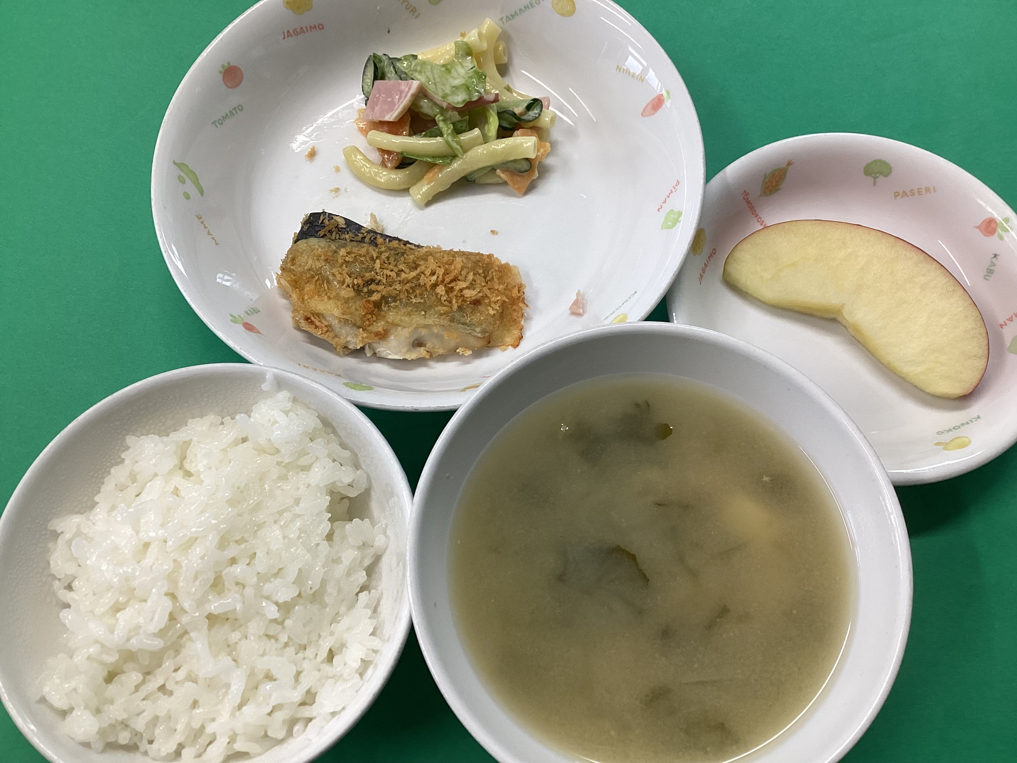 令和8年4月17日のお給食♪ 2026年 4月 17日 Fri 管理者 ~昼食~ ・ごはん ・鰆のパン粉焼き(未満児は白身魚のパン粉焼き) ・マカロニサラダ ・わかめと豆腐の味噌汁 ・りんご (幼児) (未満児) ~おやつ~ ・牛乳もち ・お茶 牛乳と片栗粉で作ったおもちにきな粉をまぶしました♡