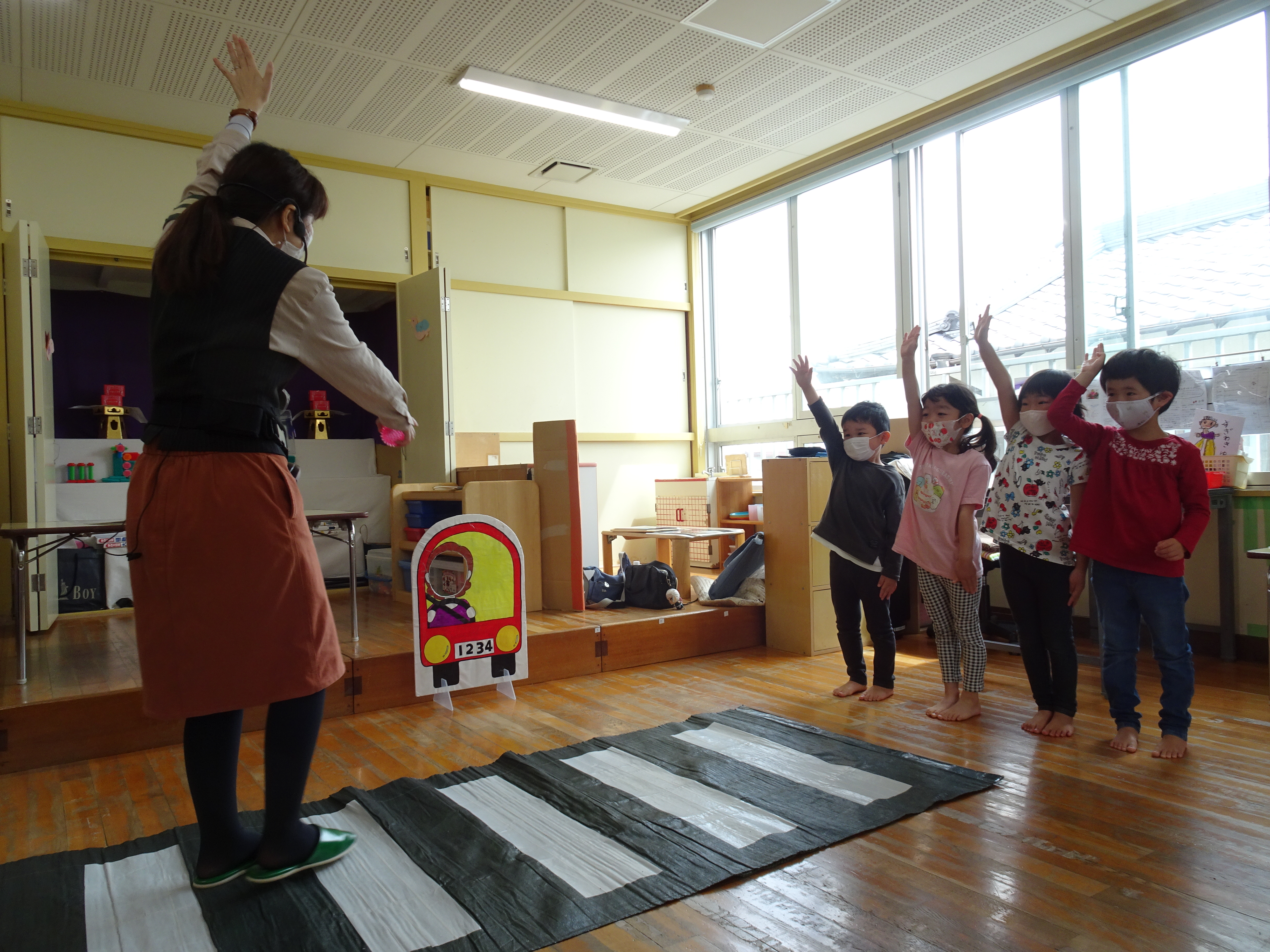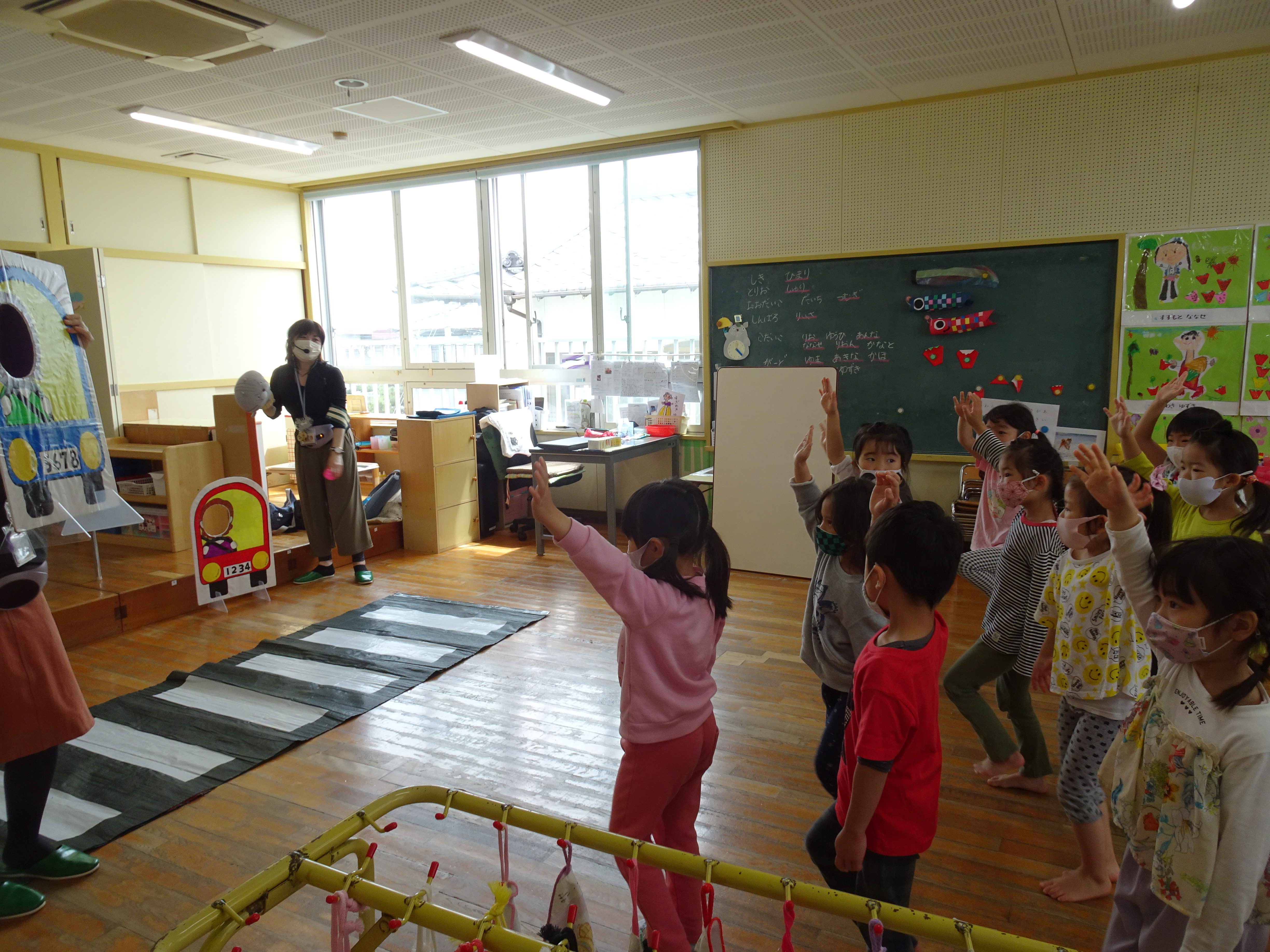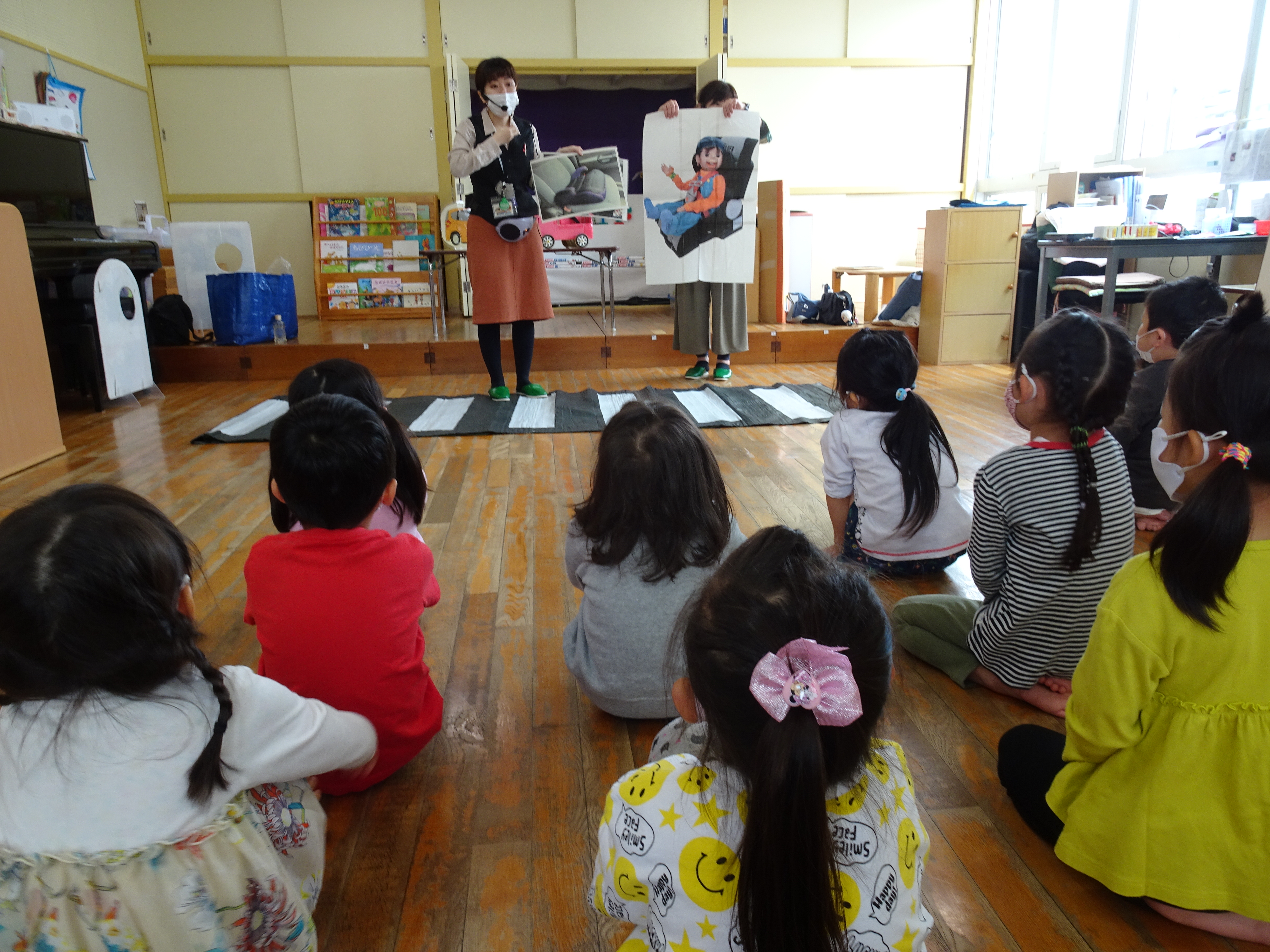 緊張しながらも「みぎよし、ひだりよし、車はきていません!」を、確認し上手に横断歩道を渡ったり、静かにお話が聞けたので指導員の方から褒められました。