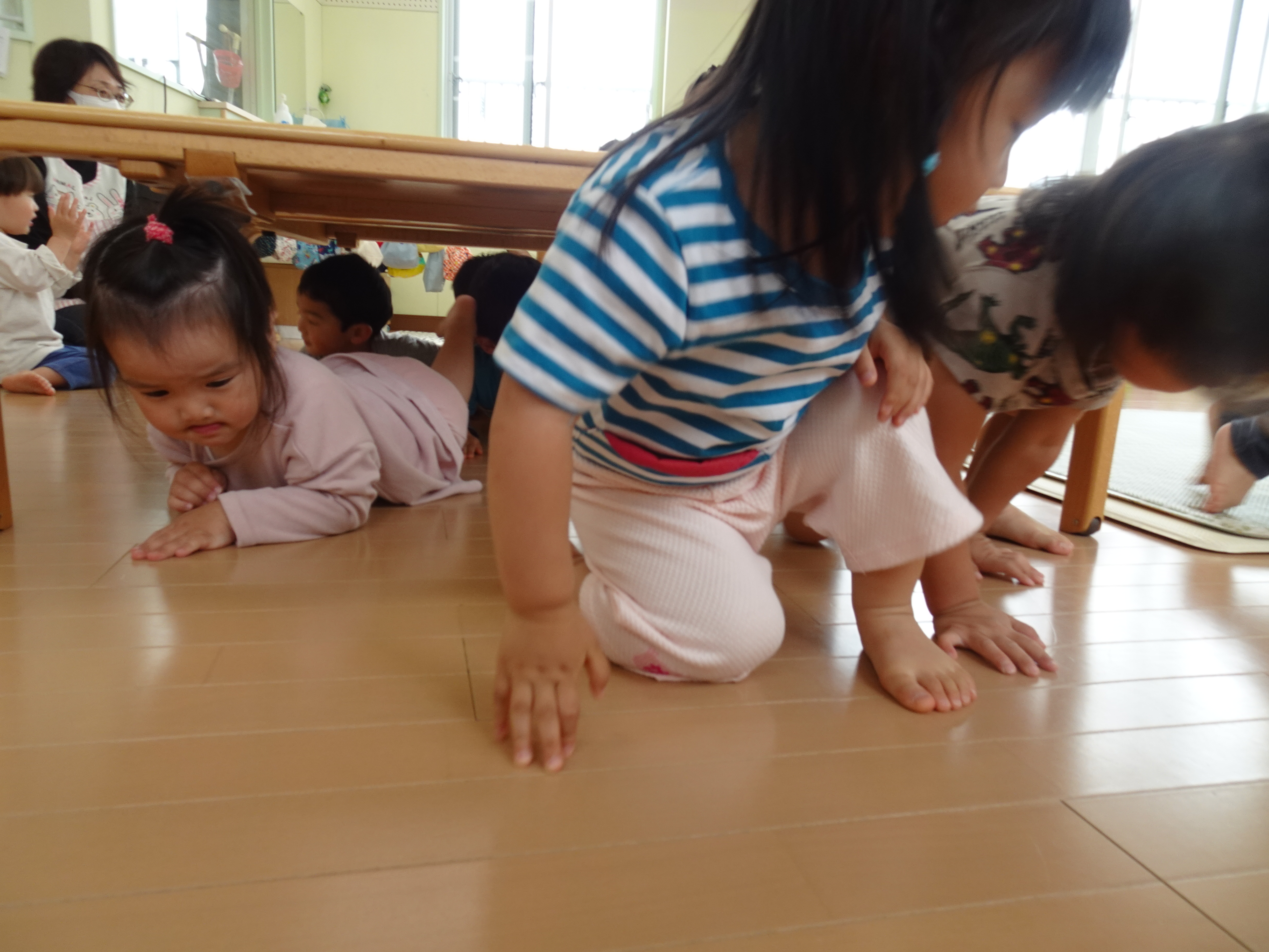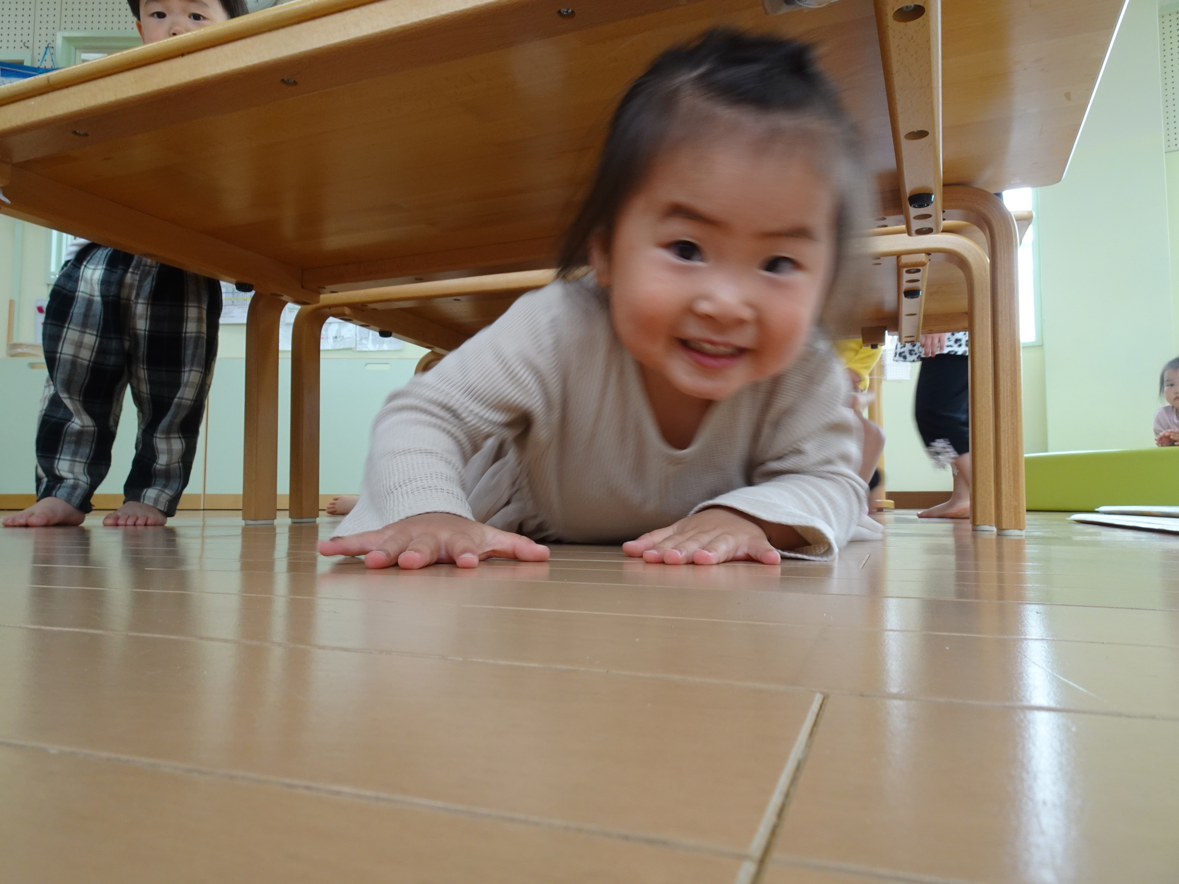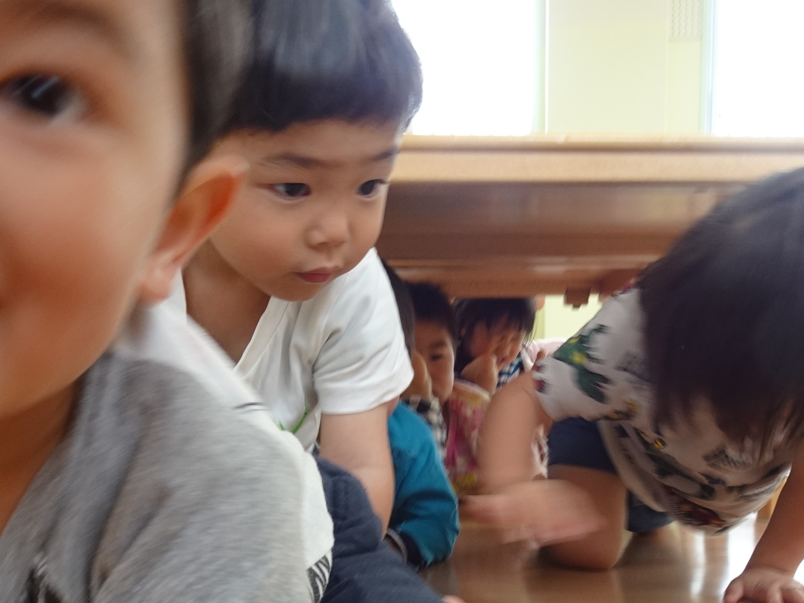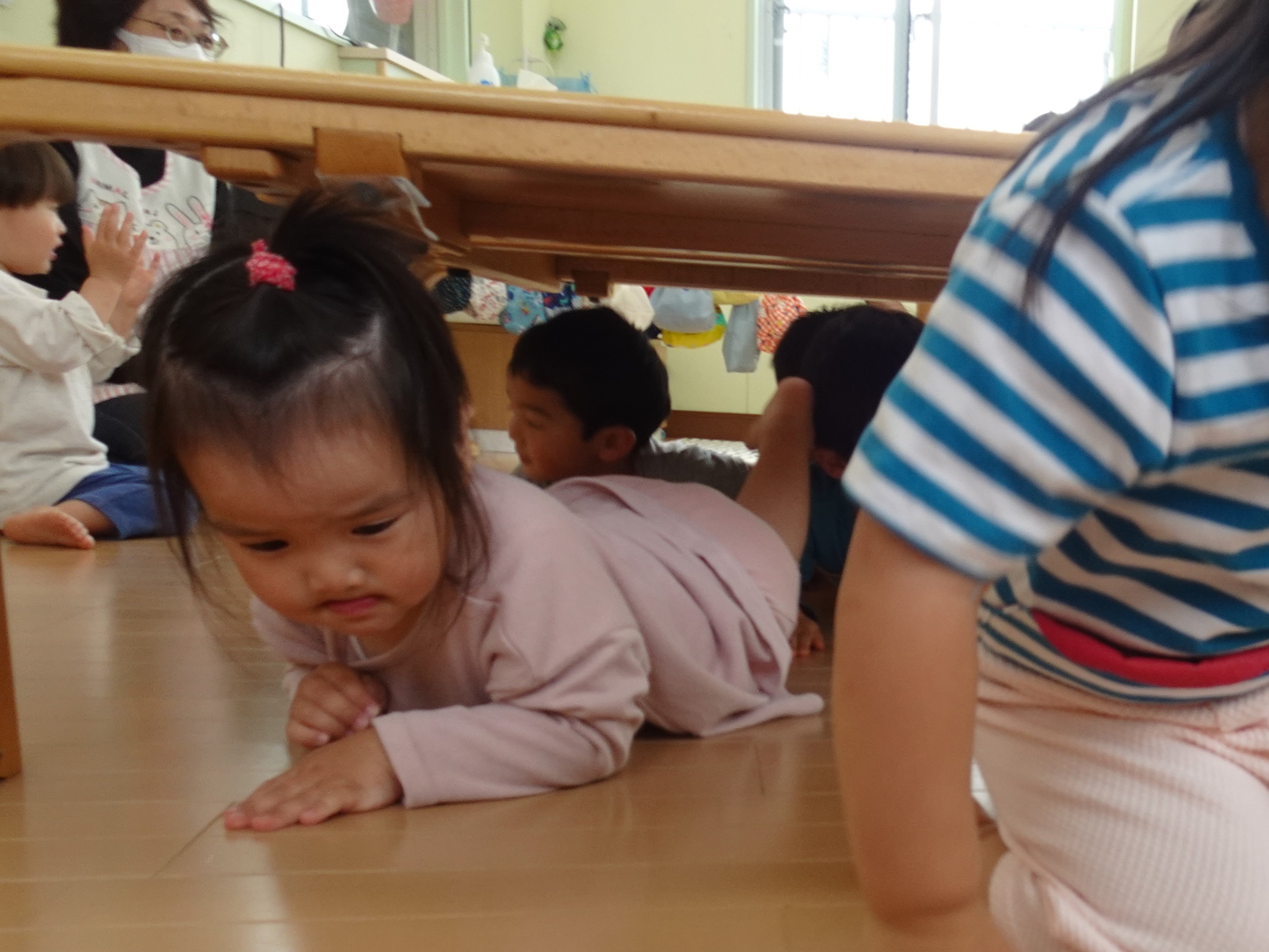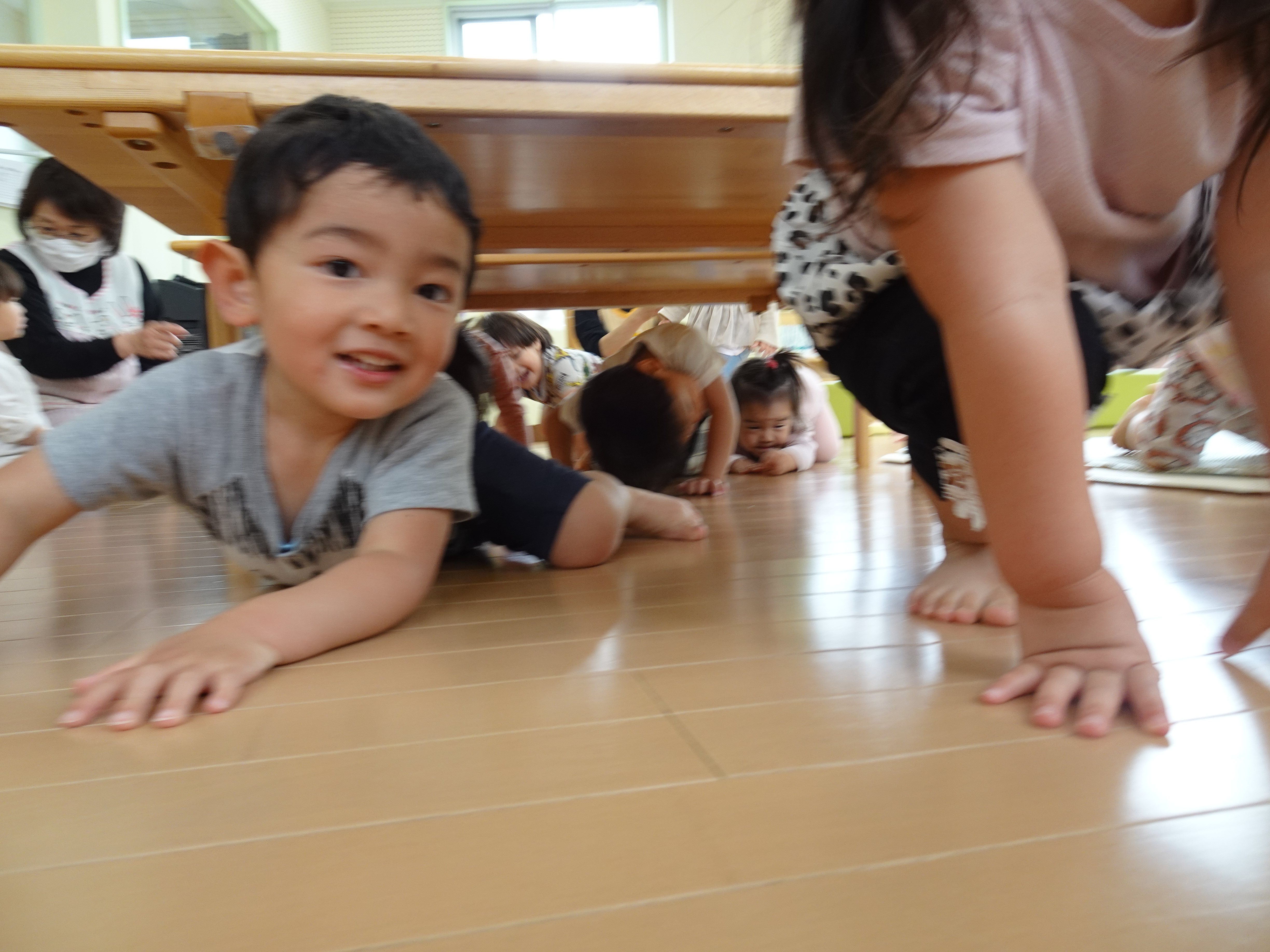 いつもなら怒られるテーブルのトンネルに大はしゃぎの子ども達。