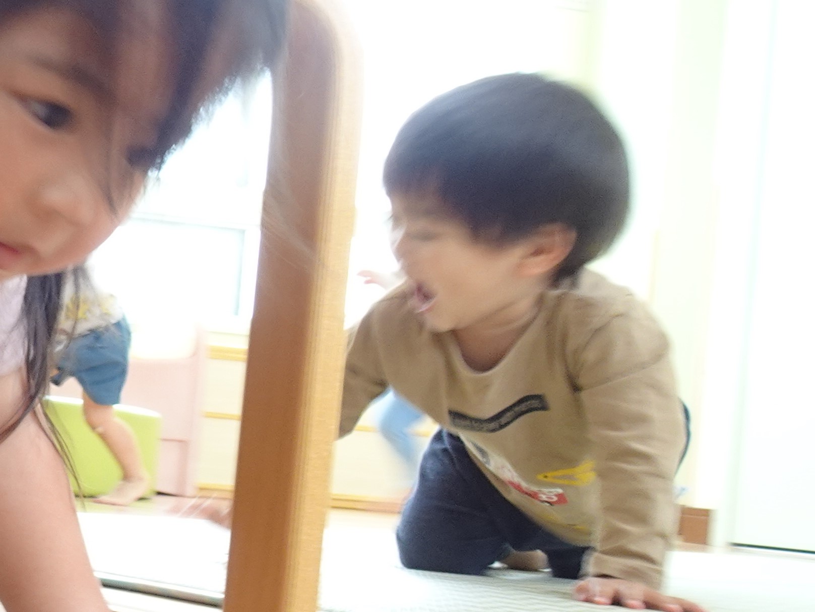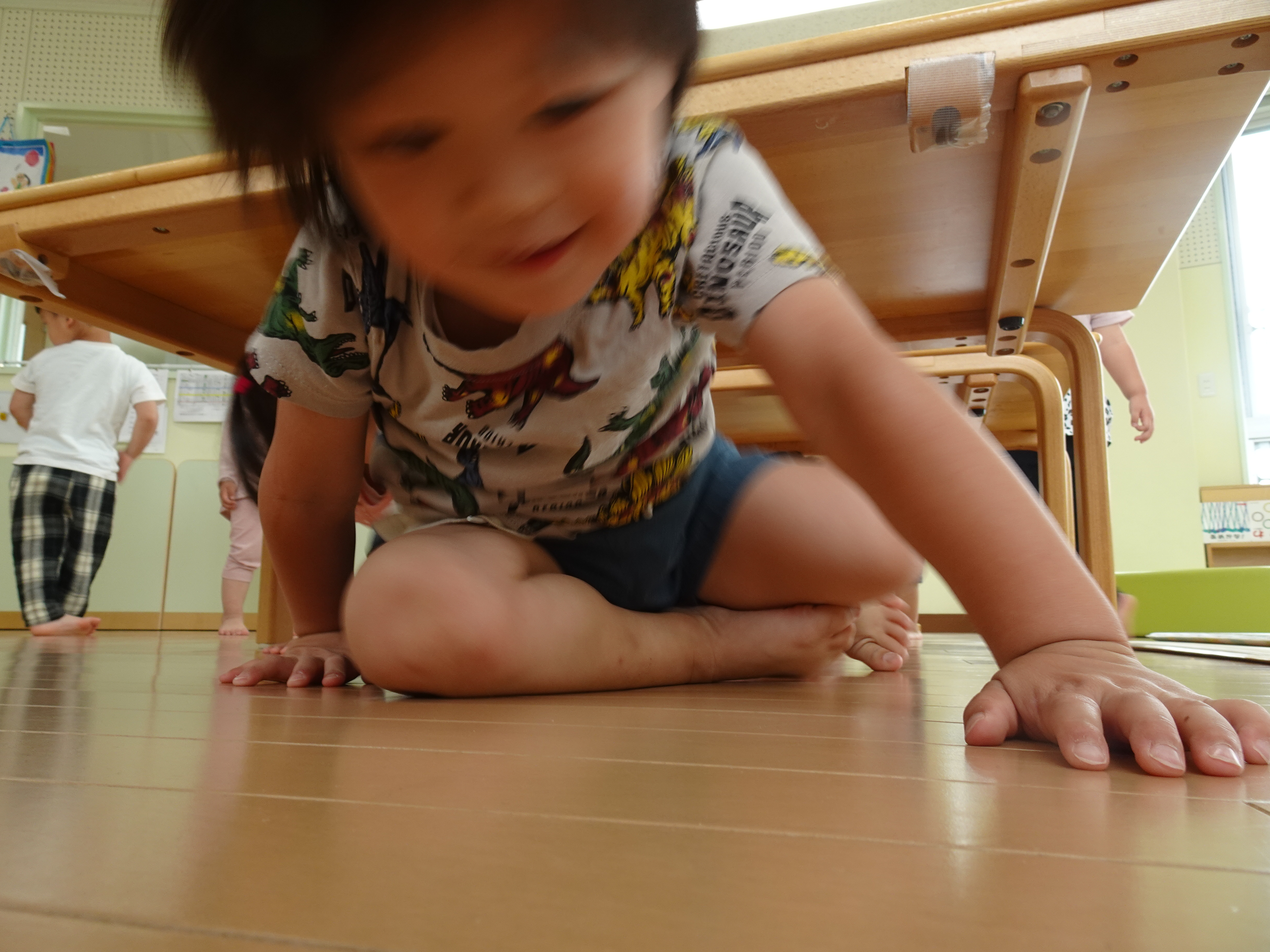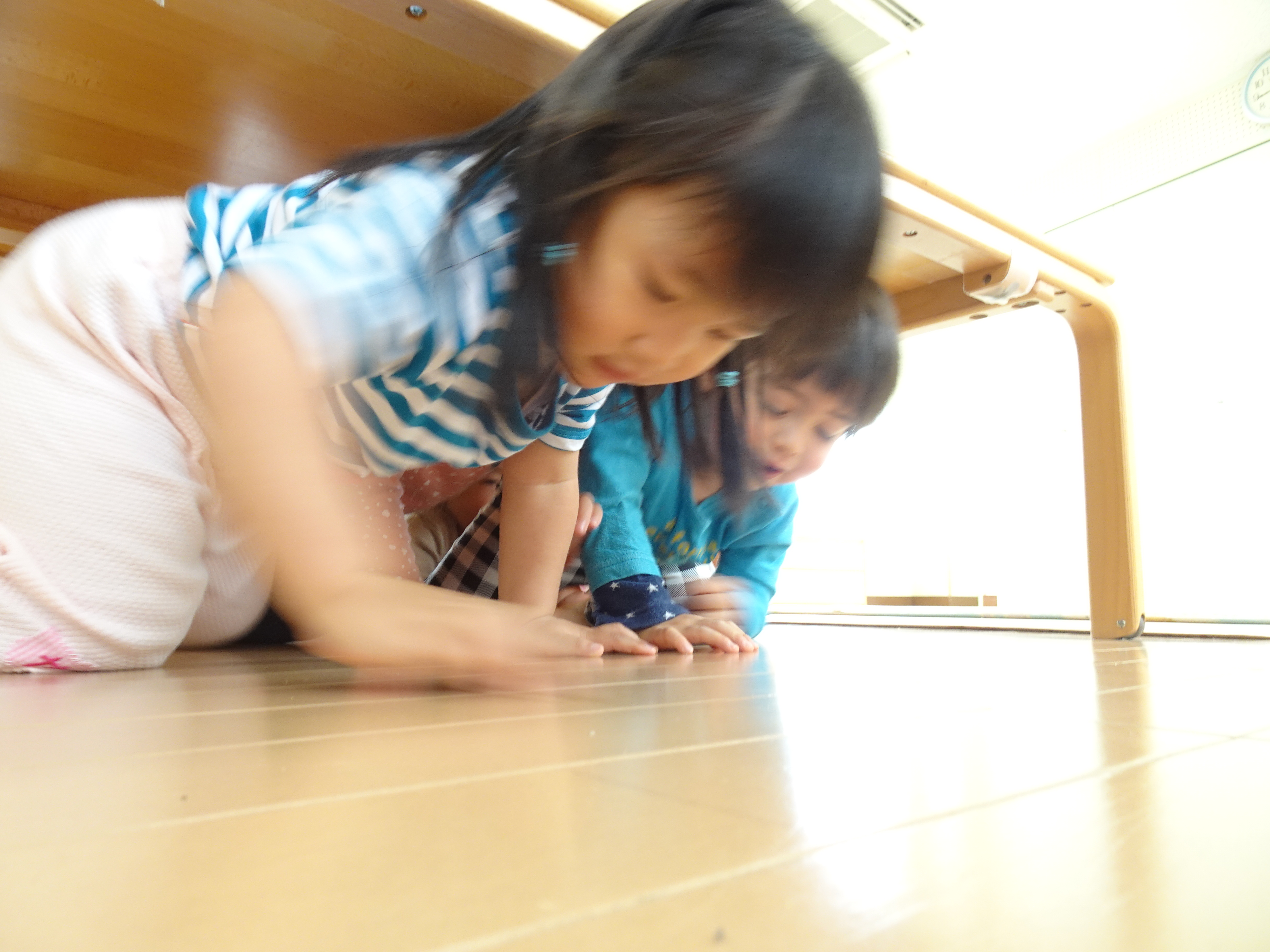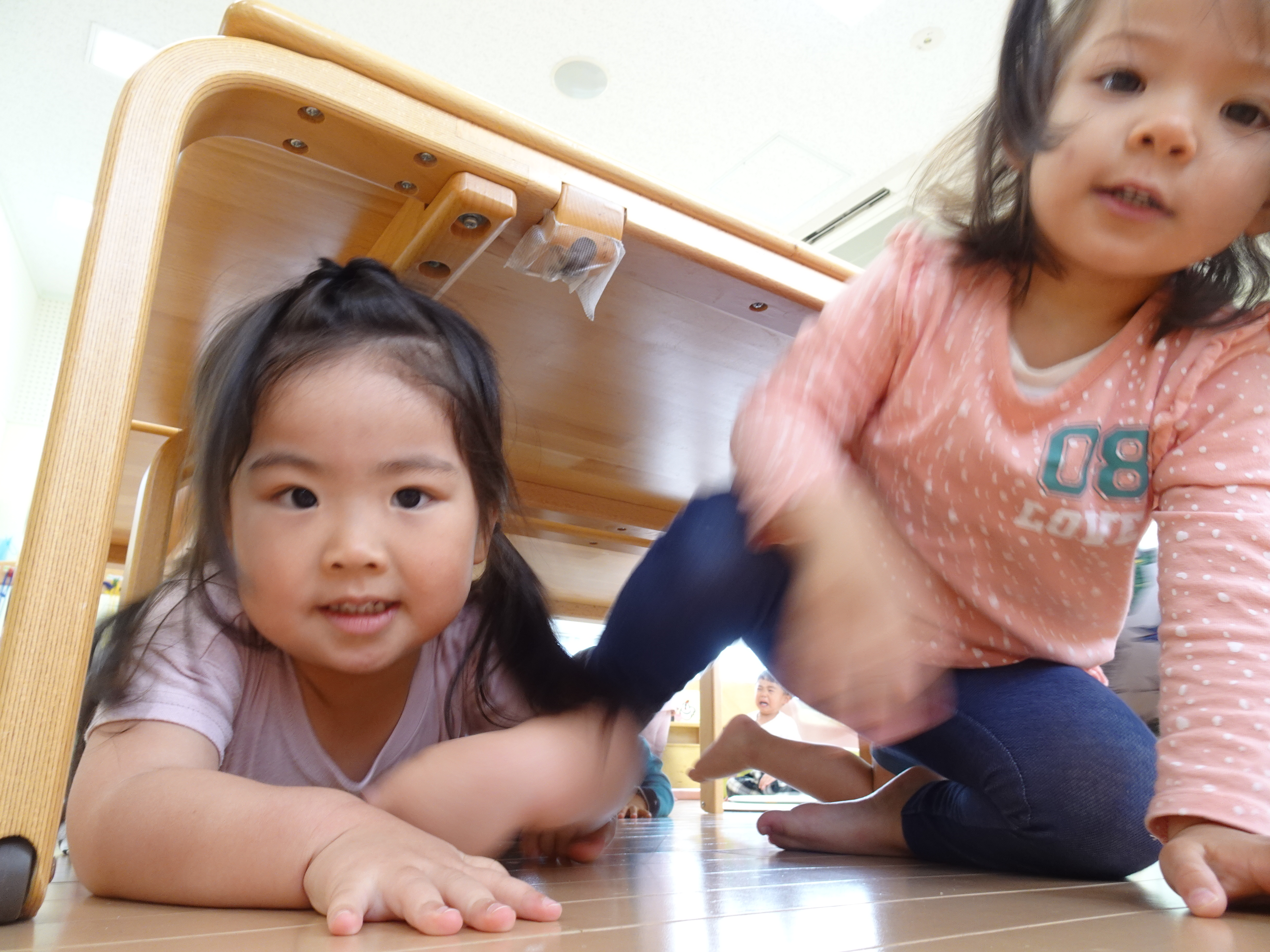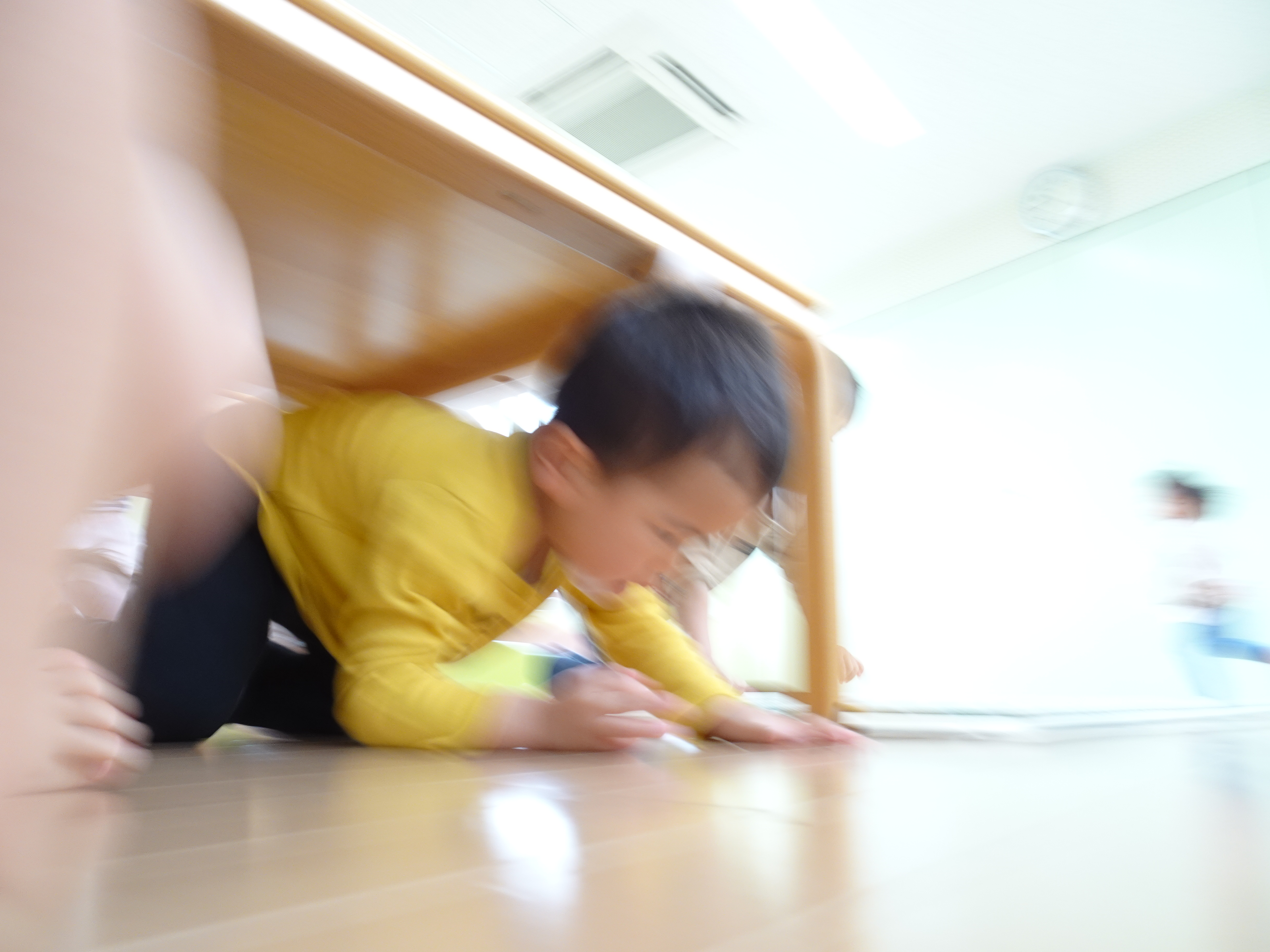 雨の日でもしっかり体を動かしてほしい!ということでひよこの部屋を広くしてかけっこしました。