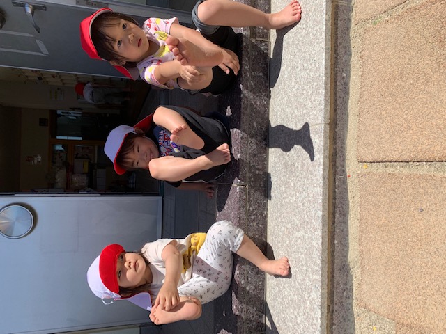 梅雨入りまえの、まだ爽やかな園庭では「裸足」で遊ぶのがとっても気持ちいーい、ひよこ組。