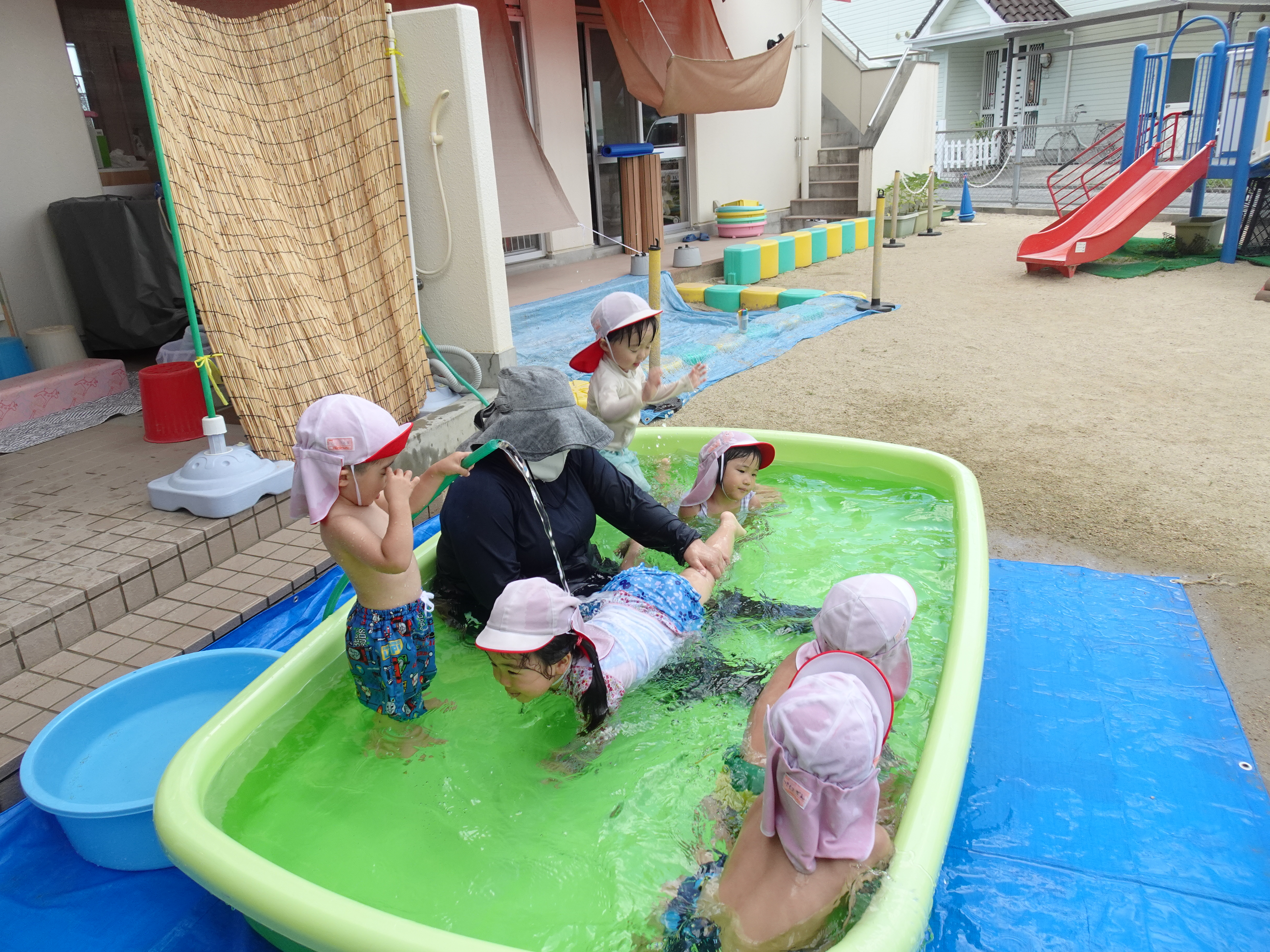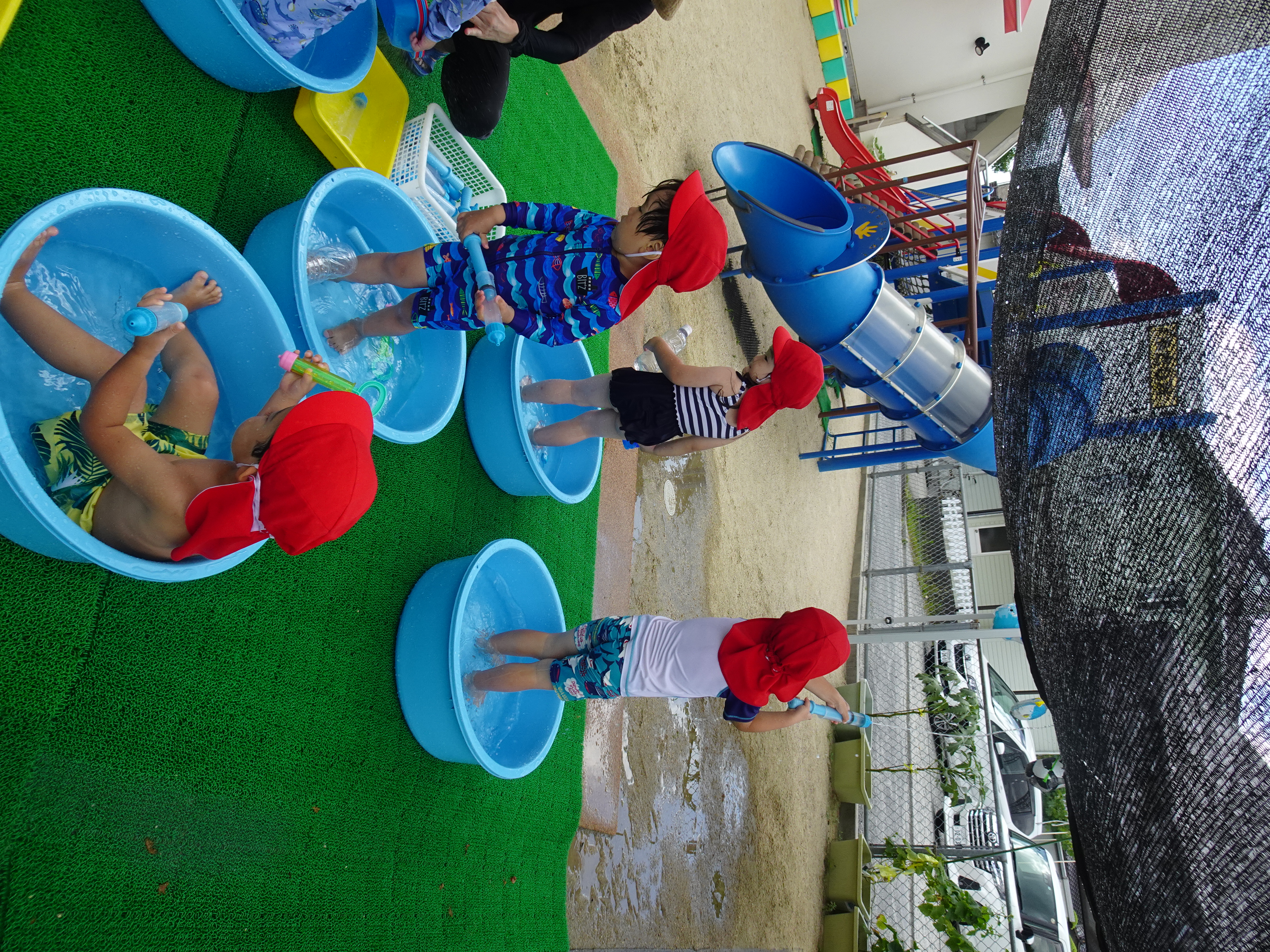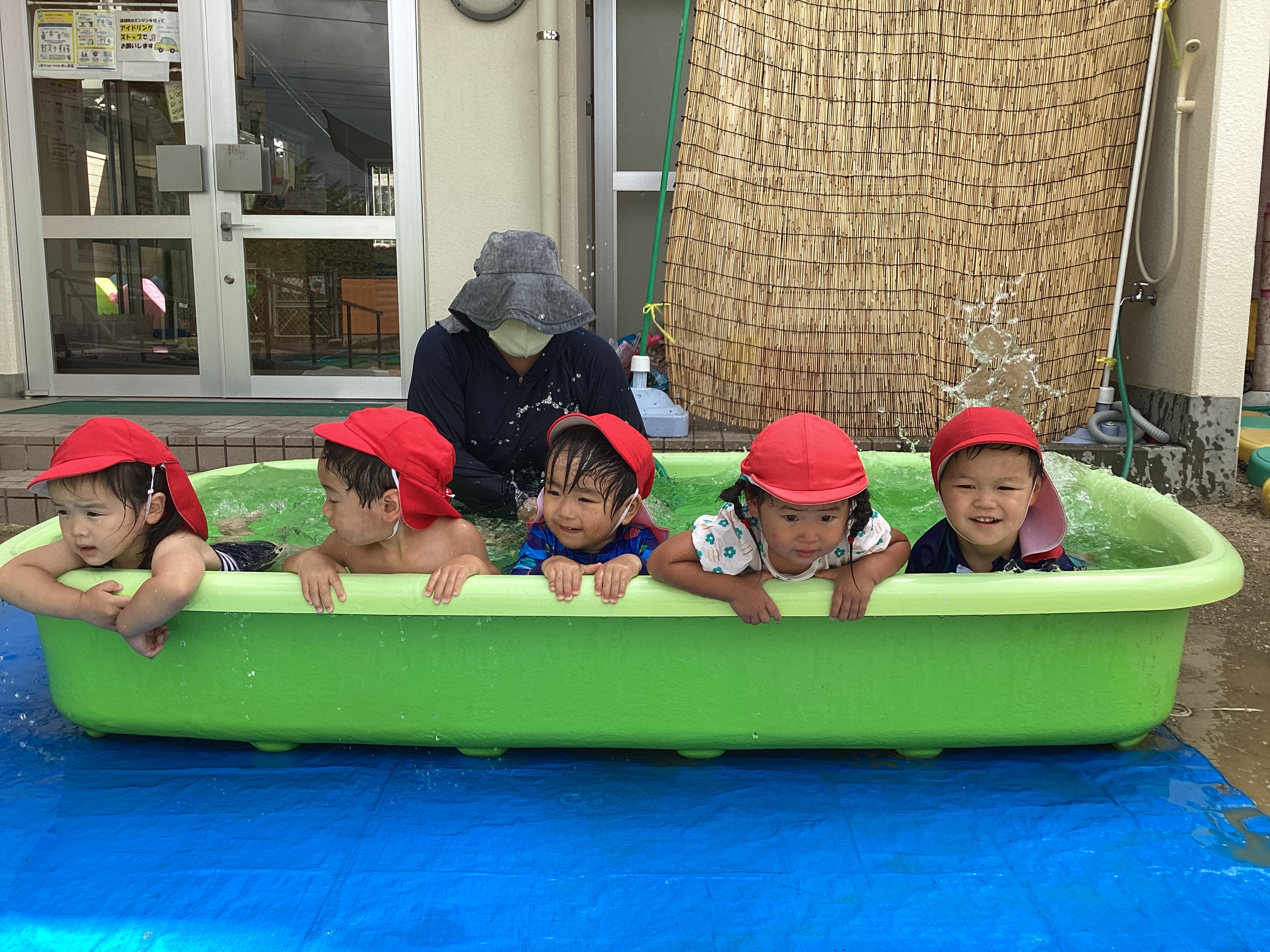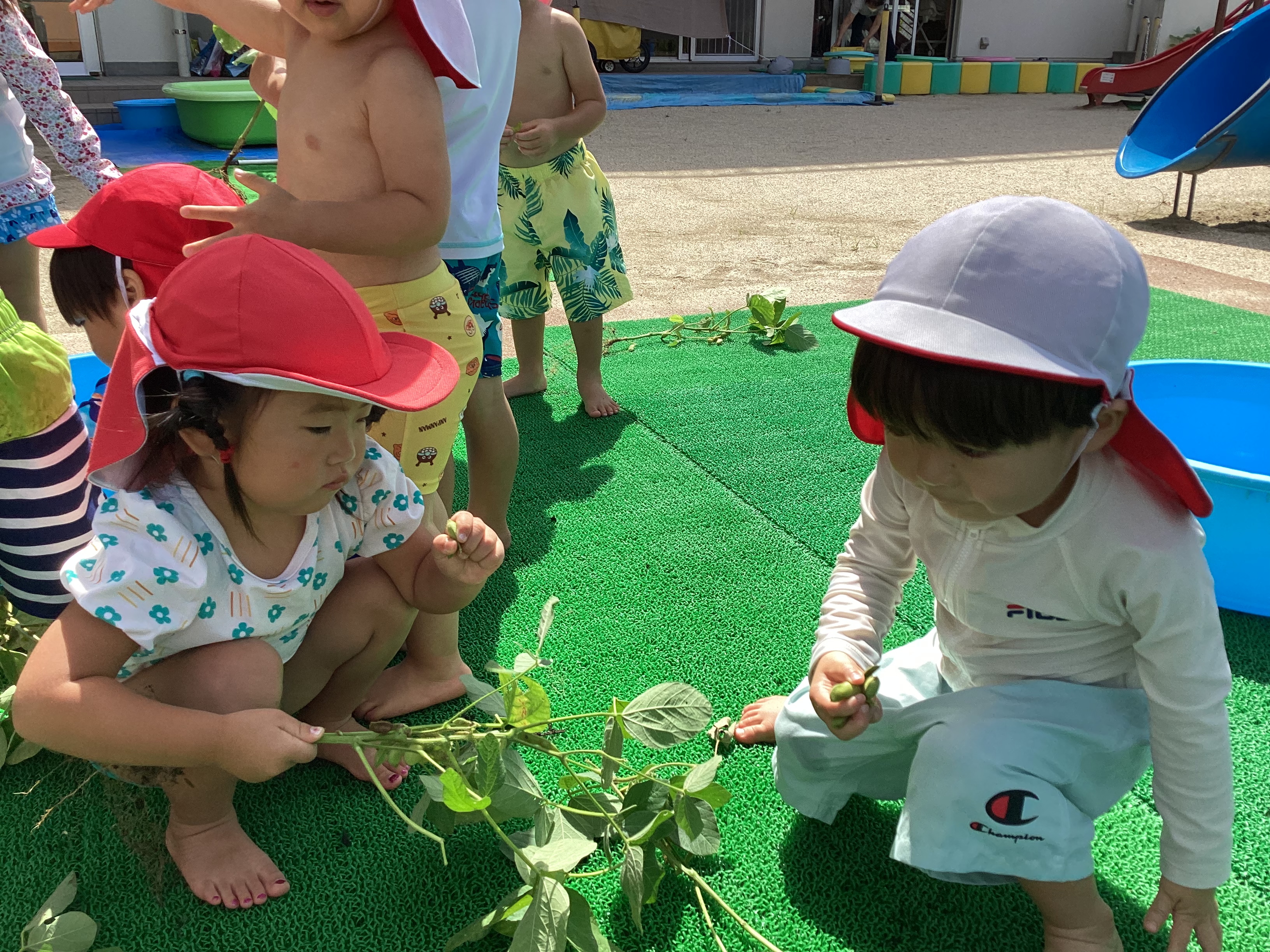 プール遊び、楽しい! 2022年 8月 8日 Mon 管理者 みんなの大好きな 水遊び! タライプールで 水鉄砲。 どんどん飛ばすよ! じょうろのシャワーも楽しいね。 プールで ワニ歩き! 上手に乗り越えられるかな みんな、並んでかわいいね。 バタ足、頑張れ! 今日が、枝豆最後の収穫! みんな、頑張って取ってね やっぱり、ひよこ組の枝豆はおいしいね! サファイア 前の記事 次の記事