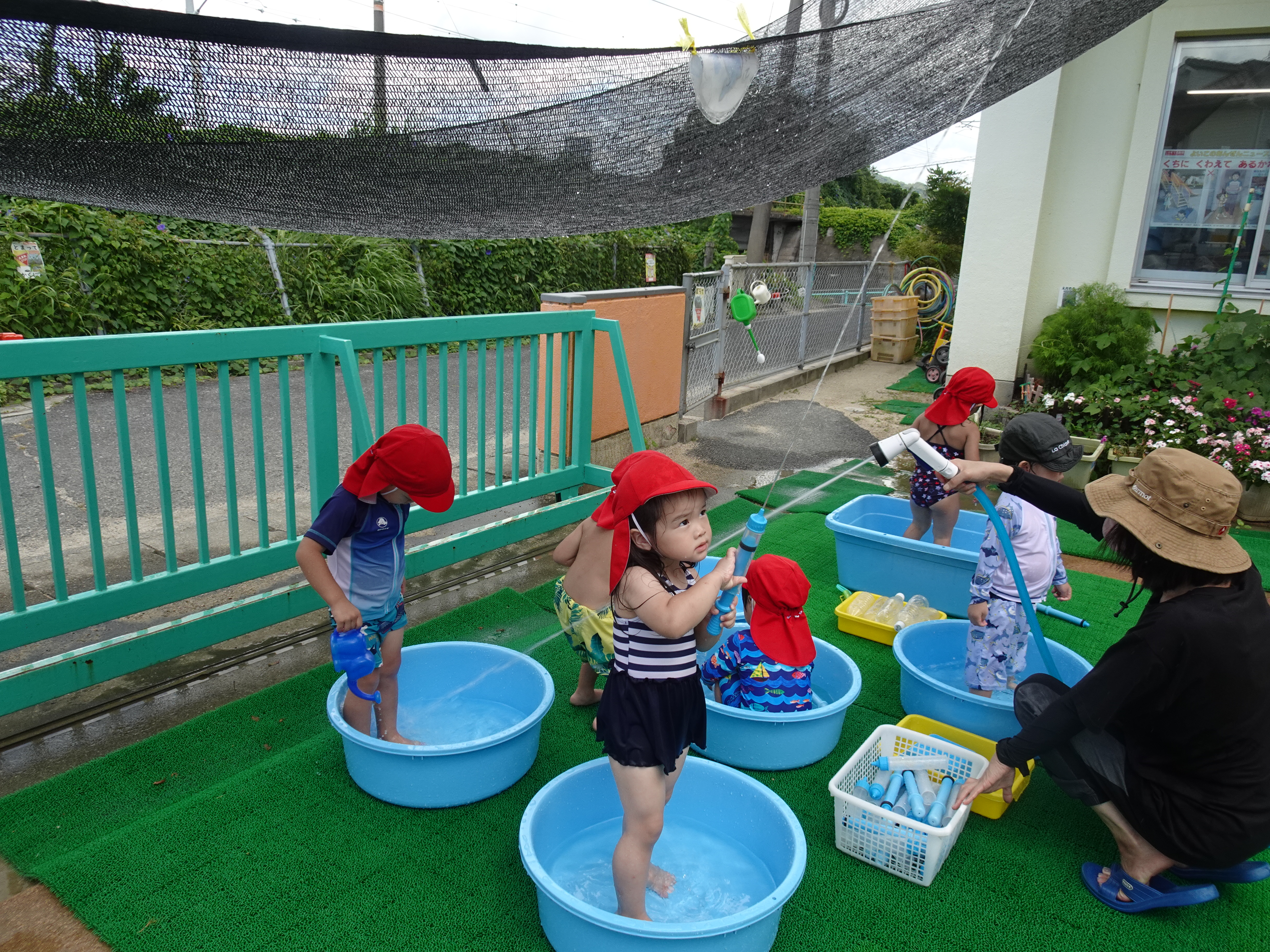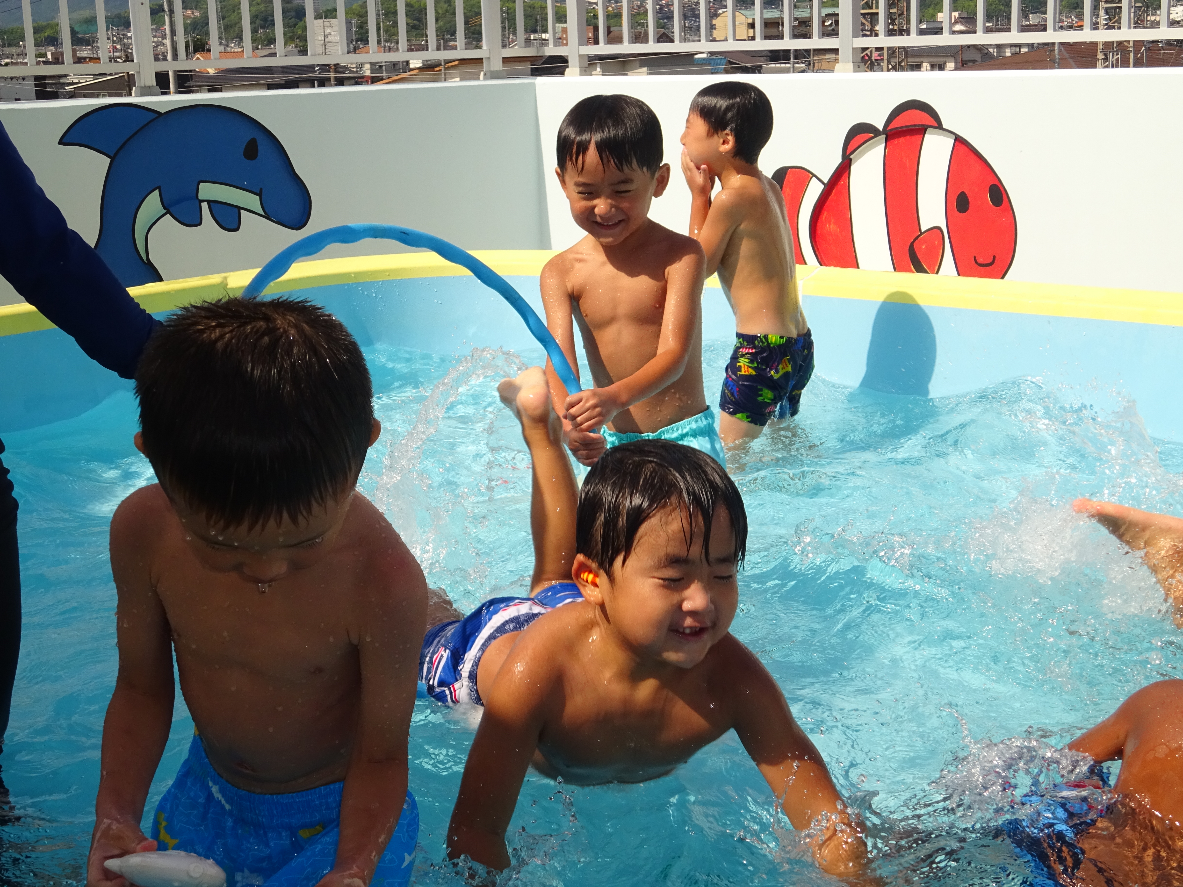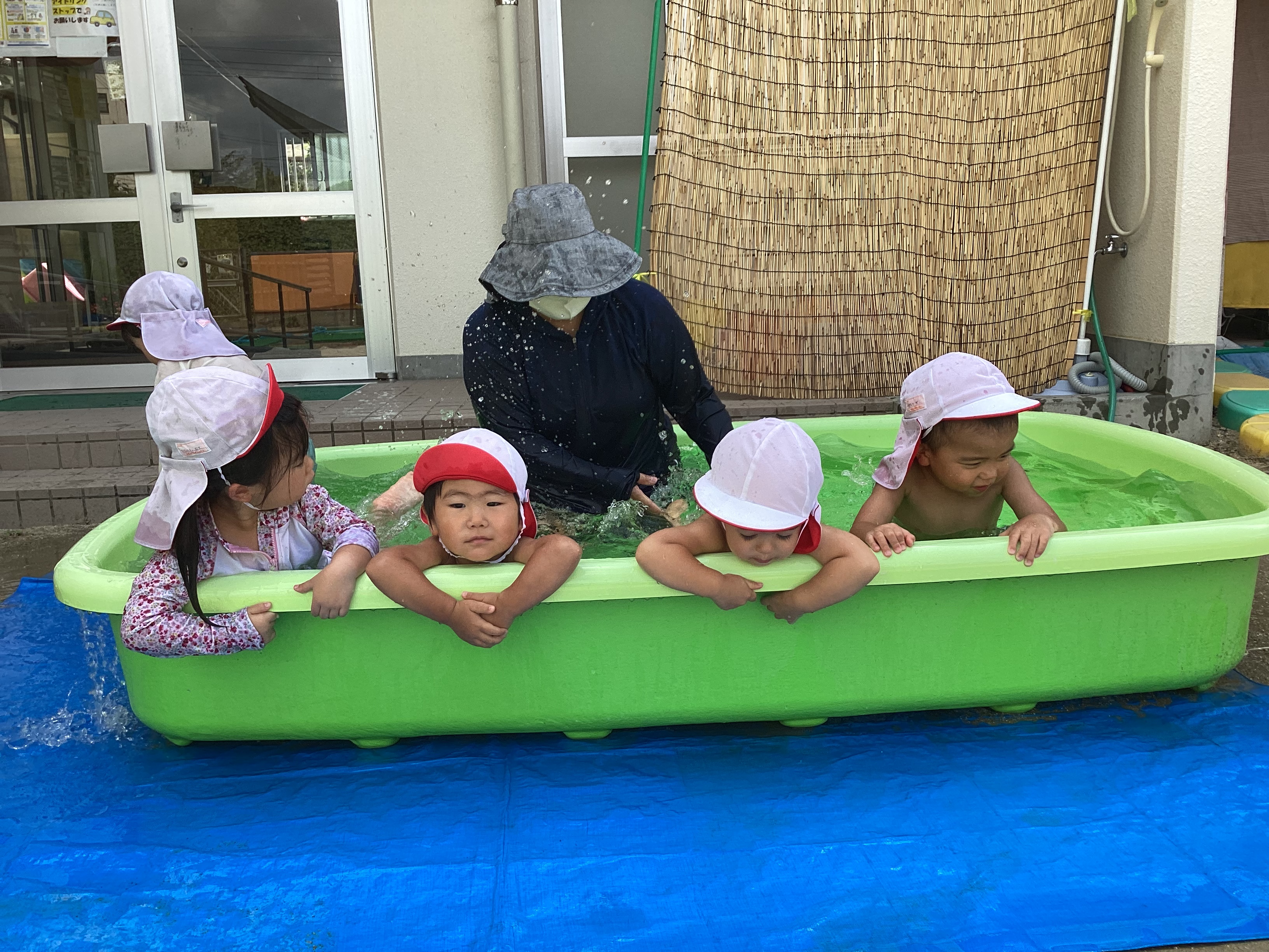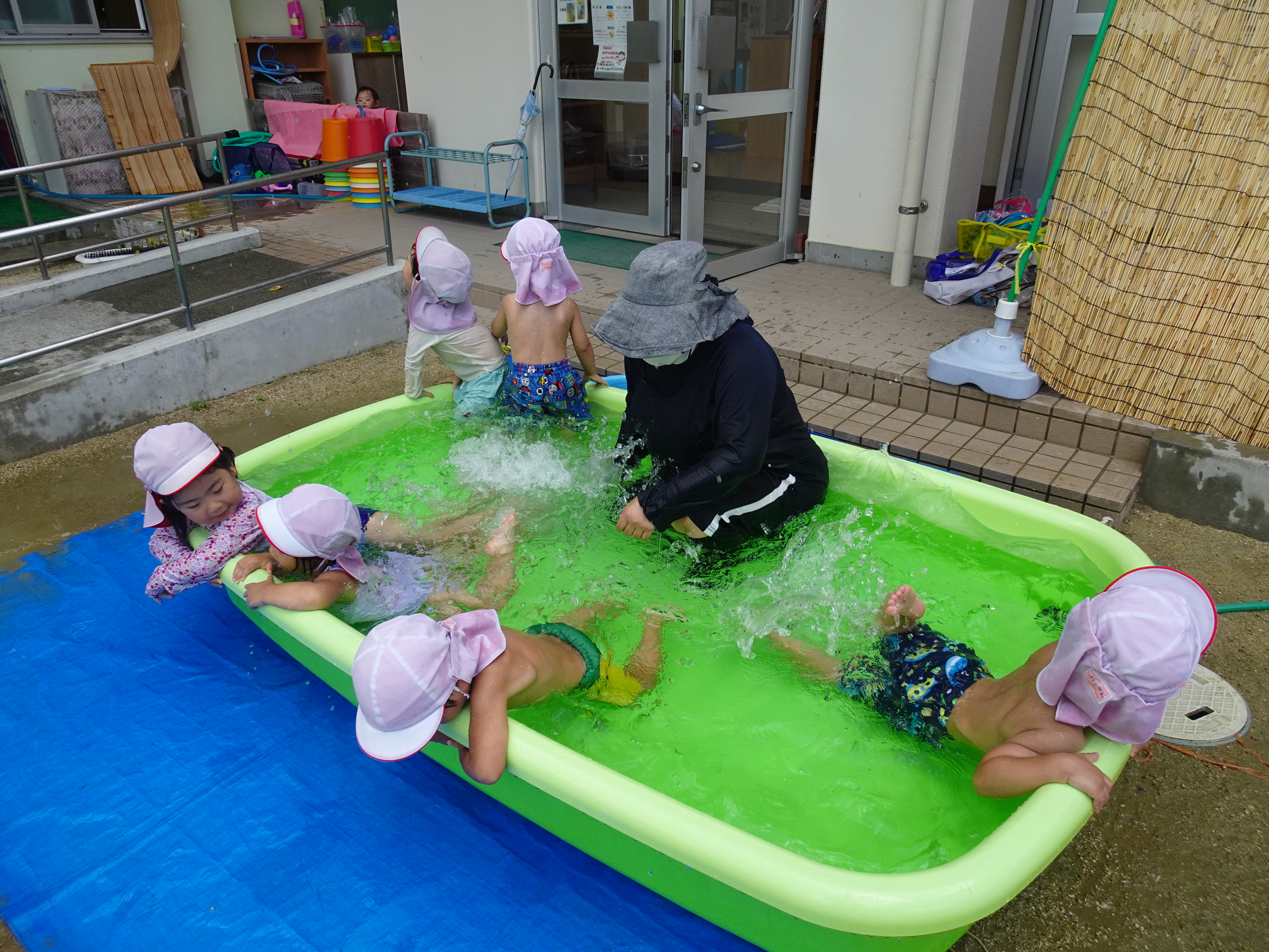 プール遊び、楽しい! 2022年 8月 8日 Mon 管理者 みんなの大好きな 水遊び! タライプールで 水鉄砲。 どんどん飛ばすよ! じょうろのシャワーも楽しいね。 プールで ワニ歩き! 上手に乗り越えられるかな みんな、並んでかわいいね。 バタ足、頑張れ! 今日が、枝豆最後の収穫! みんな、頑張って取ってね やっぱり、ひよこ組の枝豆はおいしいね! サファイア 前の記事 次の記事