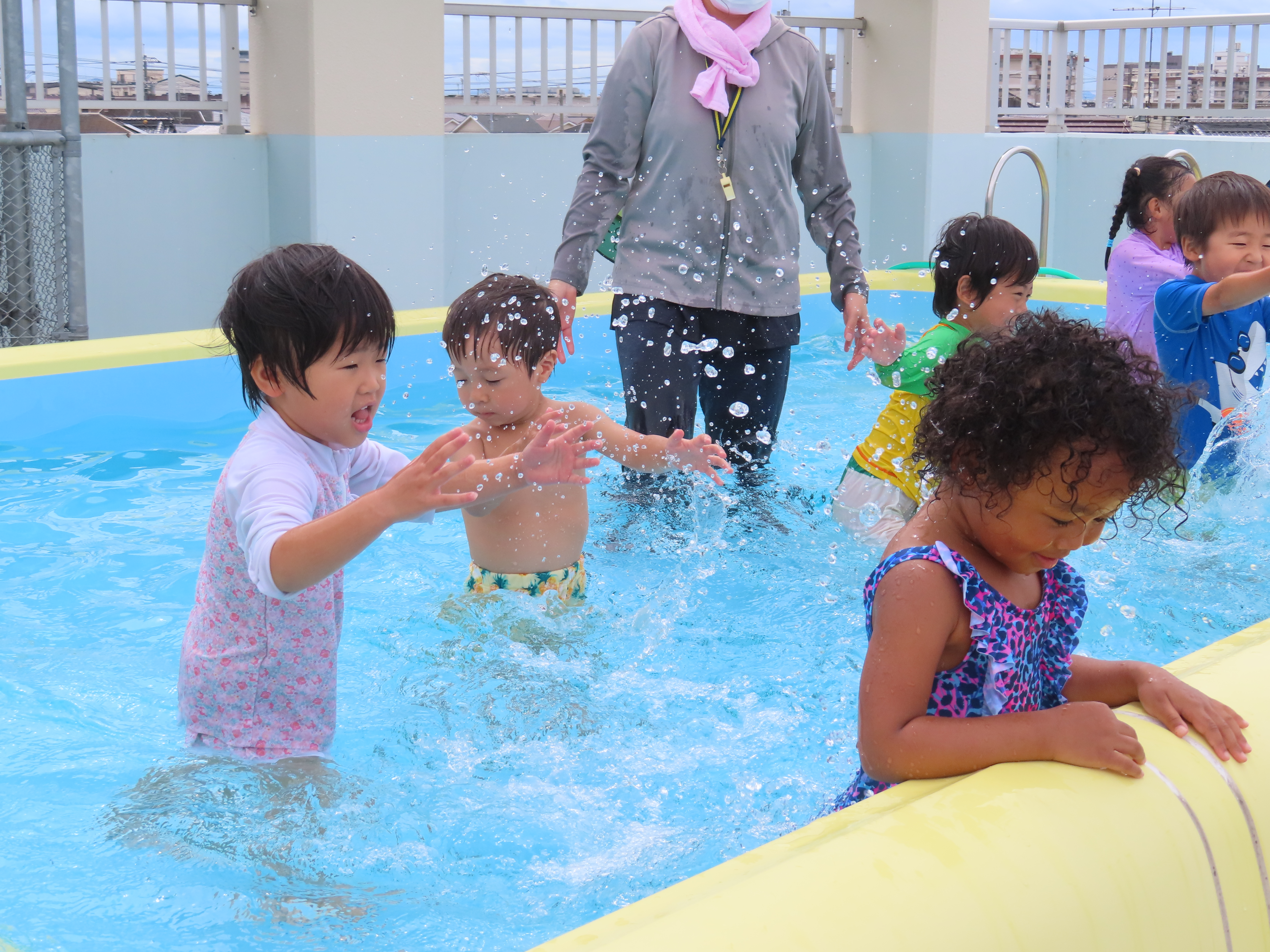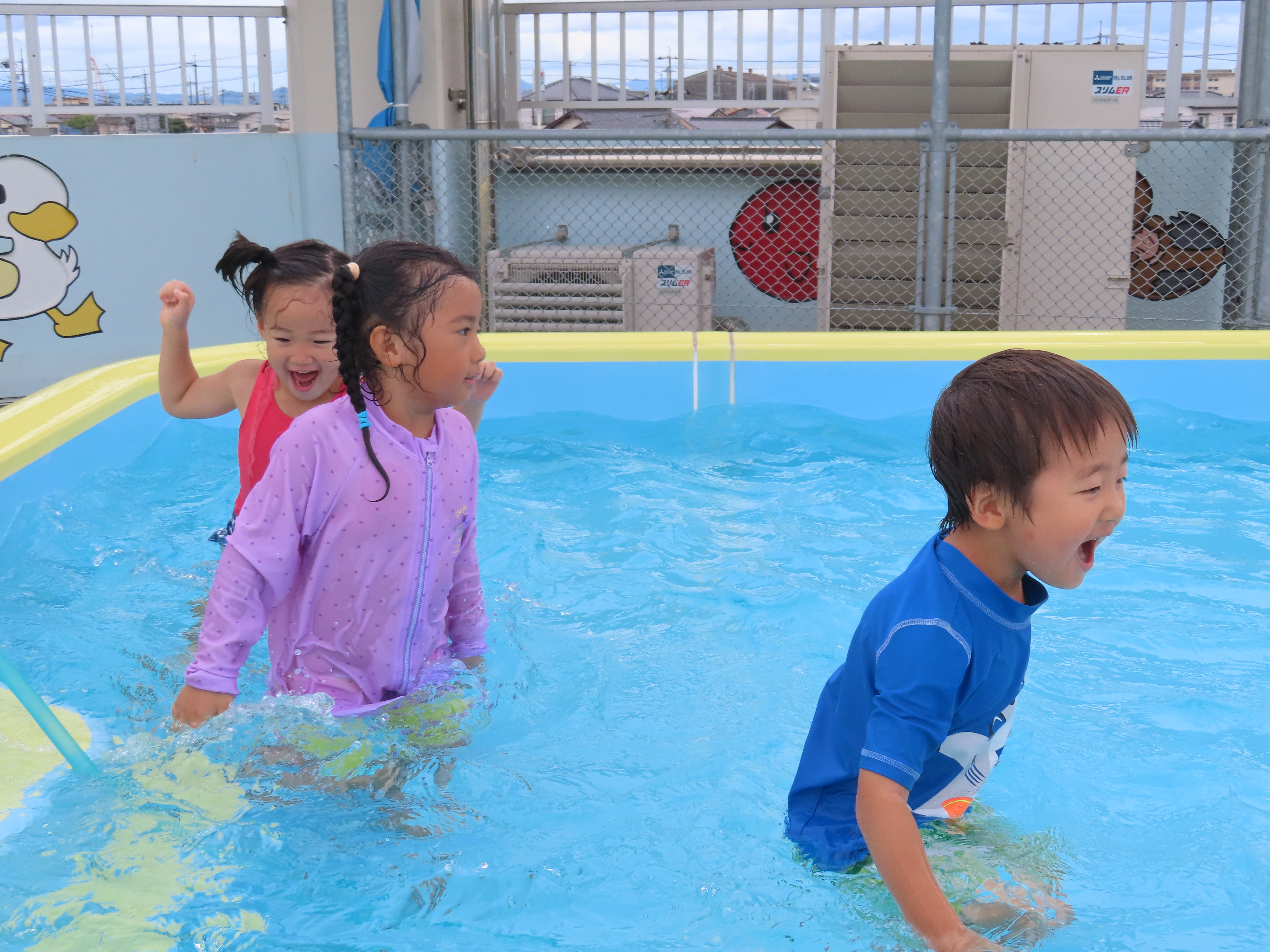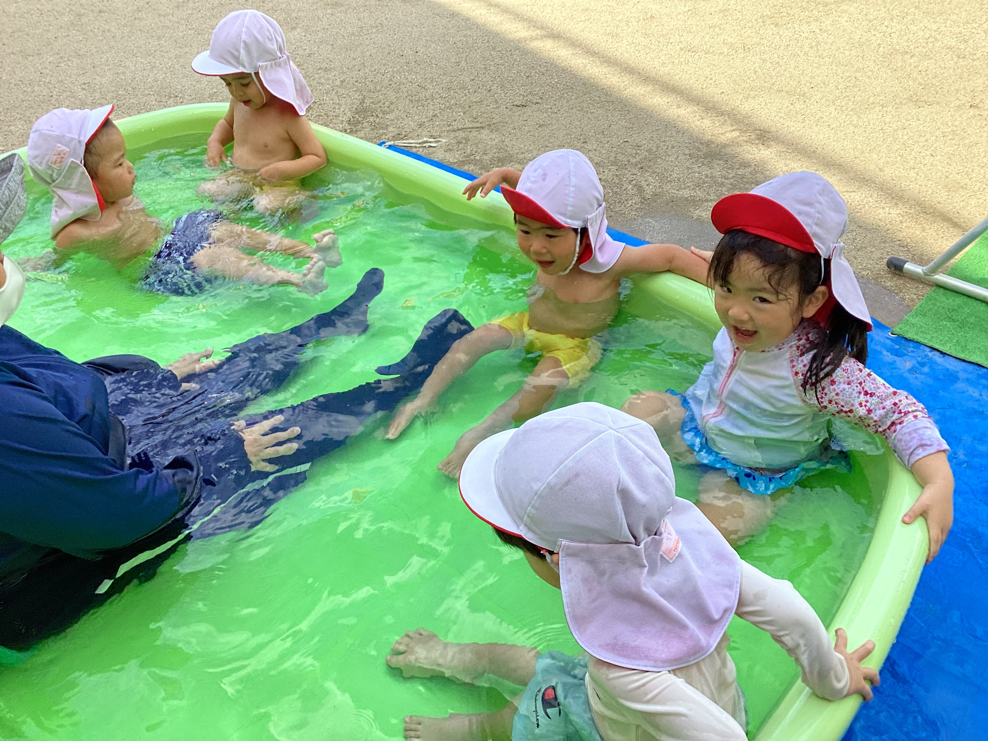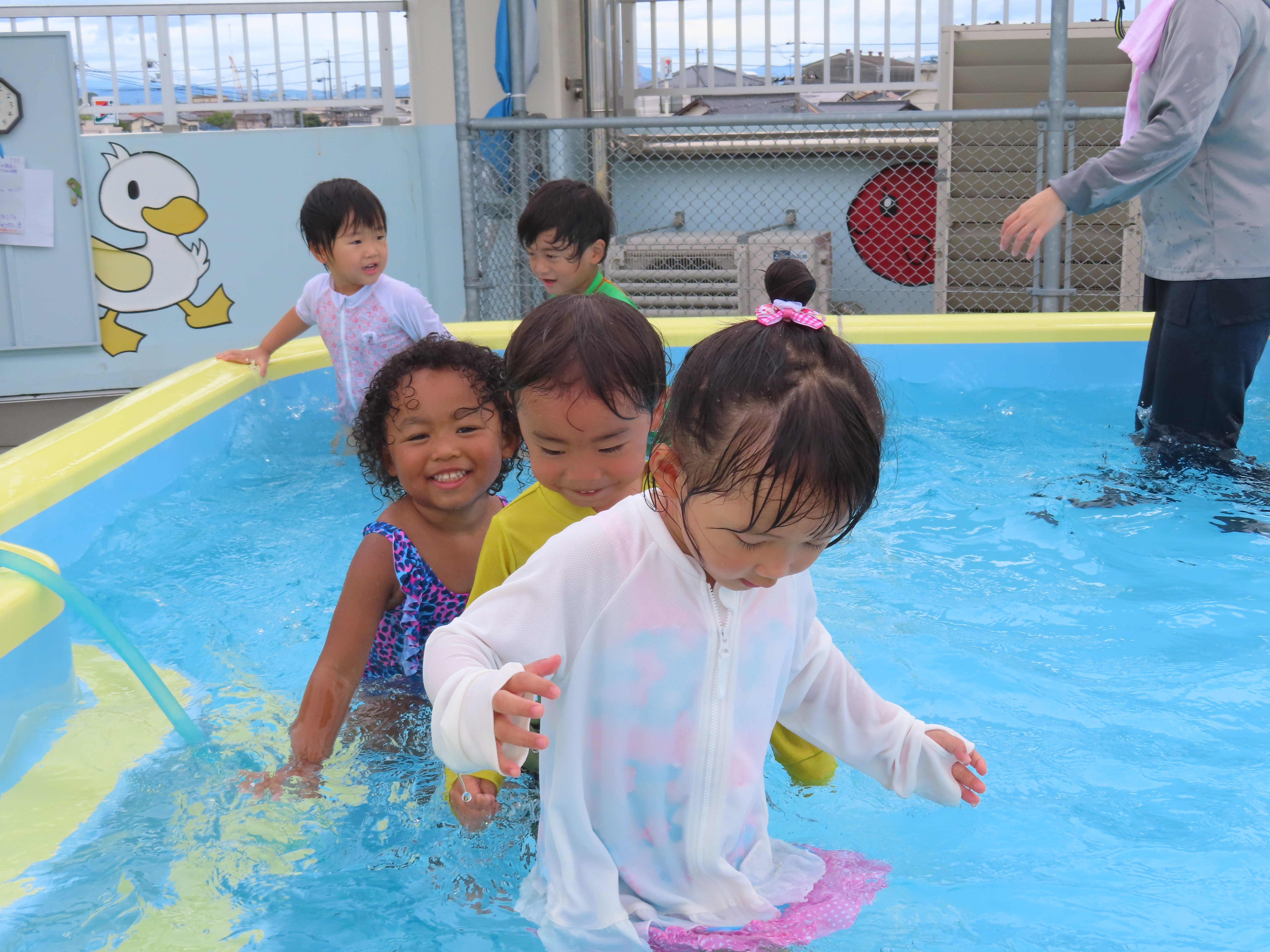 プール遊び、楽しい! 2022年 8月 8日 Mon 管理者 みんなの大好きな 水遊び! タライプールで 水鉄砲。 どんどん飛ばすよ! じょうろのシャワーも楽しいね。 プールで ワニ歩き! 上手に乗り越えられるかな みんな、並んでかわいいね。 バタ足、頑張れ! 今日が、枝豆最後の収穫! みんな、頑張って取ってね やっぱり、ひよこ組の枝豆はおいしいね! サファイア 前の記事 次の記事
