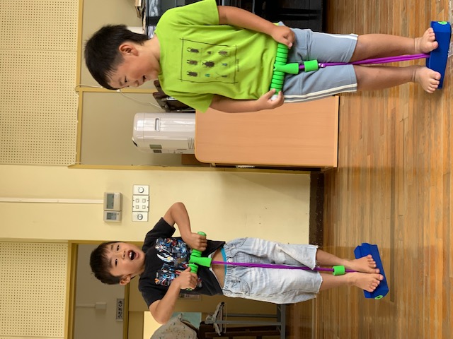 ホッピングでジャンプ 2022年 8月 7日 Sun 管理者 連日の熱中症アラートがでている最中、体調を崩されていませんか? 五月に裸足で遊ぶ姿をご紹介した続編です。 きりん組さんにホッピングを楽しんでもらった光景をご紹介。 静止画なので高ーくジャンプしてる瞬間もあれば、2.3回でころんじゃう子もいますが・・・ 汗だくで練習する子もあり、バランスを整えながらジャンプを楽しんでいます。 撮影の時だけ、マスクを外してもらいました。 こうきくん しゅりちゃん ゆまちゃん かほちゃん ゆうひくん かなとくん ゆずきくん ひまりちゃん つむぎちゃん あんなちゃん りおちゃん あきなちゃん ななせちゃん りいさちゃん りおんちゃん だいちくん 8月も暑さに負けず、プール遊びでしっかり体力をつけようね。 引き続きのコロナ感染対策にご協力下さいませ。 山椒 前の記事 次の記事