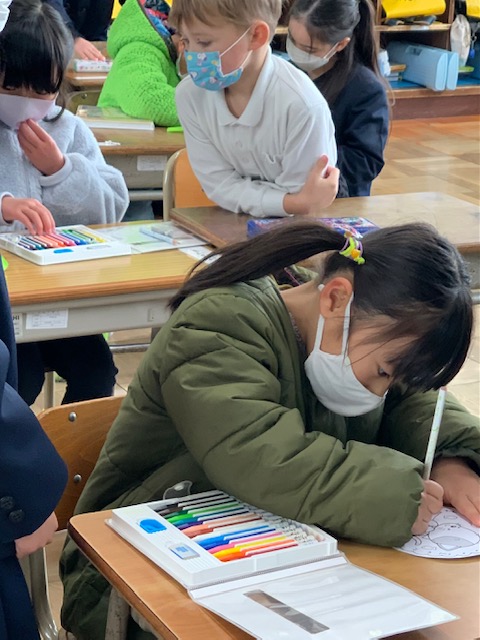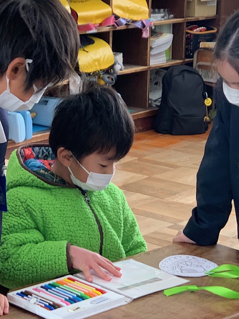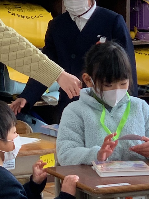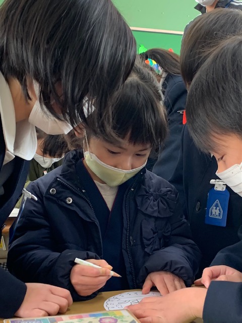 小学校にいってきたよ 2023年 2月 2日 Thu 管理者 一月の大雪の朝、きりん組は川下小学校での交流会に参加しました。雪が凍って滑りそうな路肩を、慎重に一列で20分歩いて到着。緊張しながらも1年1組、1年2組に分かれて入室、懐かしい卒園児さんの顔もチラホラ見えるなか、一年生たちのきびきびとした言動に、目を見開くきりんさんたち。 机と椅子に着席させてもらい、気分はもう一年生。右からも左からもお世話してくれる先輩たち。 次は、一日入学。いちねんせいの準備が少しずつ少しずつ整っていきますね。 山椒