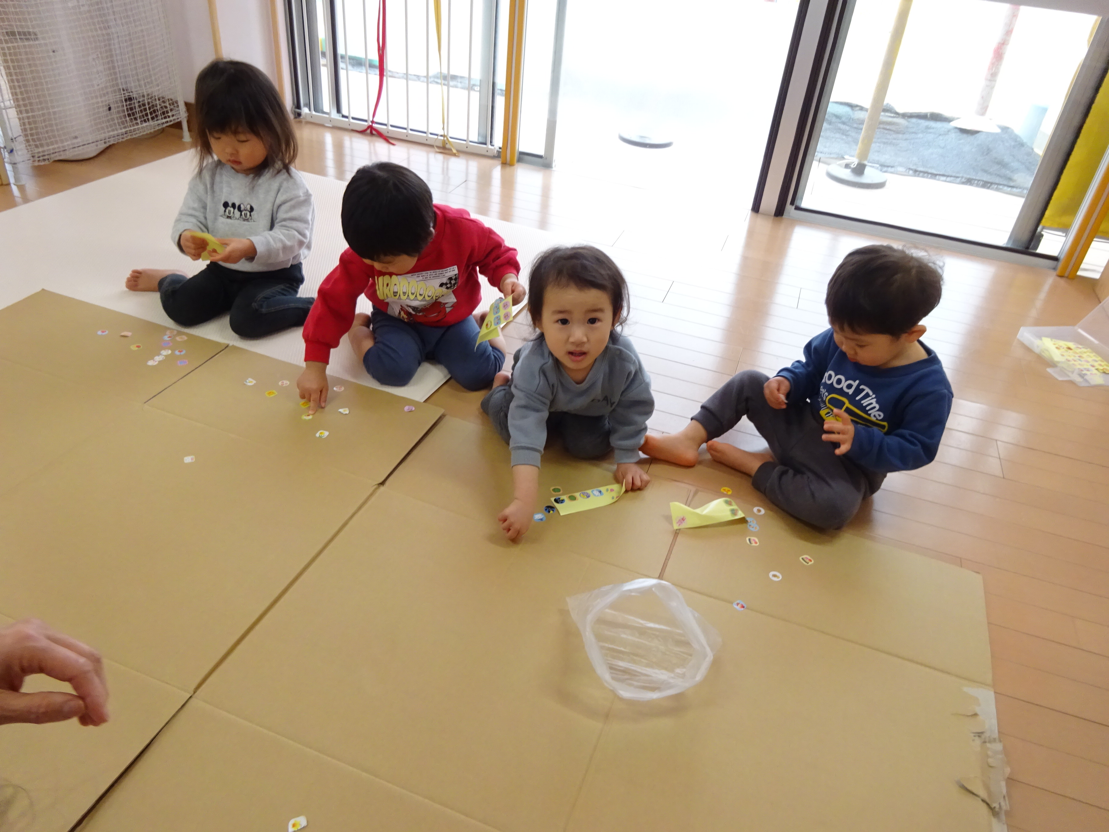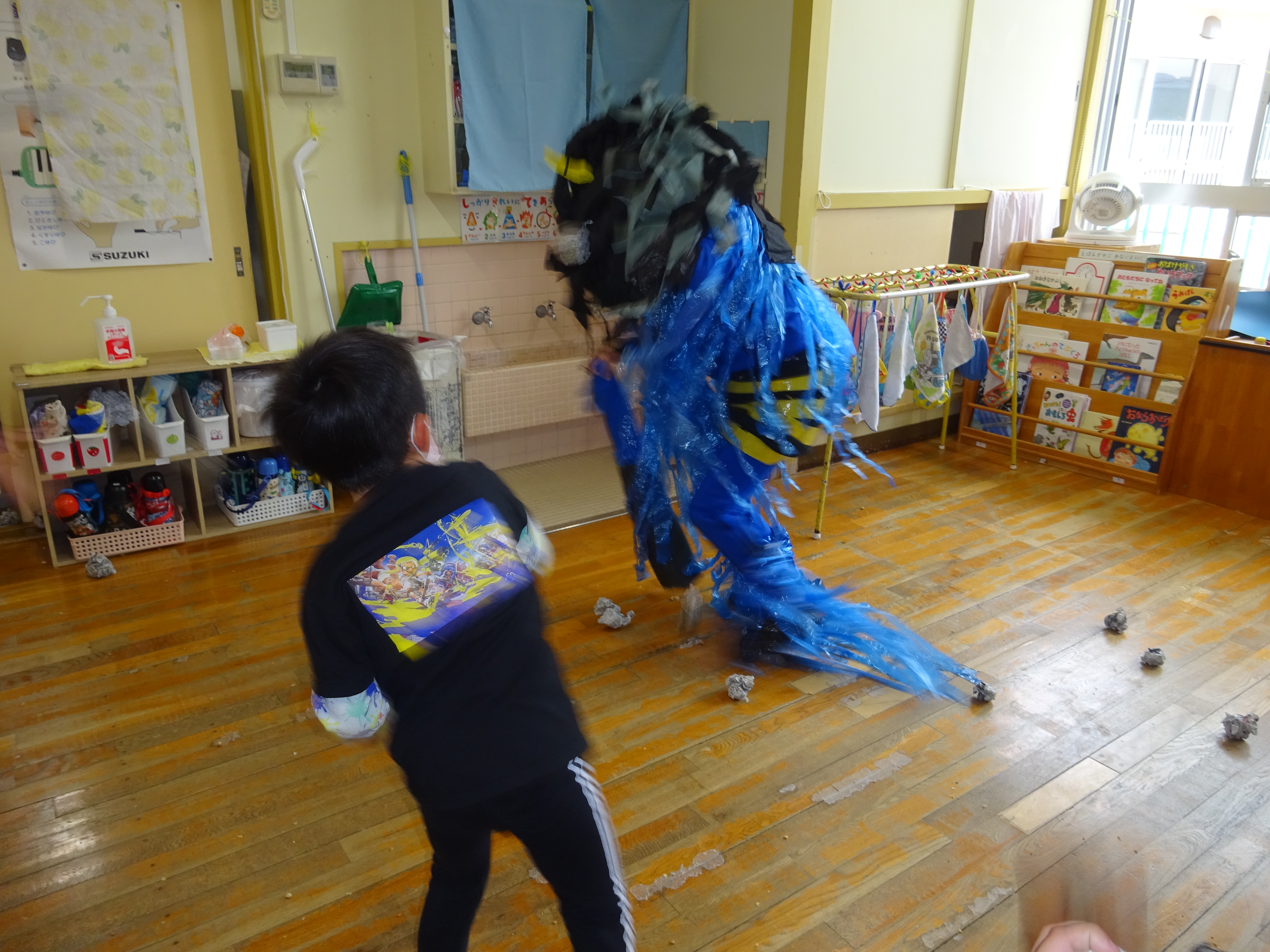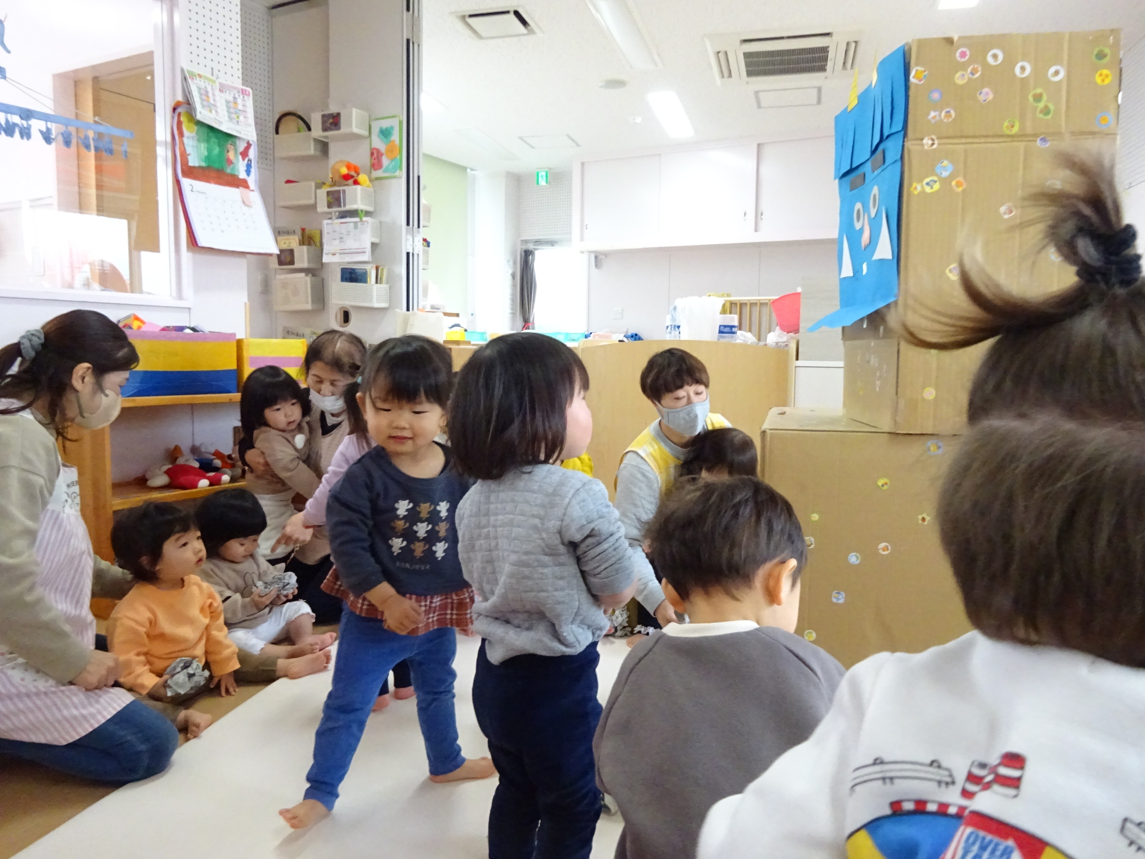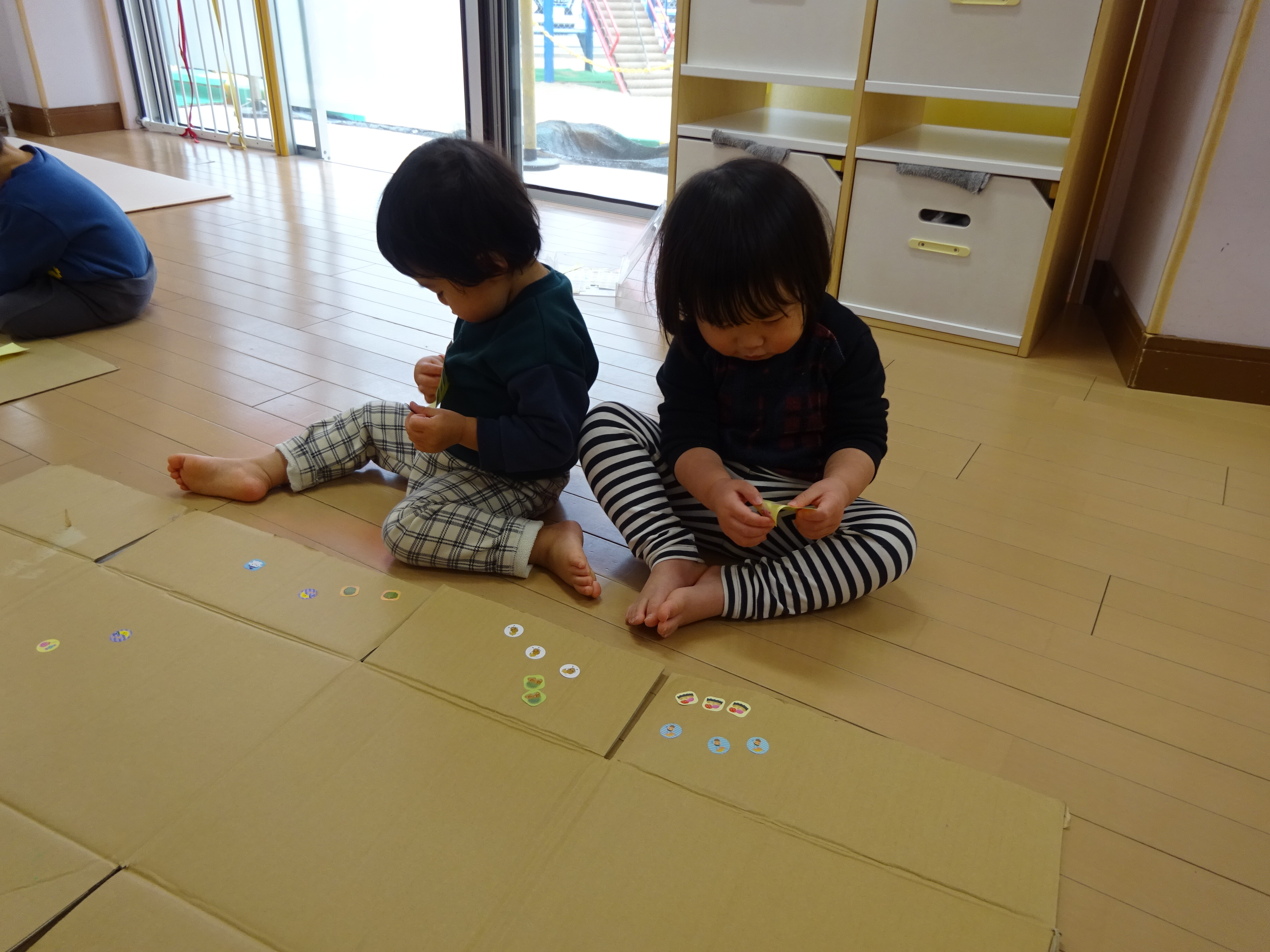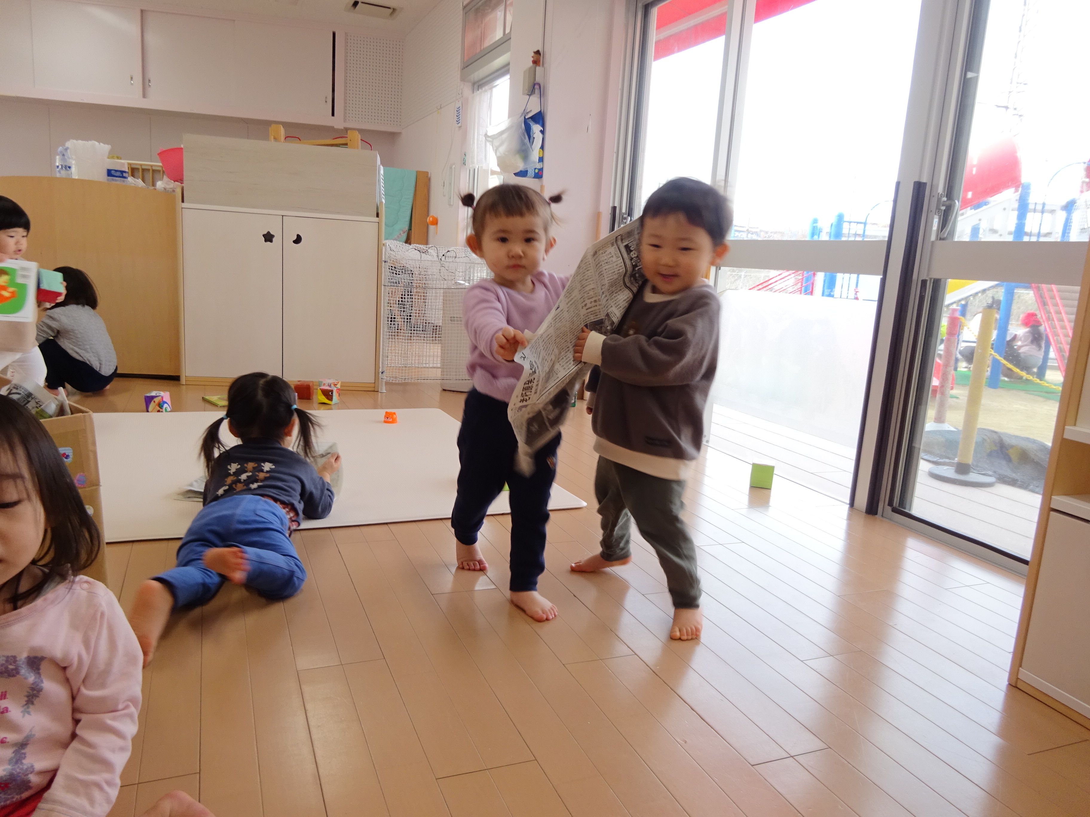 オニ遊び楽しんでまーす❤ 2023年 2月 3日 Fri 管理者 シール貼りを楽しみました。 新聞を丸めて新聞ボールをつくってます。ぎゅー‼ シールを貼ったダンボール箱を組み立てて、丸めた新聞で鬼退治ごっこ遊びスタート!! 元気いっぱい楽しそうに投げて遊びました。えーい(^^) 鬼さんトンネル 鬼さん遊び引き続き楽しみまーす。 ぽん