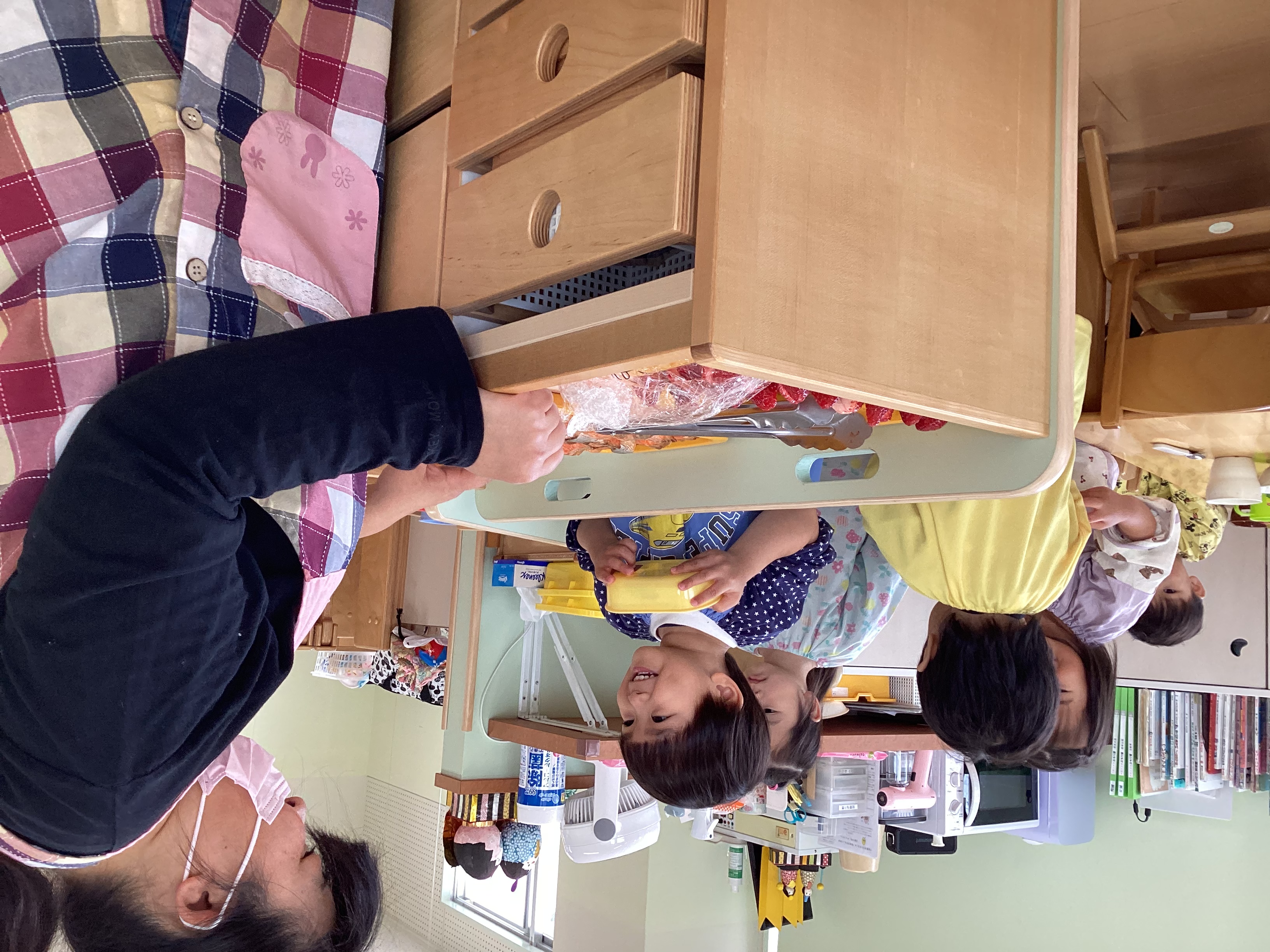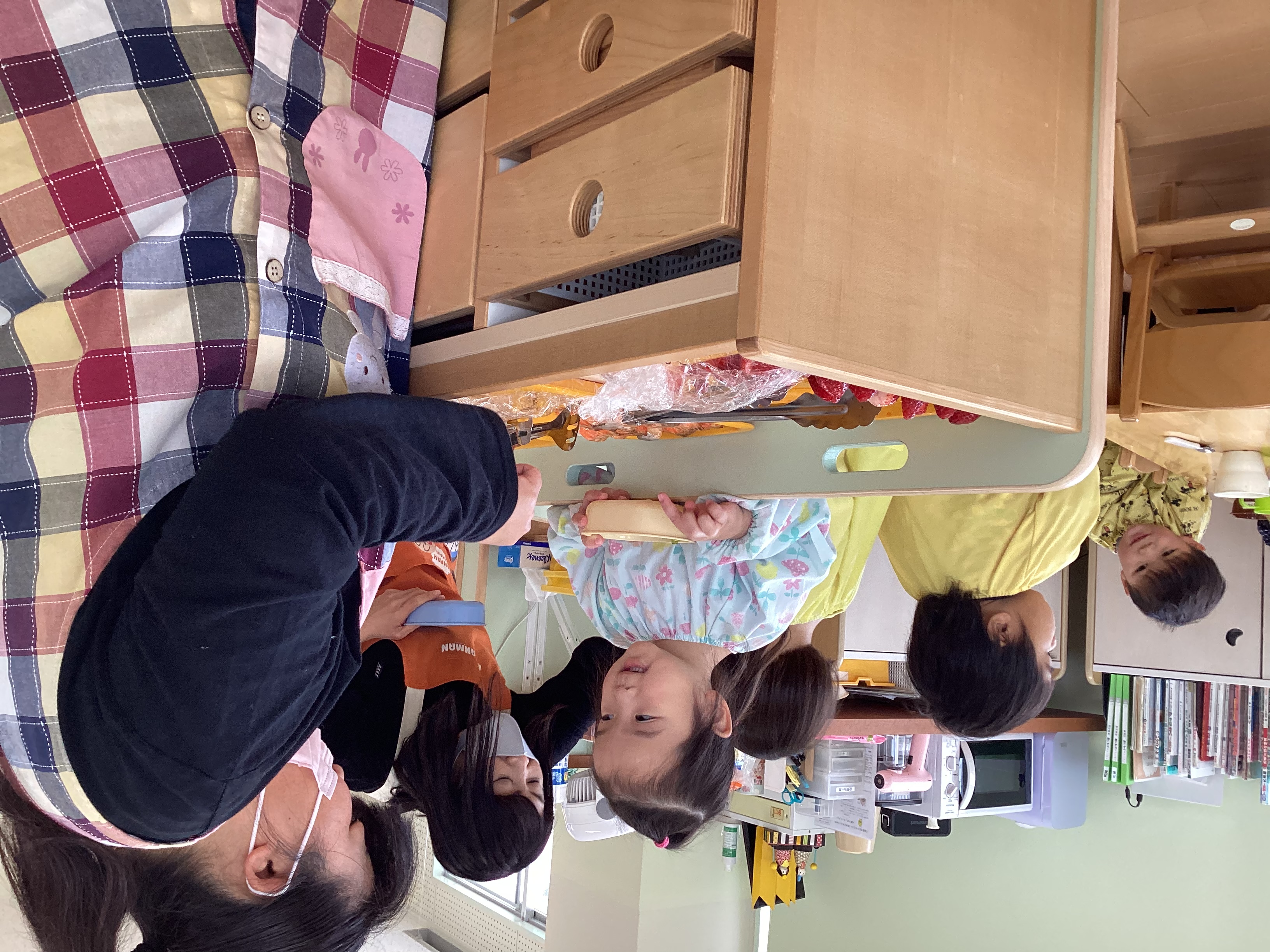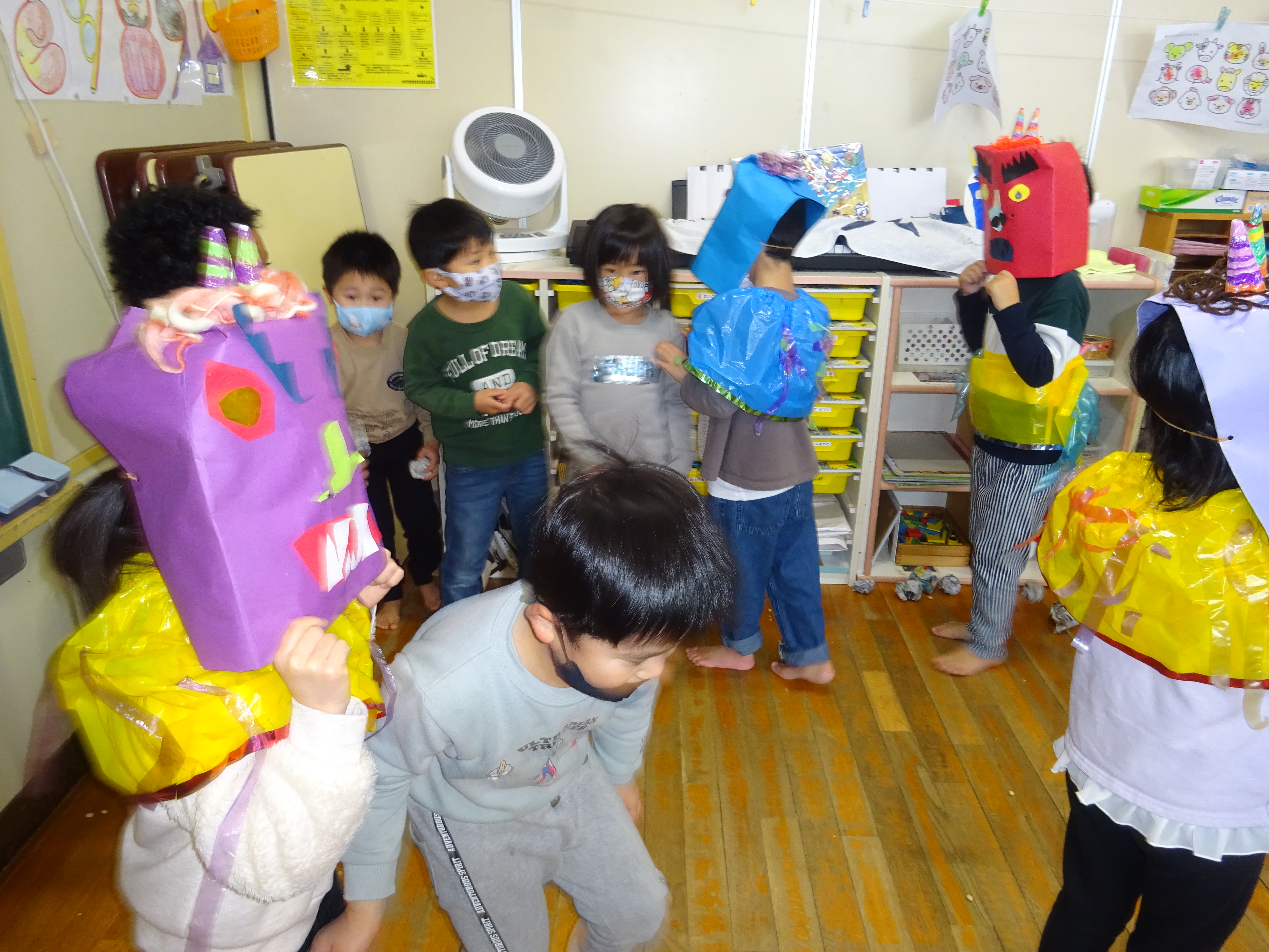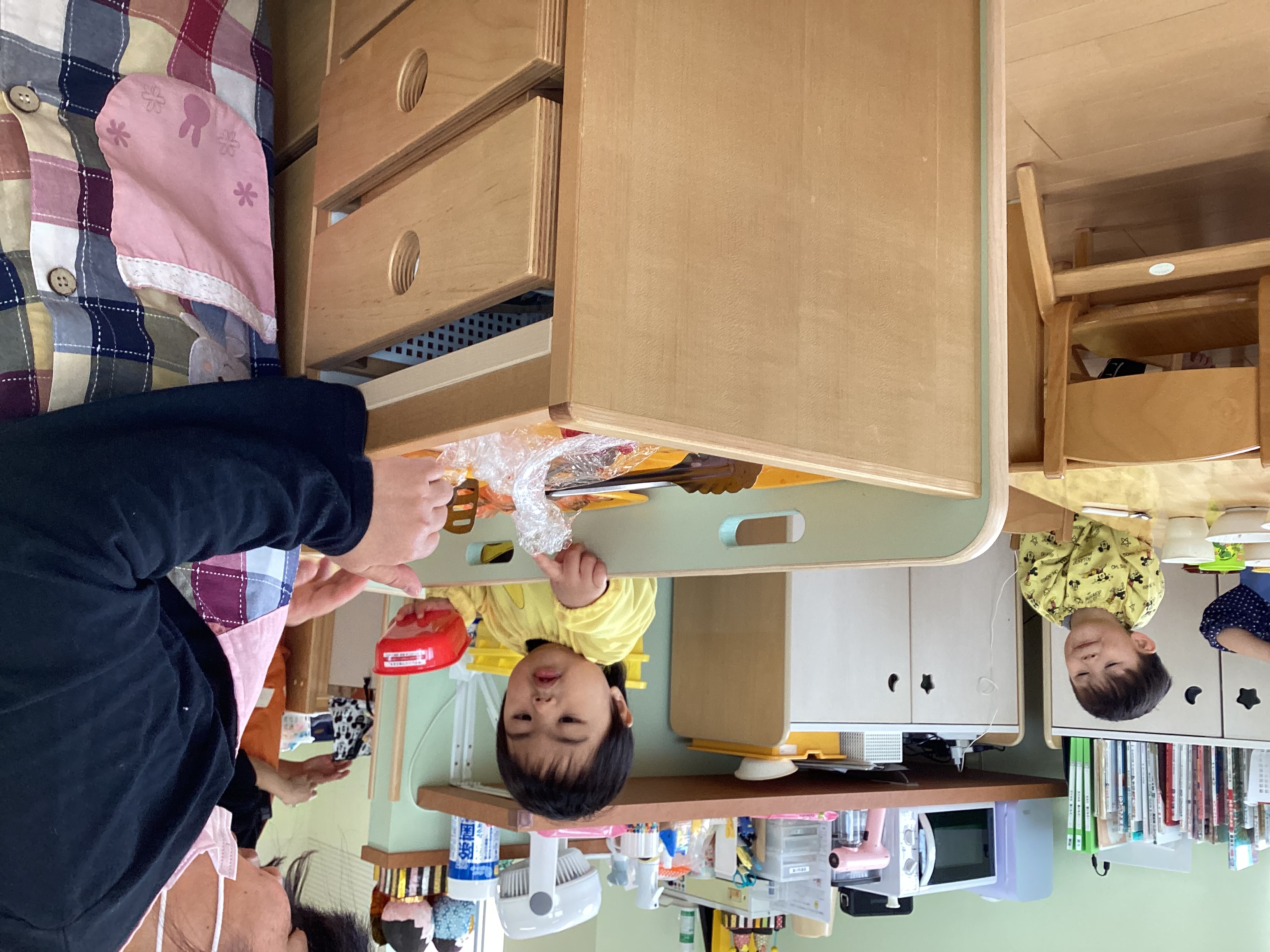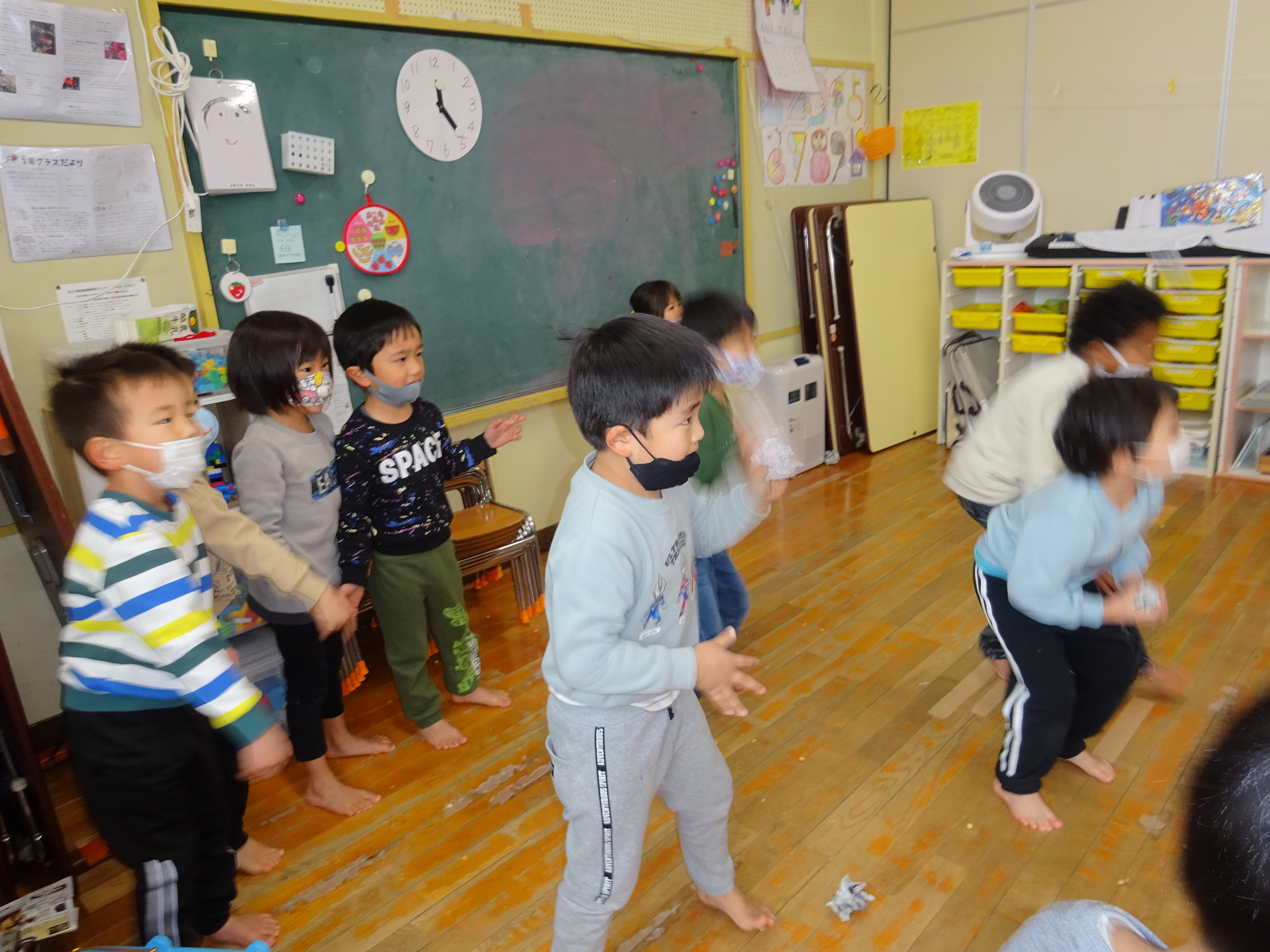 うさぎぐみの節分 2023年 2月 4日 Sat 管理者 オニが来たらいけんけー準備、準備 ib きりん組オニから登場。いつもは優しいお兄さん・お姉さんと分かっているから怖くない子もいれば、それでも怖い子も… きりん組オニがて帰って一安心、、と思っていたら 大きいオニ登場‼豆と、朝作った新聞紙ボールを投ます。 「鬼は外、福は内」逃げる・投げる事に必死でなかなか掛け声が出ません(;^ω^) オニをやっつけた~‼ 喜んでいたのも束の間…… 戻って来た(゚Д゚;)‼ 今度こそ、本当に帰ってね♡ 泣いているお友だちに優しい言葉を掛けてあげています♡あきらくん 今年も元気に過ごそうね! れもん 前の記事 次の記事