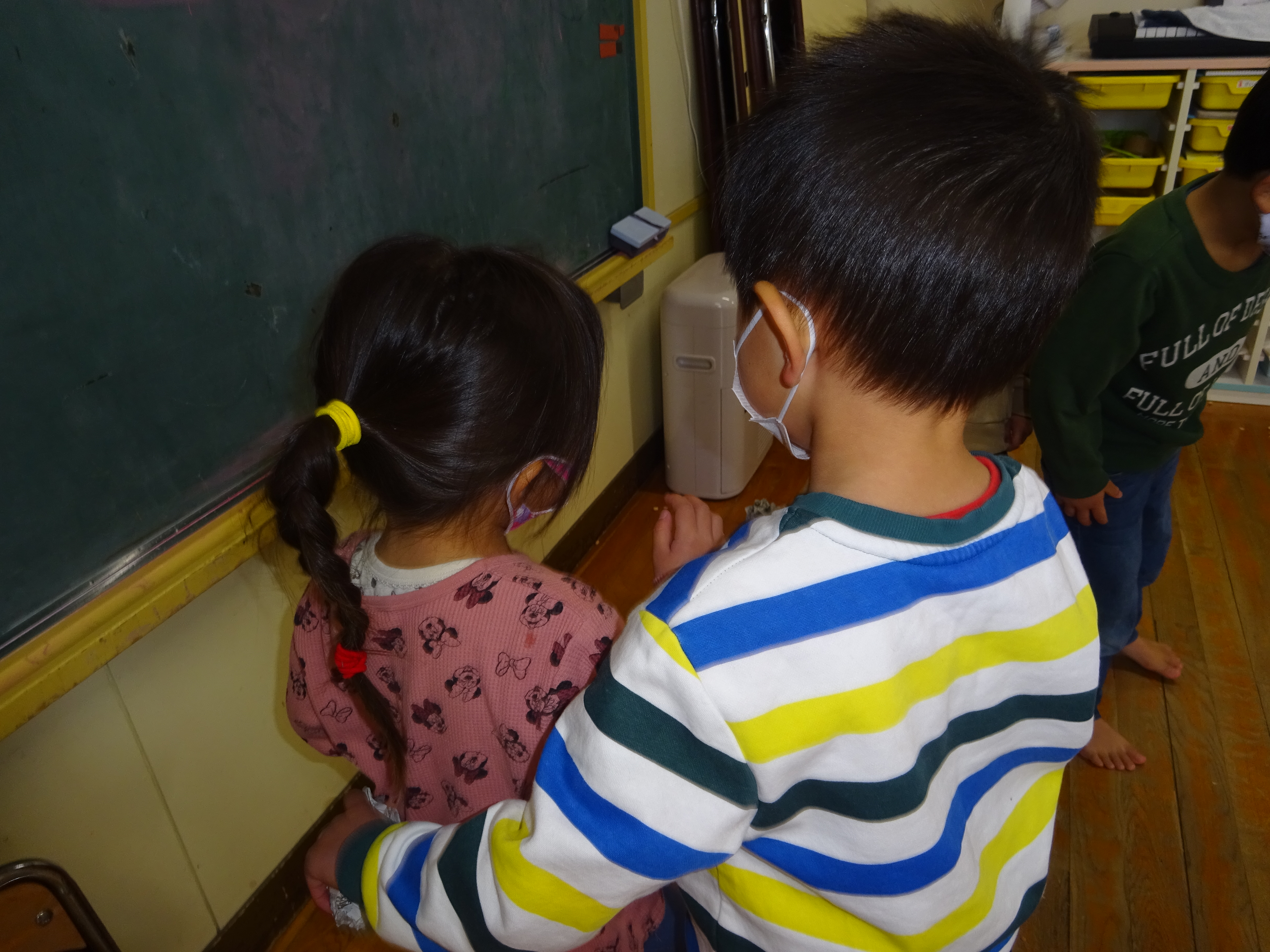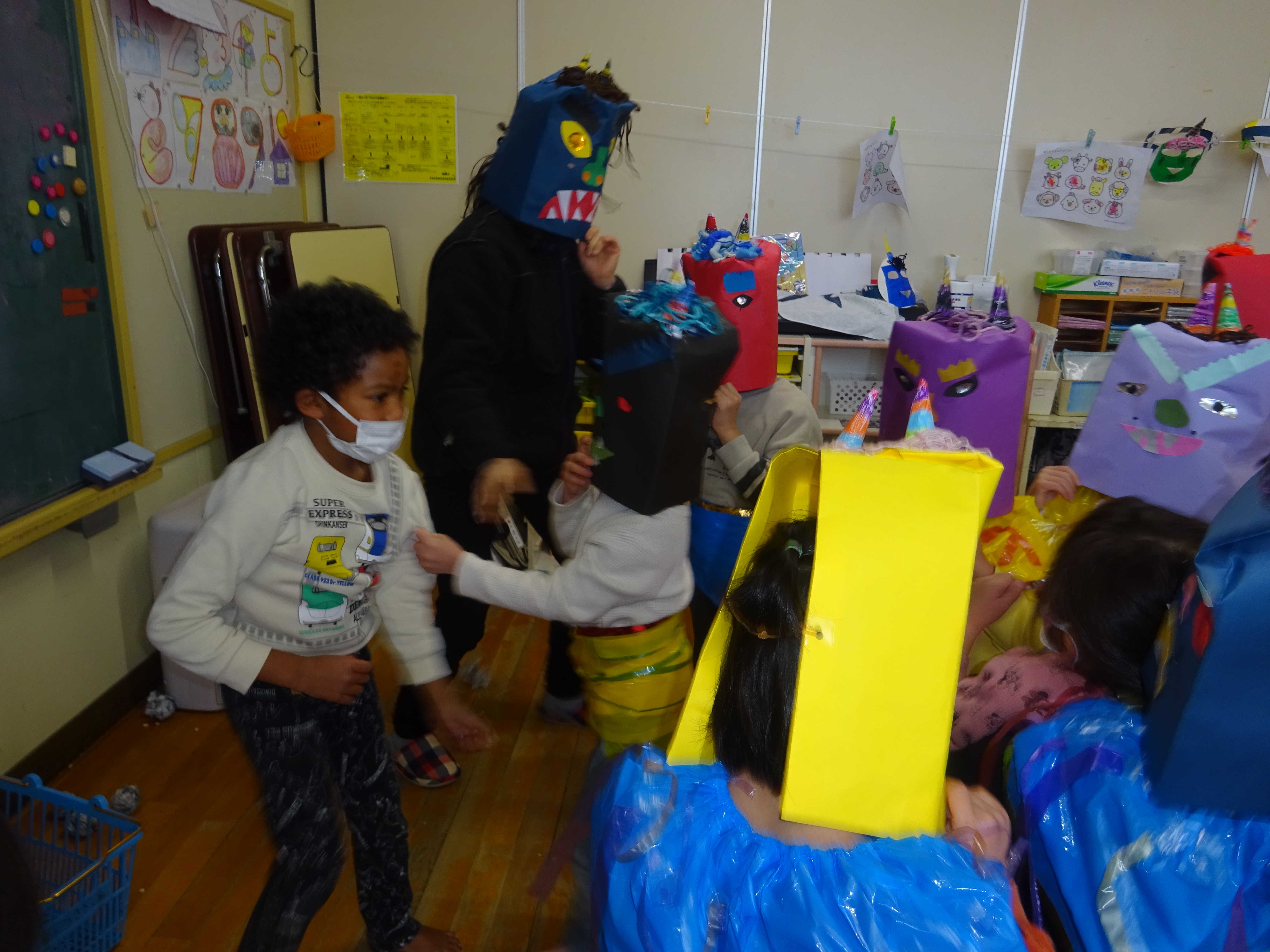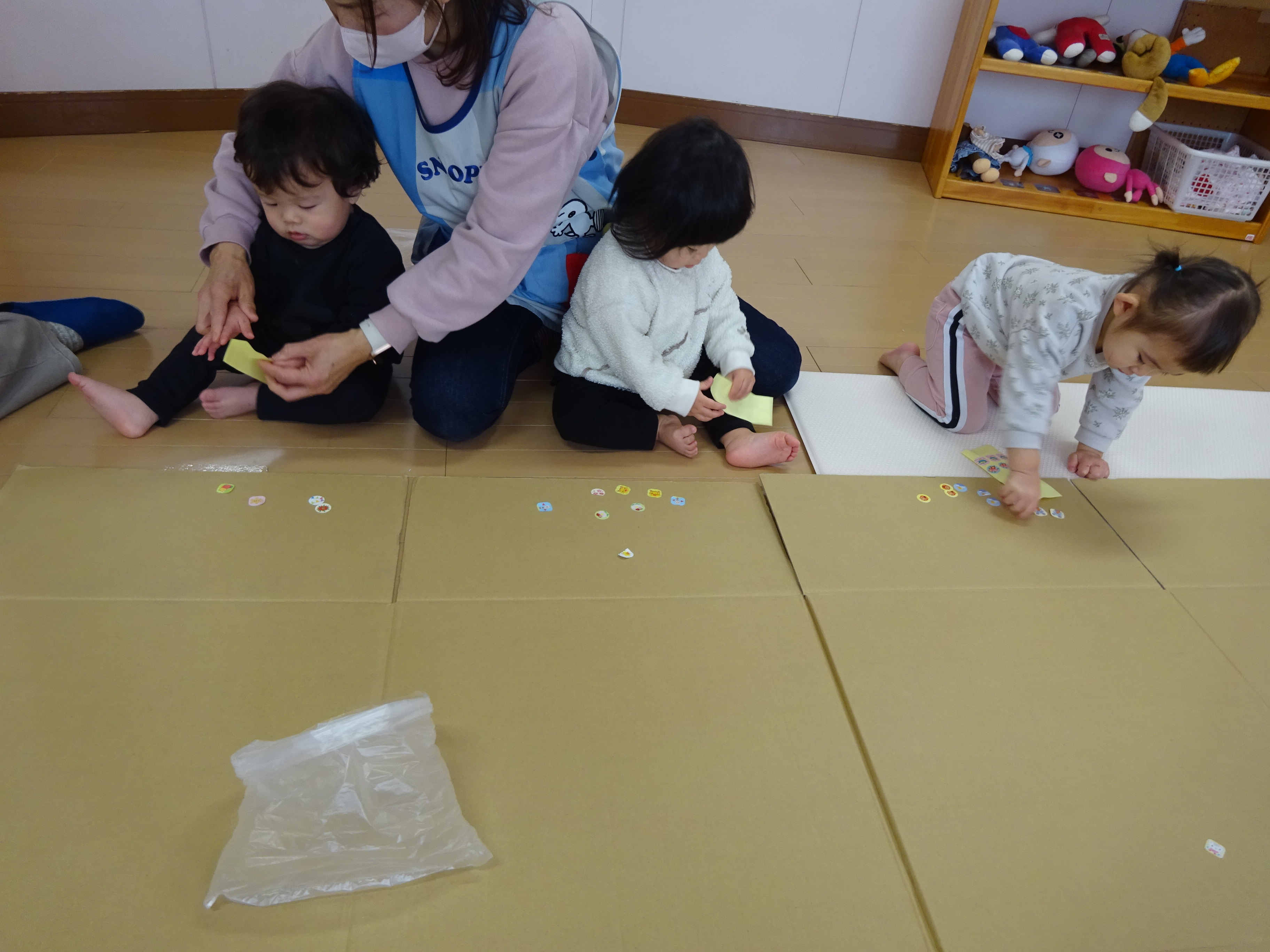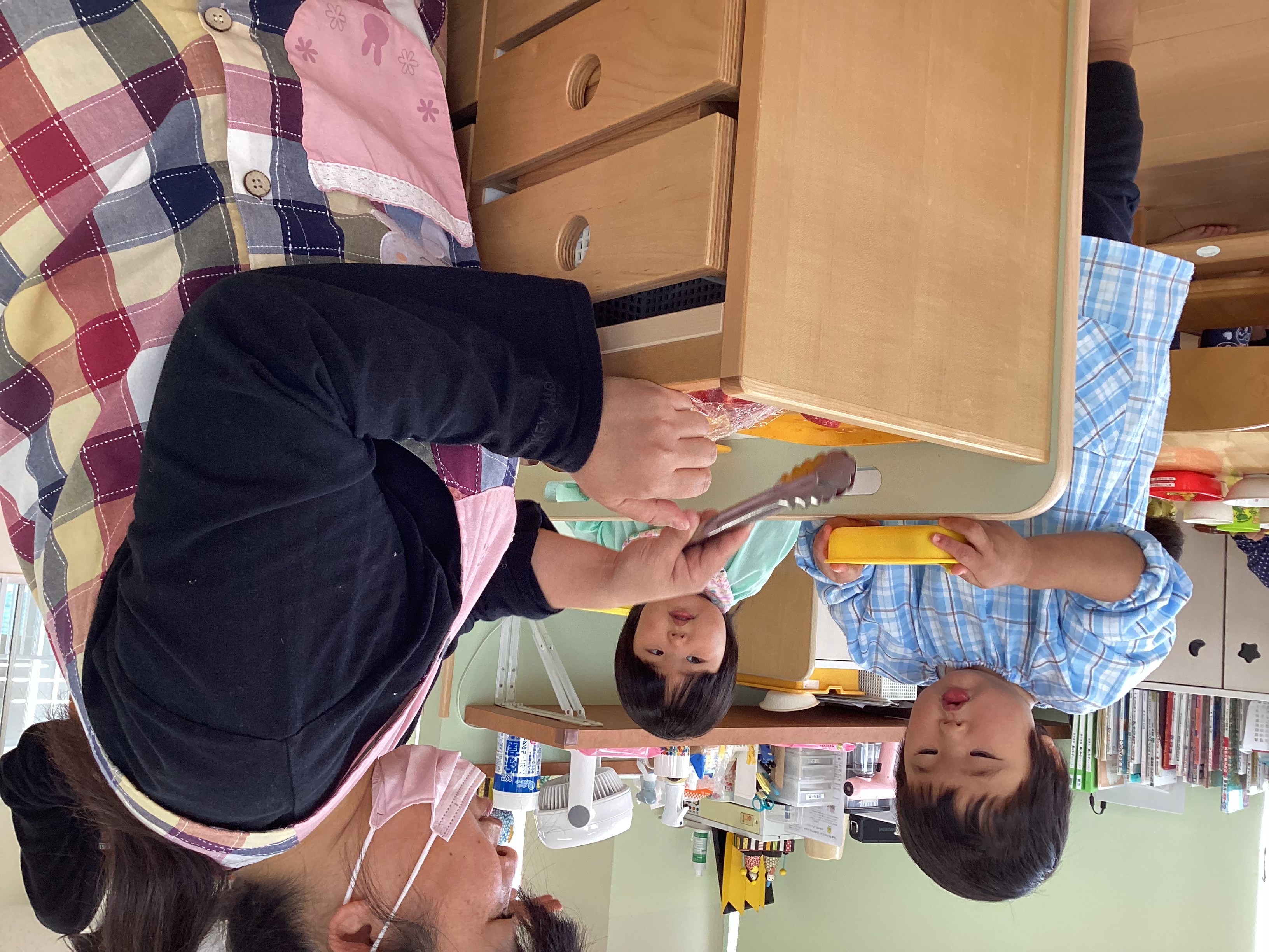 うさぎぐみの節分 2023年 2月 4日 Sat 管理者 オニが来たらいけんけー準備、準備 ib きりん組オニから登場。いつもは優しいお兄さん・お姉さんと分かっているから怖くない子もいれば、それでも怖い子も… きりん組オニがて帰って一安心、、と思っていたら 大きいオニ登場‼豆と、朝作った新聞紙ボールを投ます。 「鬼は外、福は内」逃げる・投げる事に必死でなかなか掛け声が出ません(;^ω^) オニをやっつけた~‼ 喜んでいたのも束の間…… 戻って来た(゚Д゚;)‼ 今度こそ、本当に帰ってね♡ 泣いているお友だちに優しい言葉を掛けてあげています♡あきらくん 今年も元気に過ごそうね! れもん 前の記事 次の記事