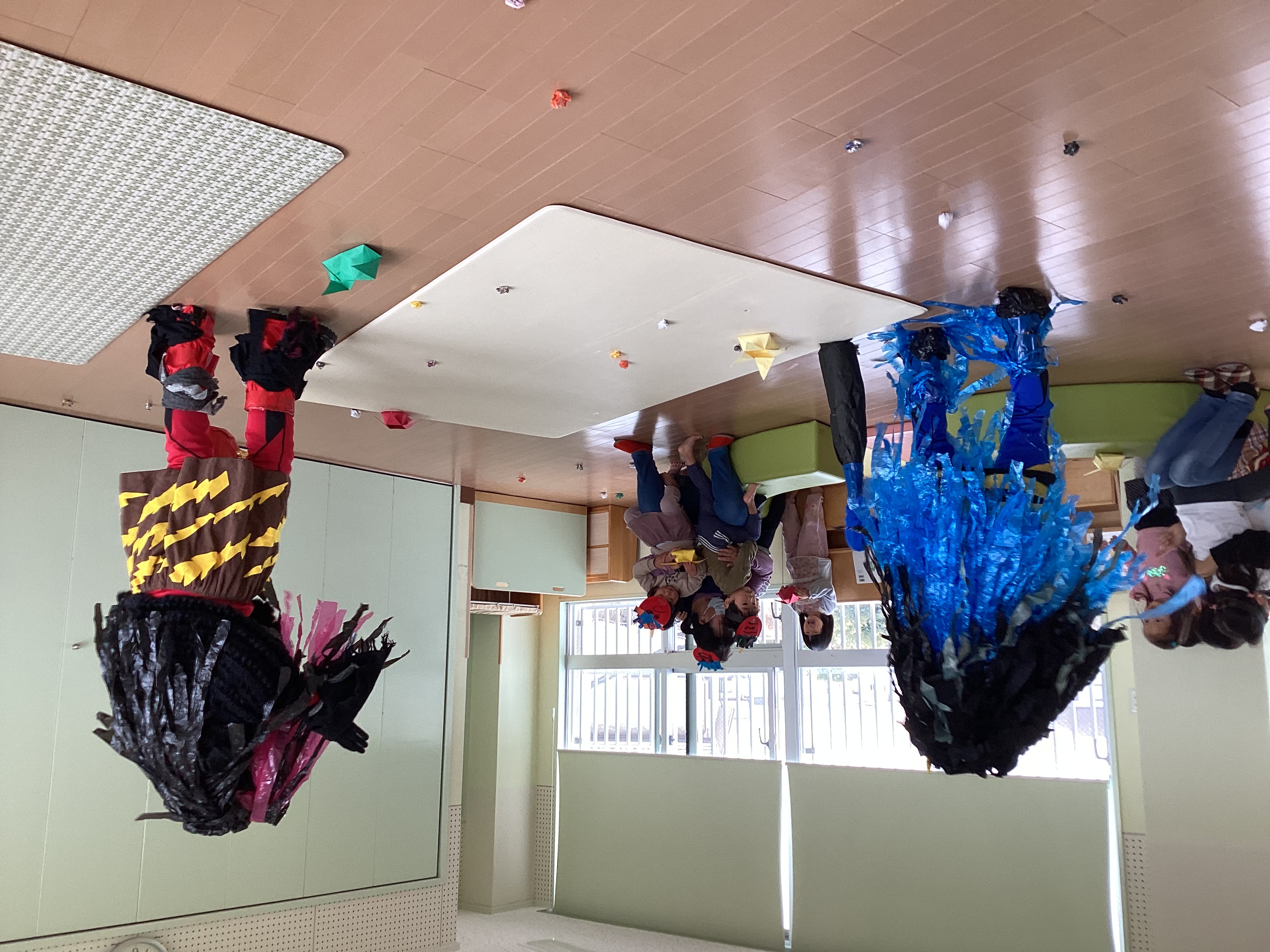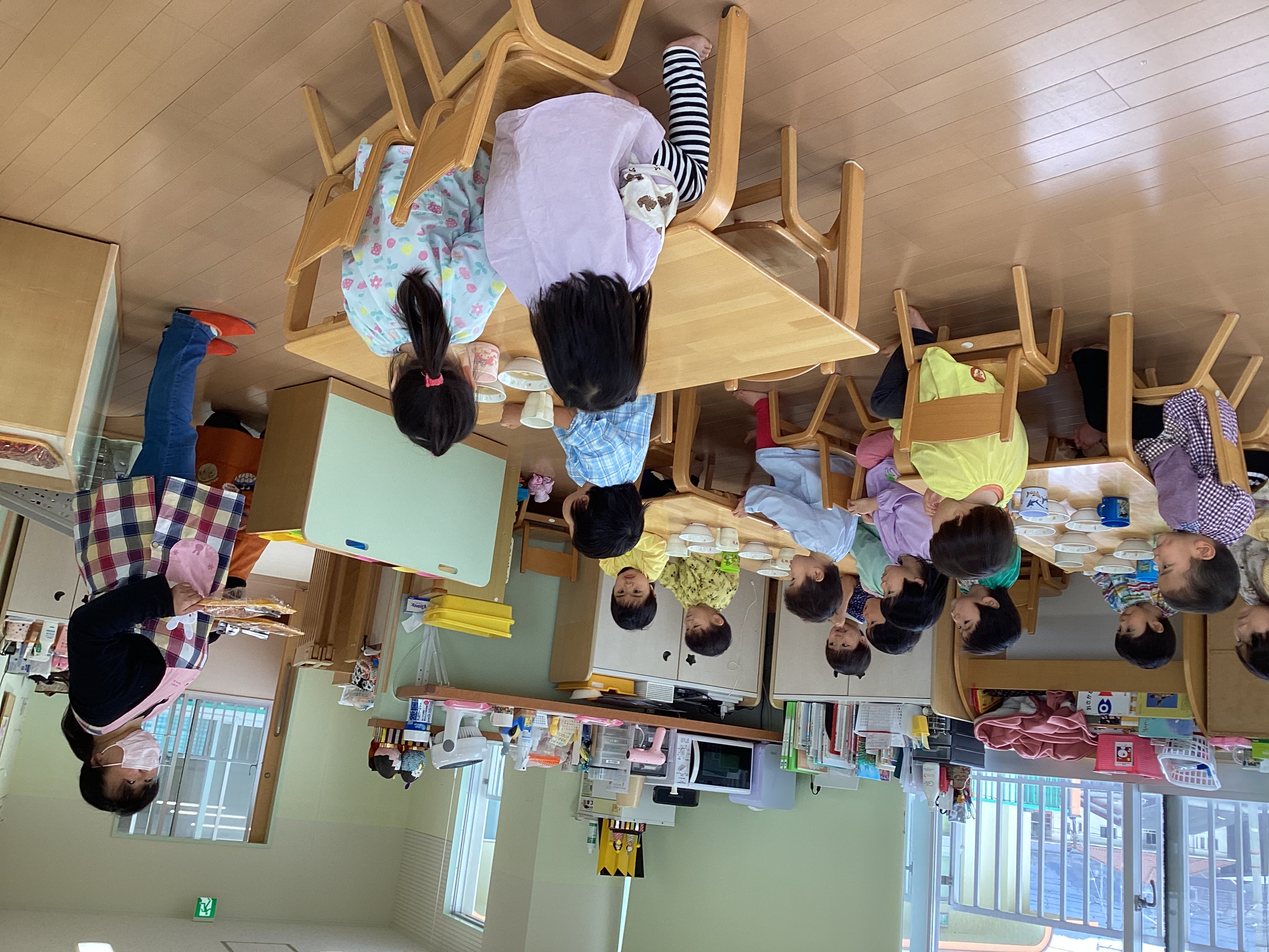 ひよこの豆まき 2023年 2月 3日 Fri 管理者 今日は、豆まき! 厄災。みんなの心の中にいる泣き虫鬼、意地悪鬼、ちらかし鬼、おこりんぼう鬼を退治しよう! 準備は、いいかな。『鬼は、そと‼︎』 豆まきの練習を しようとしたら ドンドンと戸を叩く音が… きりん鬼の登場! みんな、頑張って‼︎ すご〜い! 頑張ってる! きりん鬼を 追い出したぞ! 「また、鬼が来たらいけんけえ、豆を拾わんと…」 気分を 変えて 「鬼をやりたいひと?」 みんなで 豆まきしよう! すると、大鬼登場‼︎ 今日一番の涙でした。 今年も 健康で元気な一年でありますように。 サファイア 前の記事 次の記事