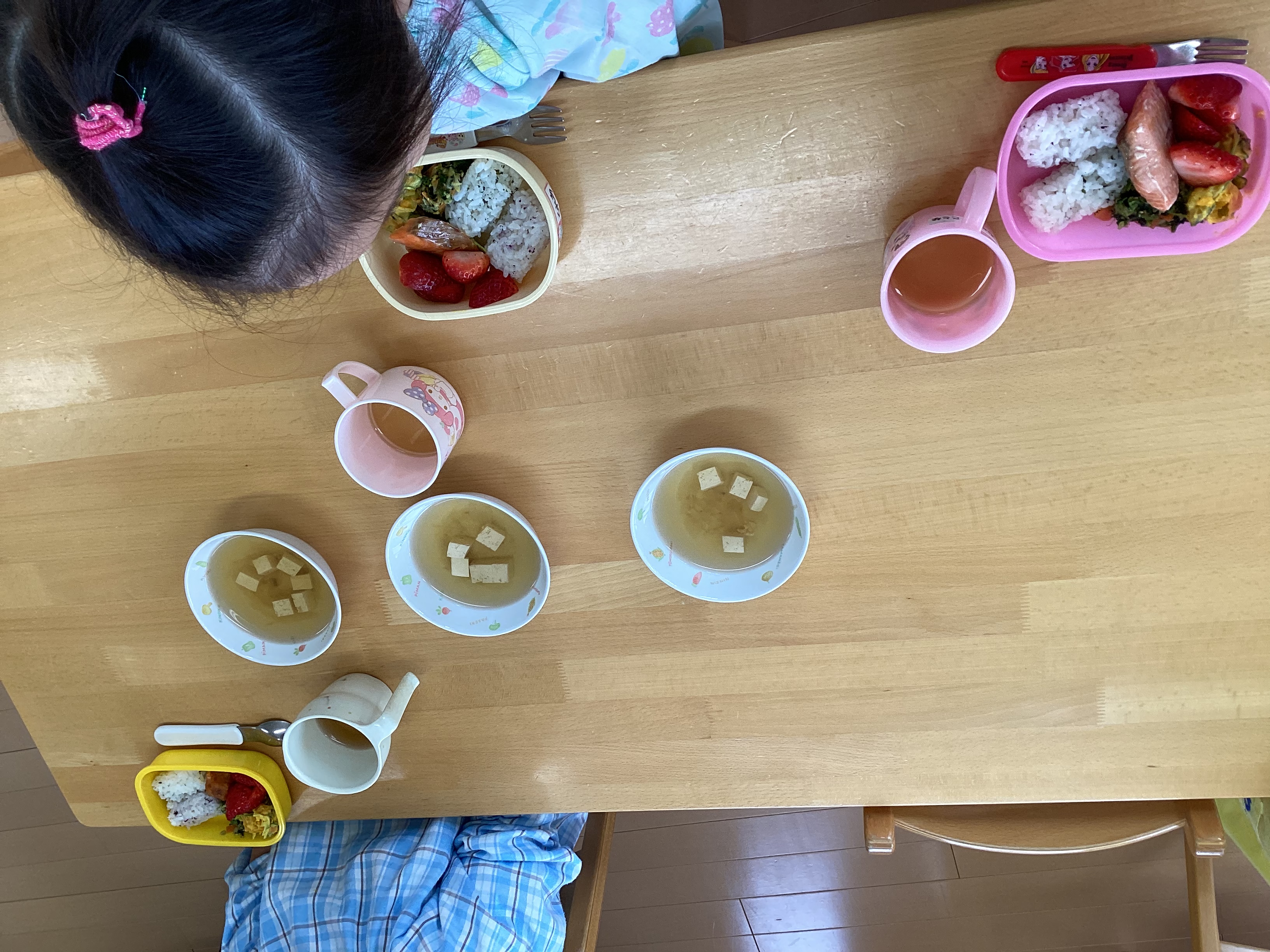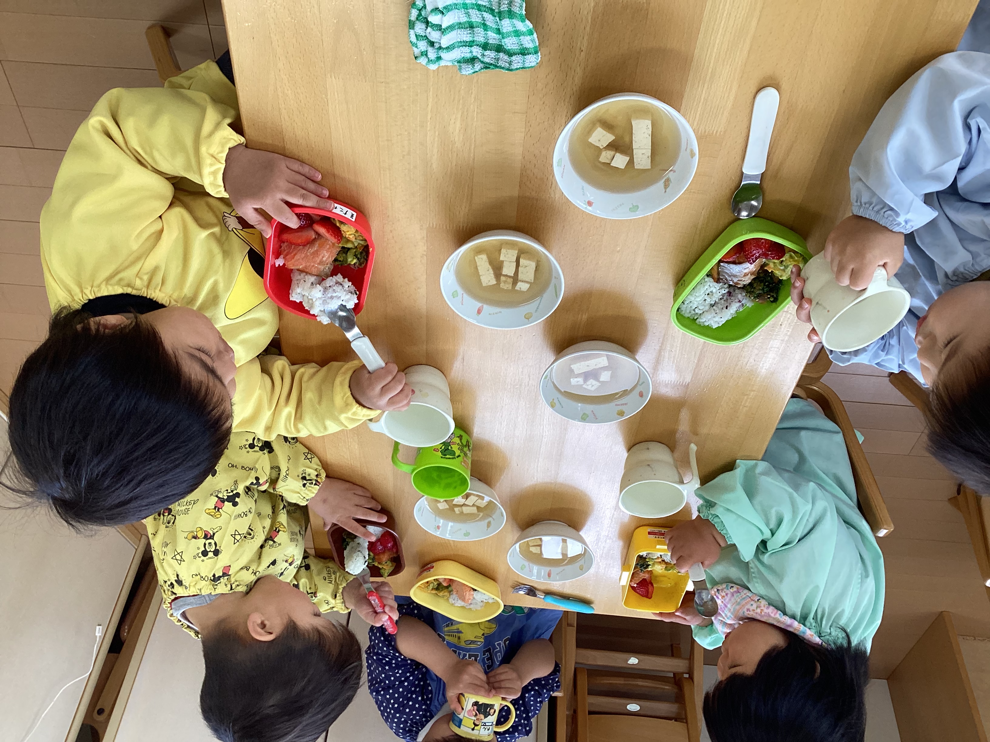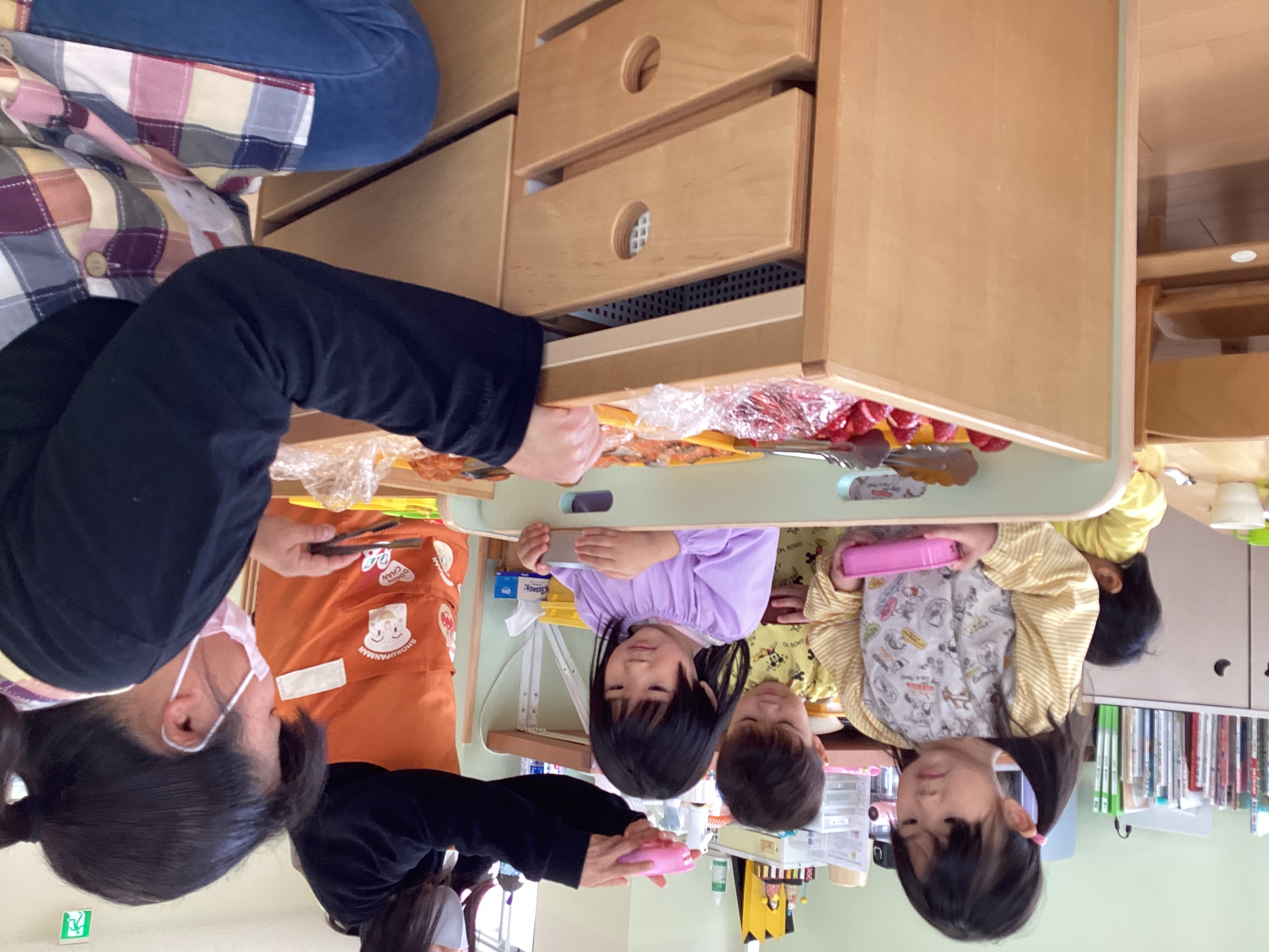 ひよこ組のバイキング弁当 2023年 2月 24日 Fri 管理者 金曜日はの給食は、バイキング弁当でした。 「お肉かお魚かどっちかを選んでね。その後、みんなの好きな苺を入れるからね。」 先生の話を真剣に聞くひよこ組さん。 お肉? お魚? どっちにする? 入れてもらうのを、待っています。 自分の番が来て 嬉しそう! ぼくは、これ! どれに しようかな。 みんなのお弁当が できたよ。 「おいしいお弁当、いただきます」 みんな おいしそう! 「お肉のおかわり下さい」「お魚のおかわり下さい」「お汁のおかわり下さい」 あちこちから、おかわりの声が聞こえてきましたよ サファイア 前の記事 次の記事