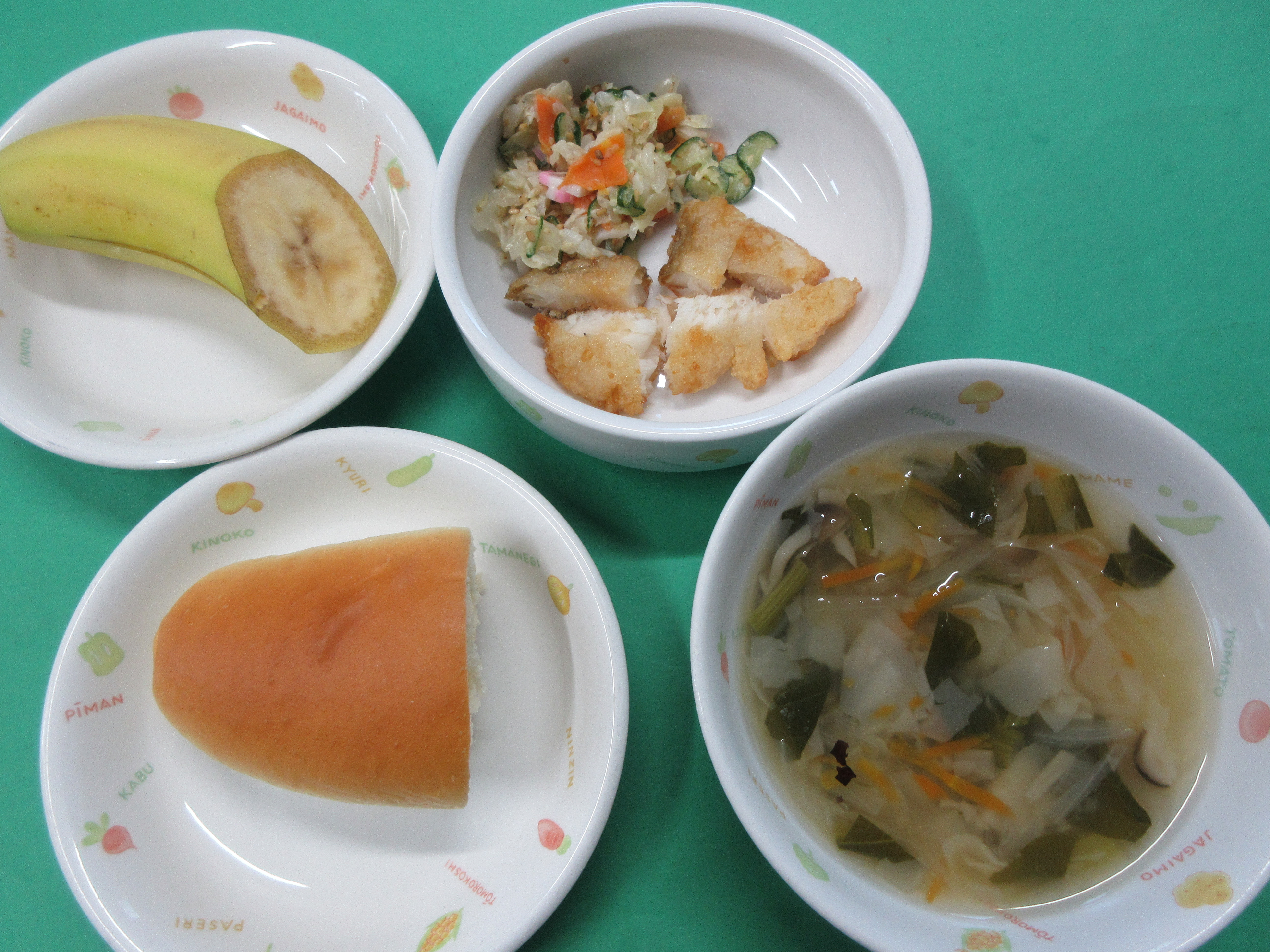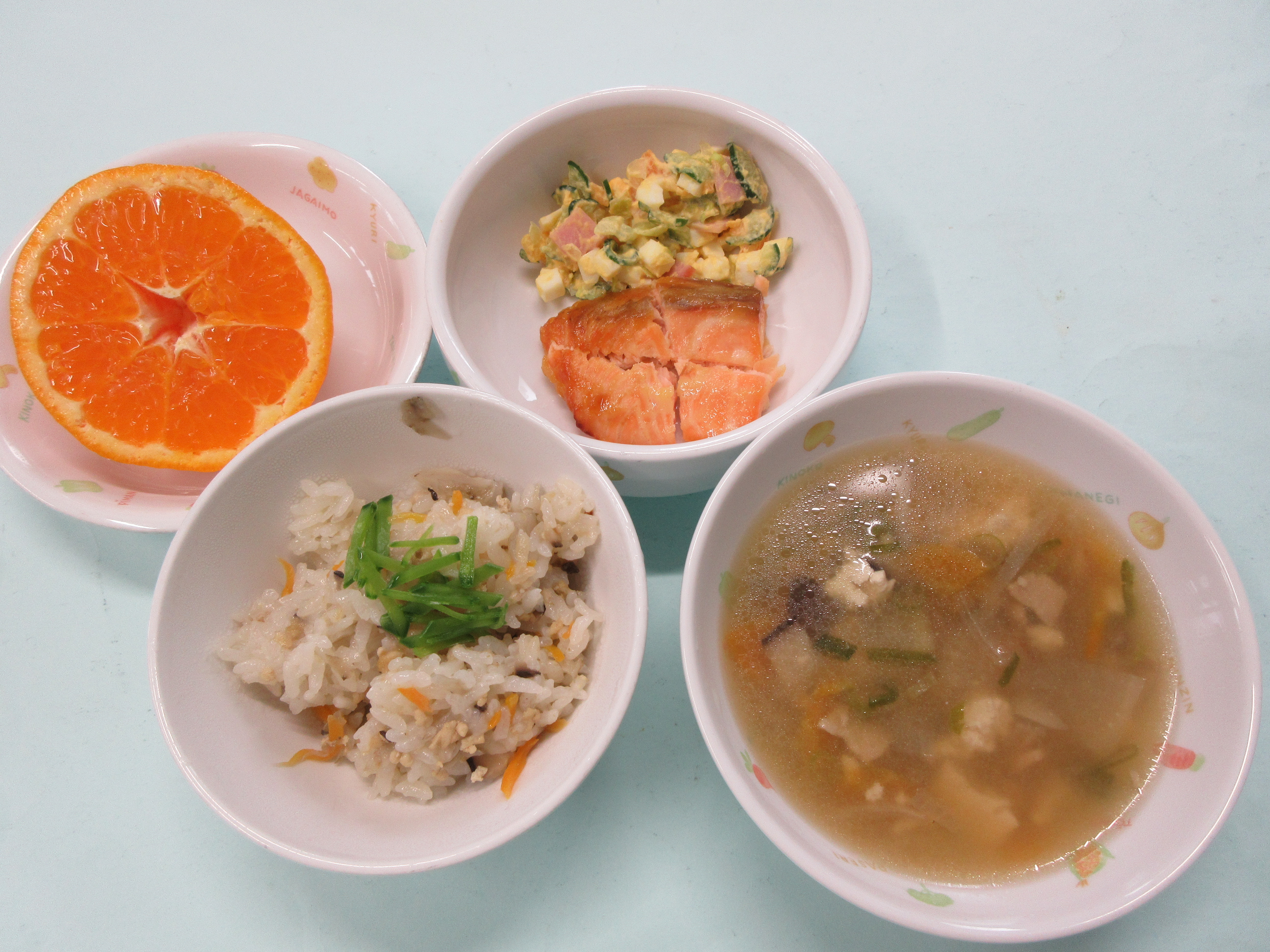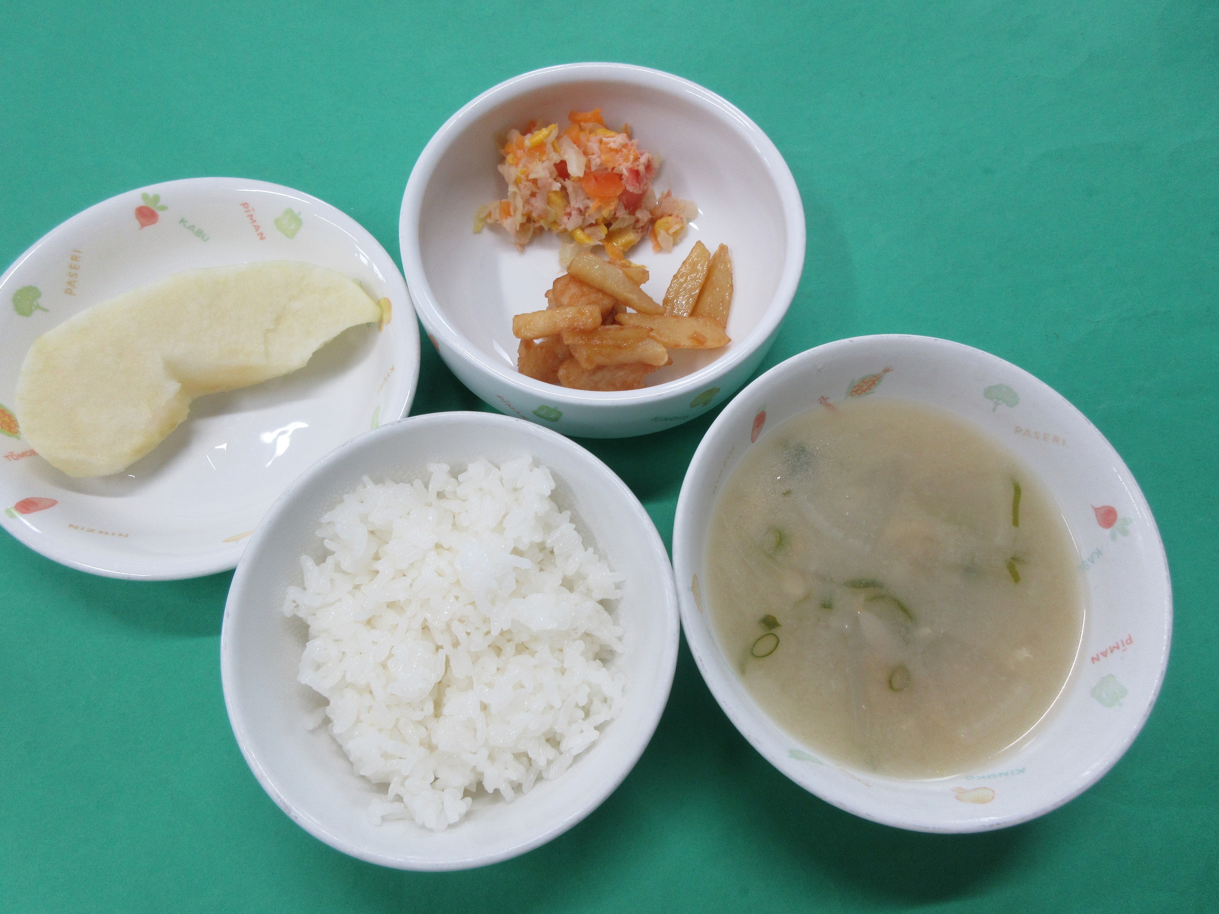 幼児組給食はお楽しみ(^_-)-☆令和3年3月3日 2021年 3月 3日 Wed 管理者 (幼児組のみ) ―お楽しみ献立― お楽しみ献立ブログにアップいたしますので しばらくお待ちくださいませ<(_ _)> (未満児) ちらし寿司 かき揚げ 白和え すまし汁 豆乳ゼリー ※献立ではいちごにしておりましたが幼児お楽しみ給食用の ゼリーが用意できましたので変更させていただきました。