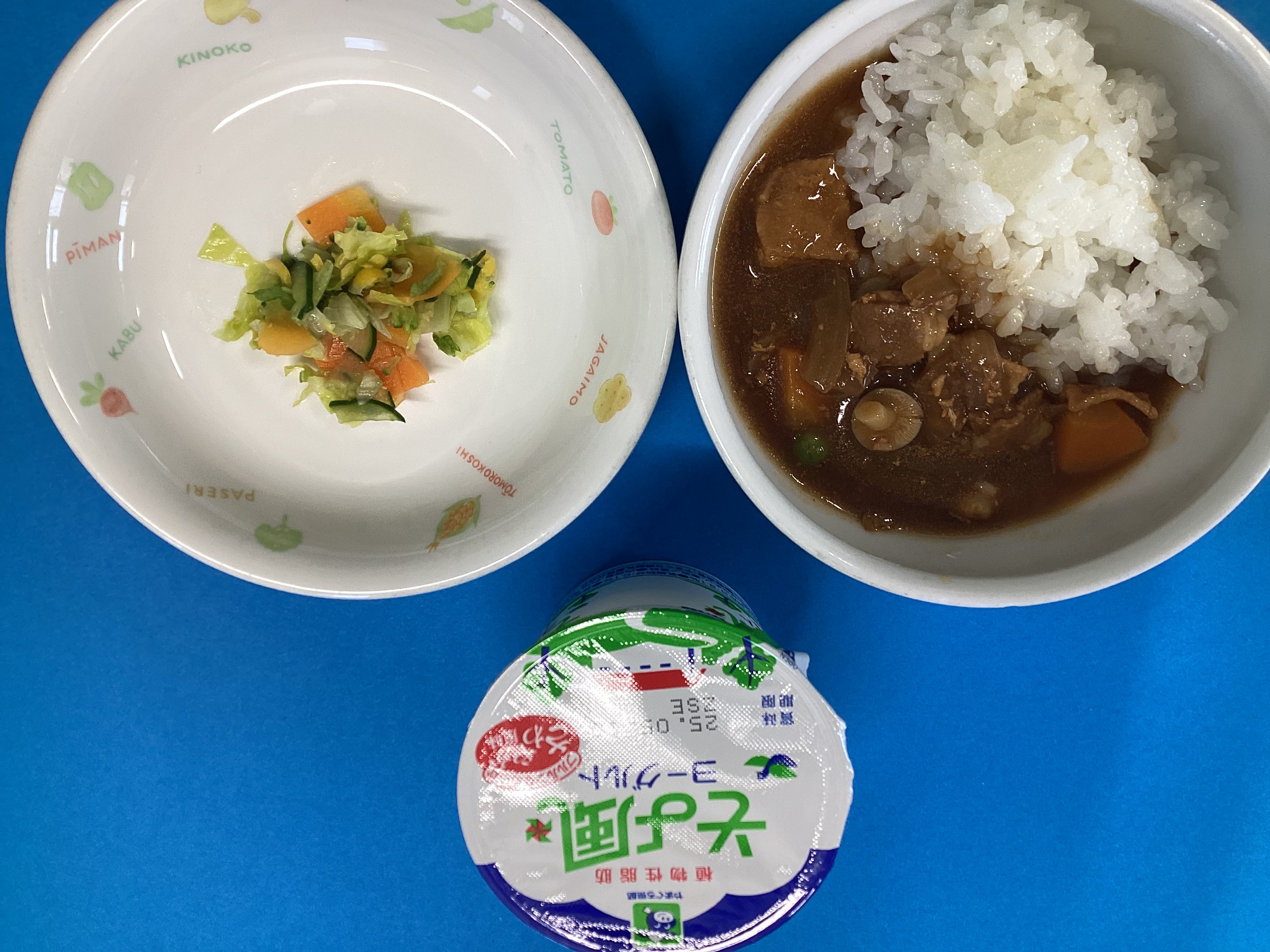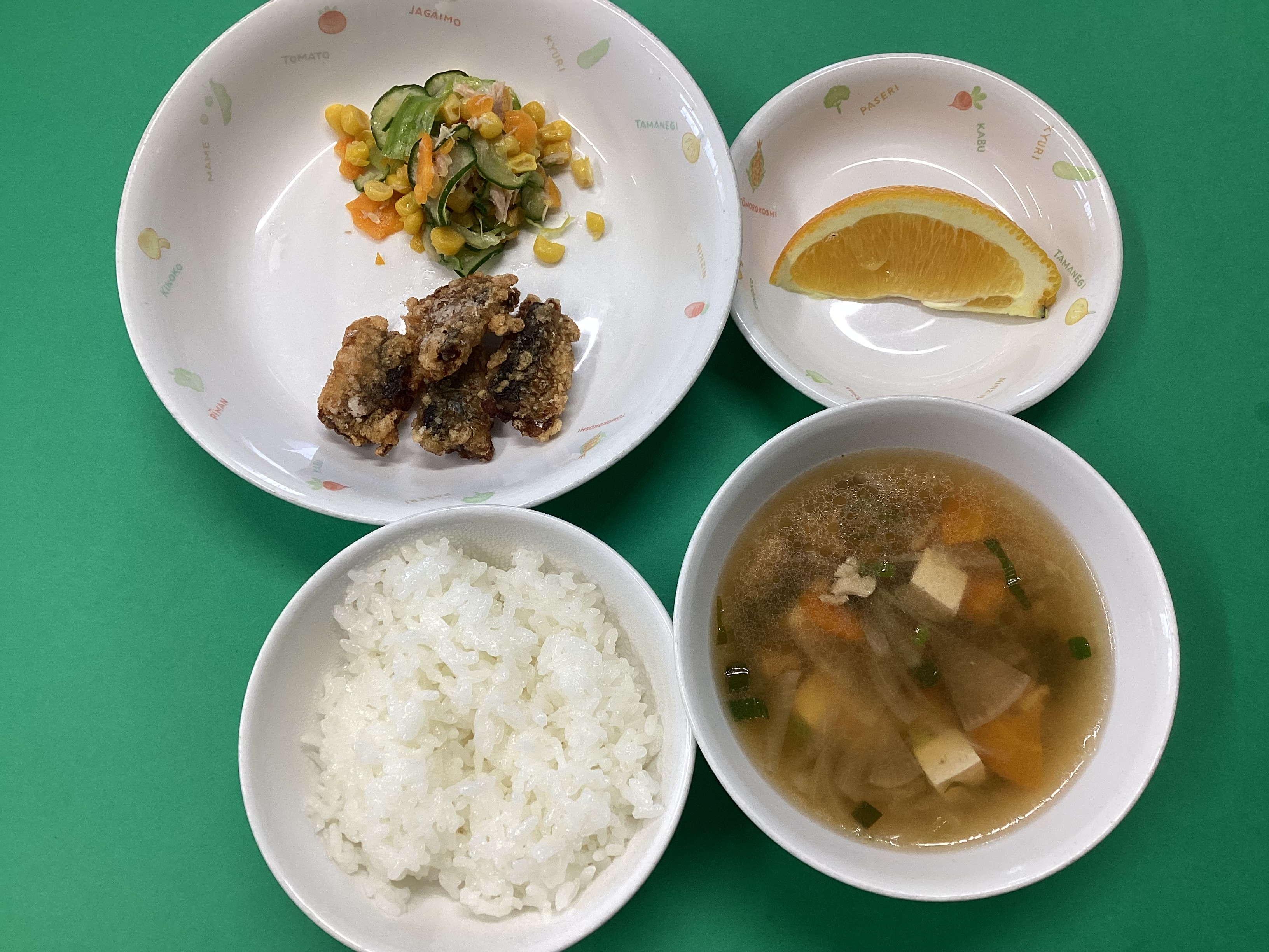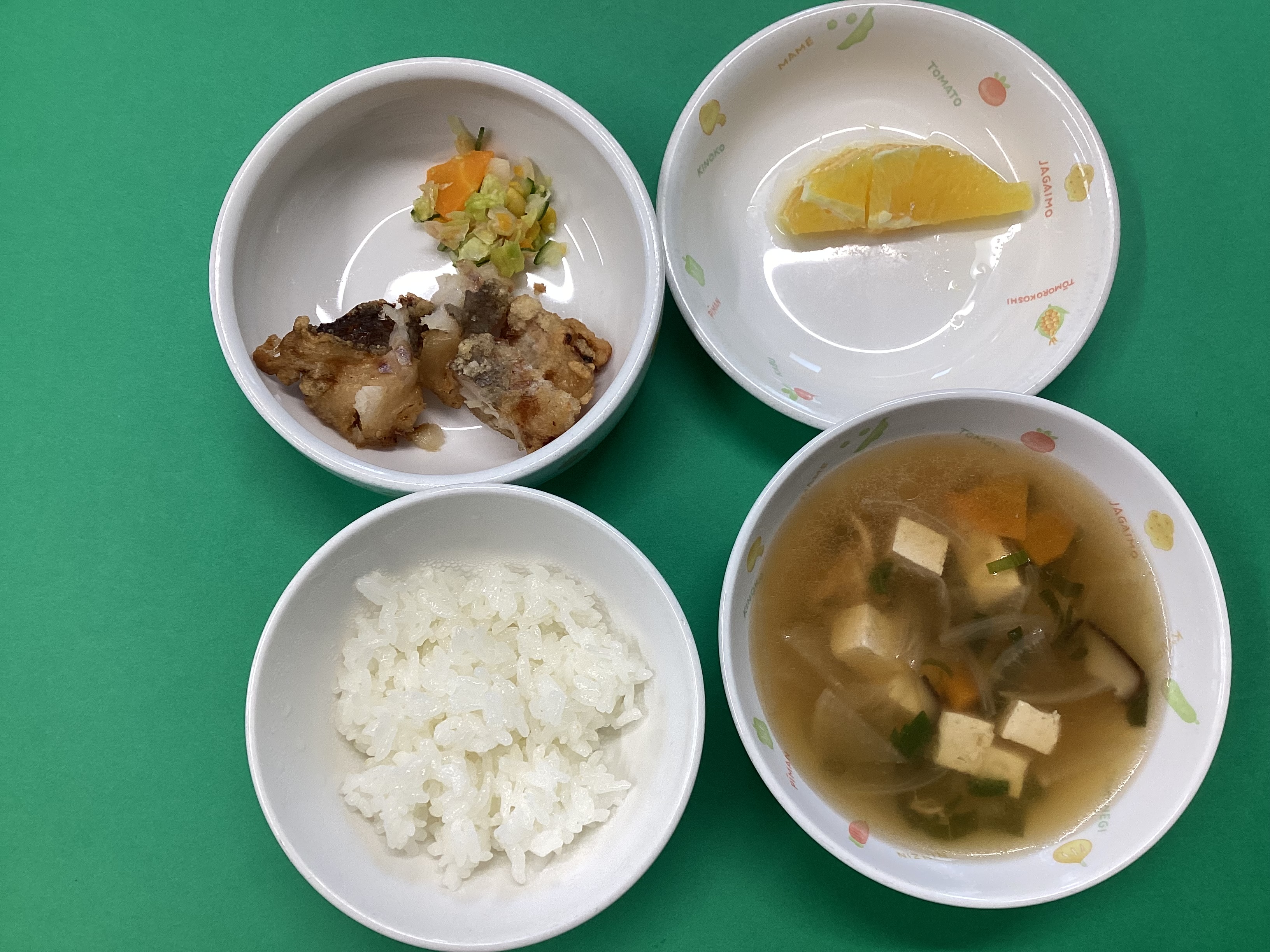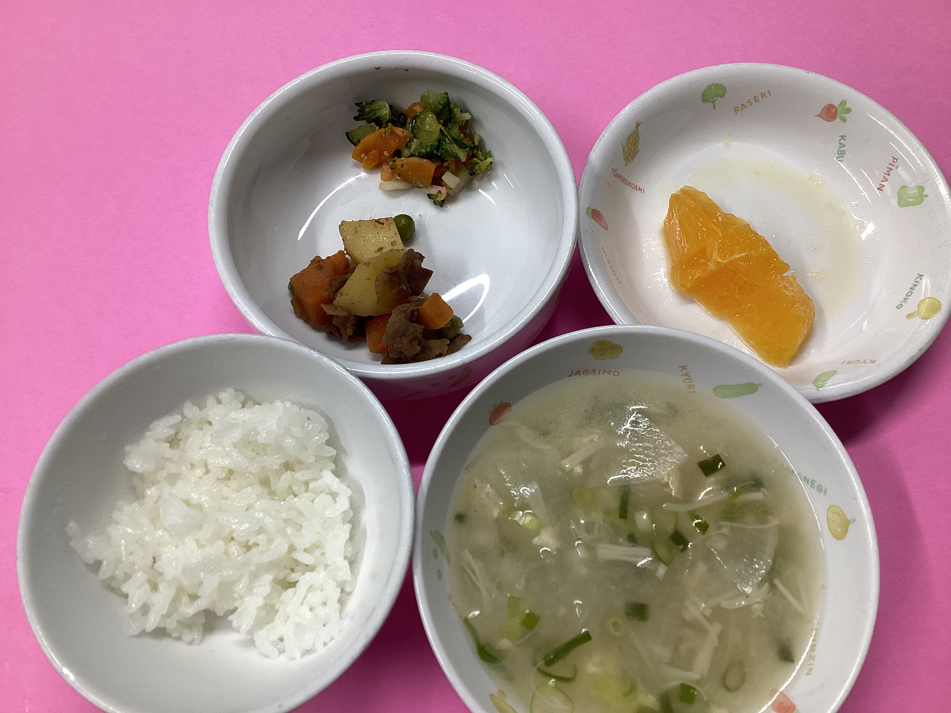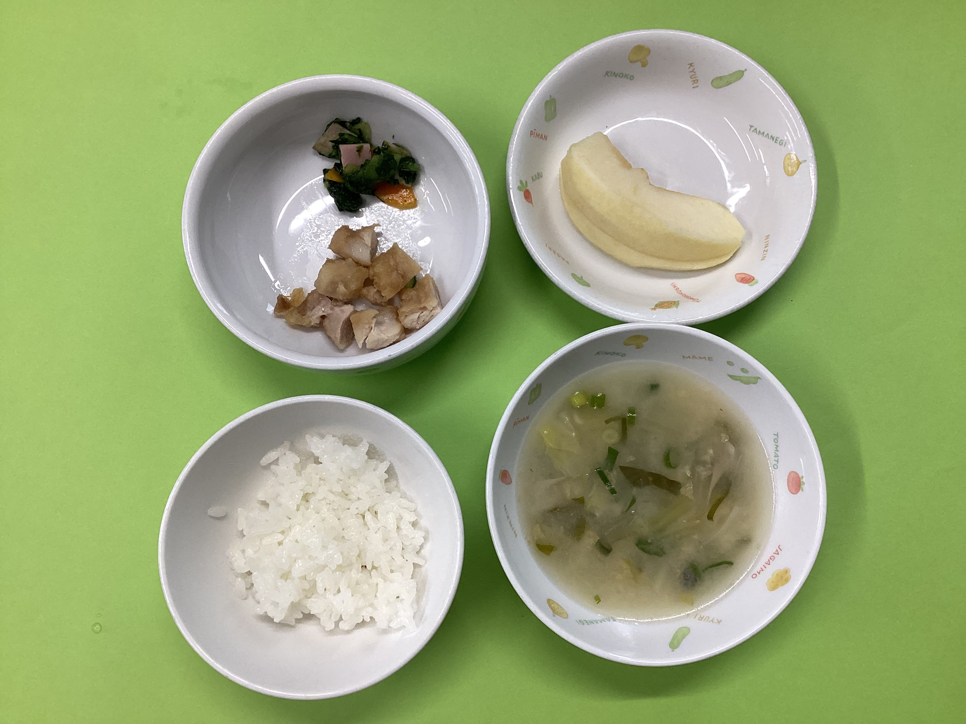 令和7年12月2日のお給食♪ 2025年 12月 5日 Fri 管理者 ・リッチツイスト ・ししゃもフライ(未満児は白身魚フライ) ・チーズサラダ ・和風ポトフ ・キウイフルーツ(未満児はりんご) (幼児) (未満児)