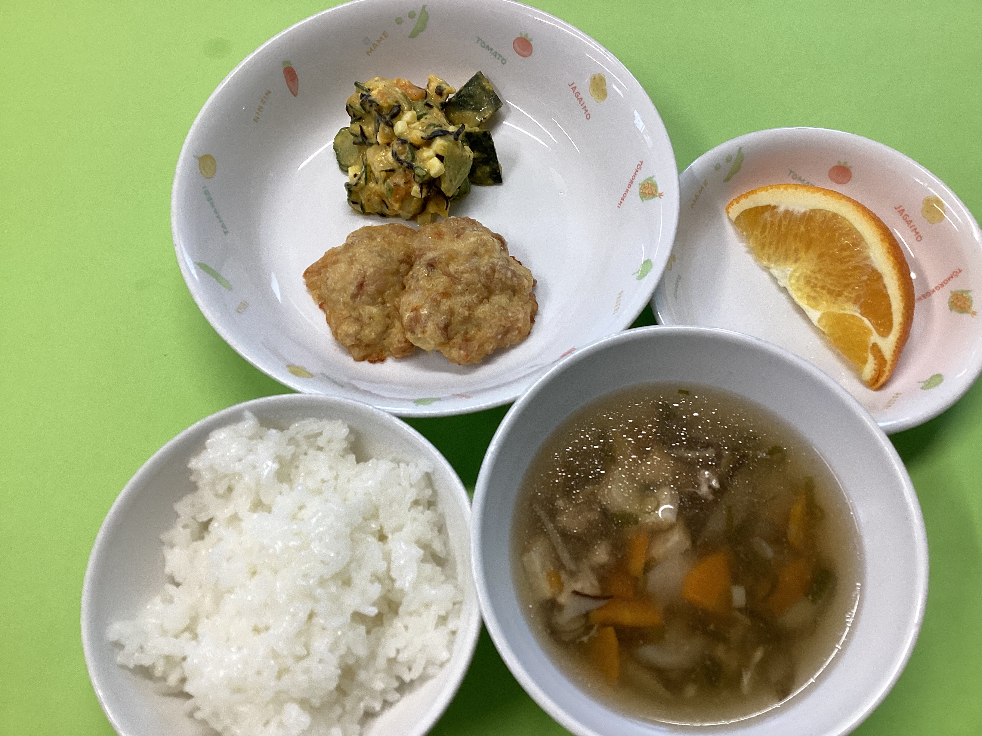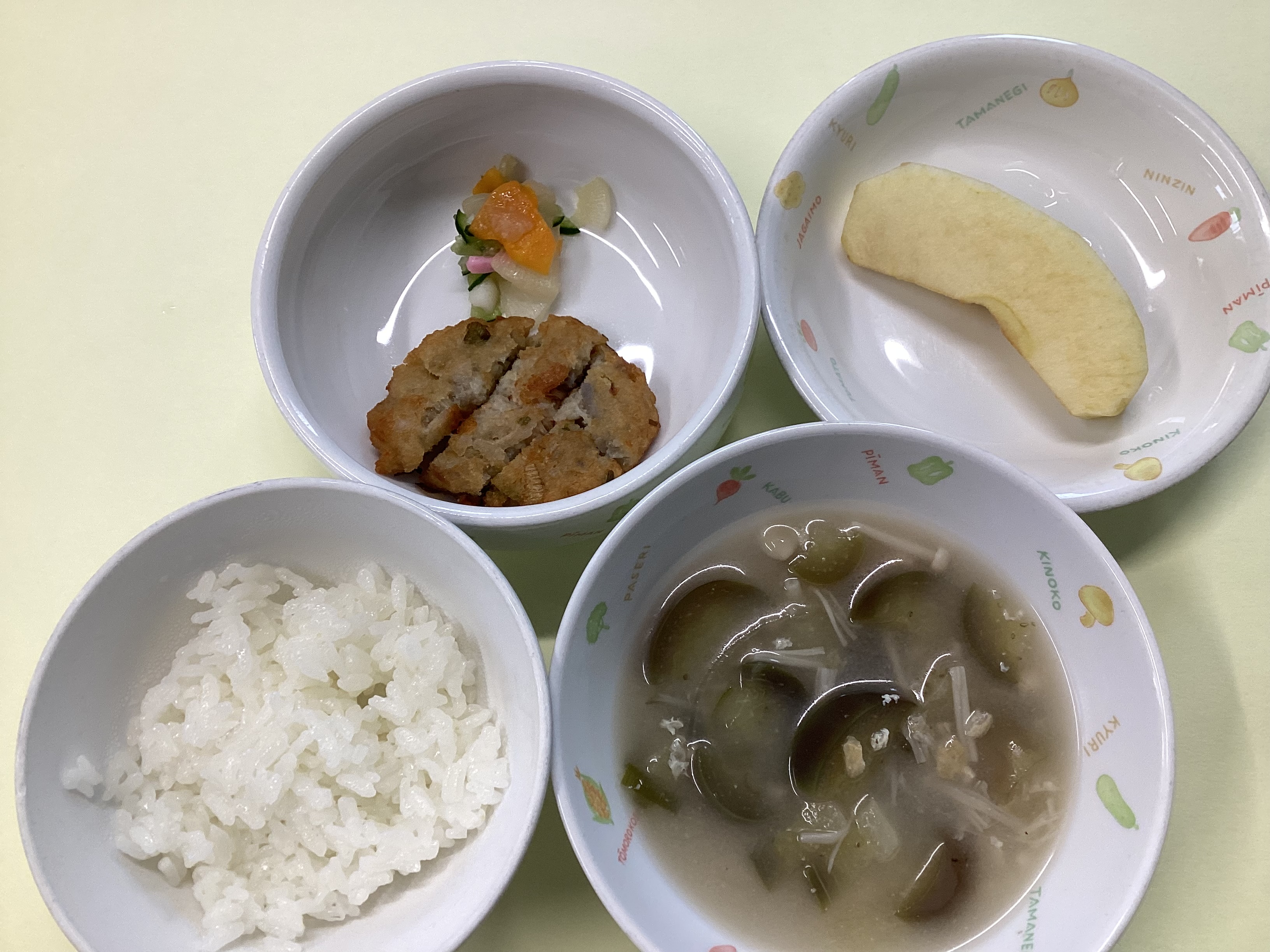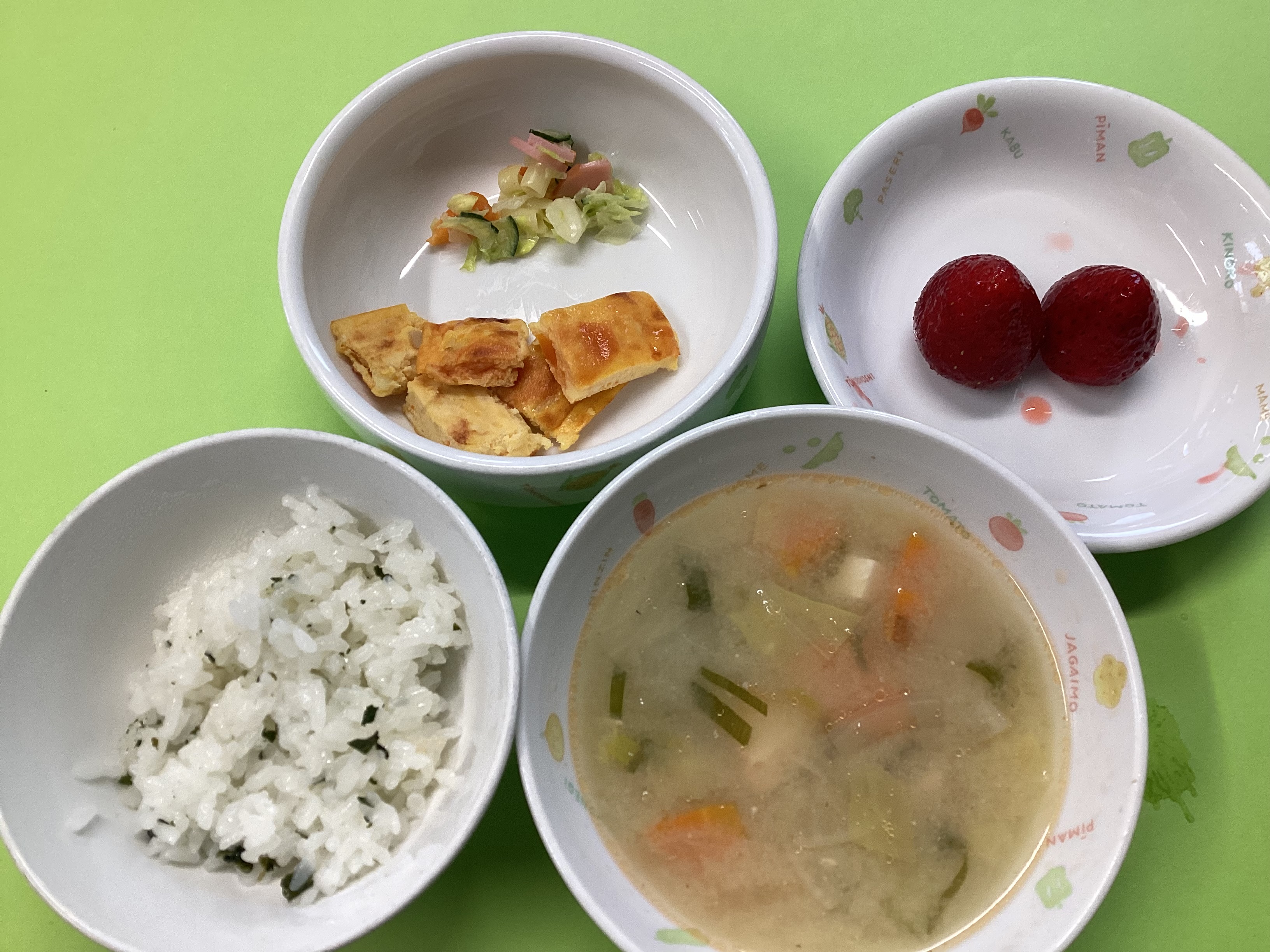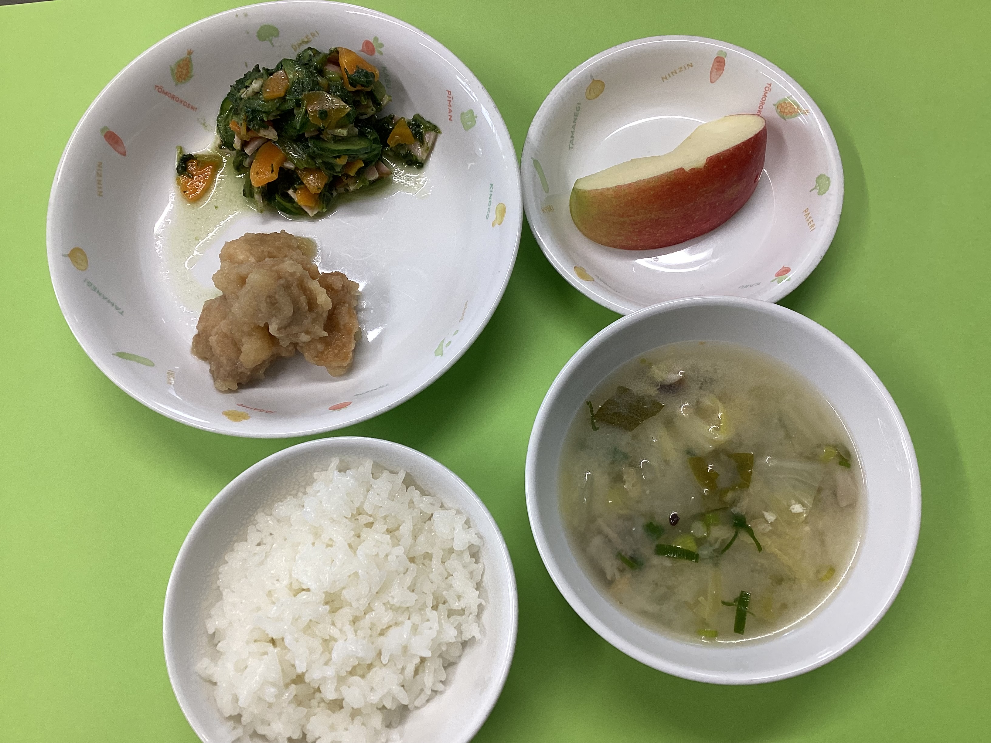令和7年11月28日のお給食♪ 2025年 11月 29日 Sat 管理者 ・炊き込みご飯 ・鰆の西京焼き(未満児は白身魚の西京焼き) ・ブロッコリーのフレンチ和え ・わかめスープ ・キウイフルーツ(未満児はりんご) (幼児) (未満児)