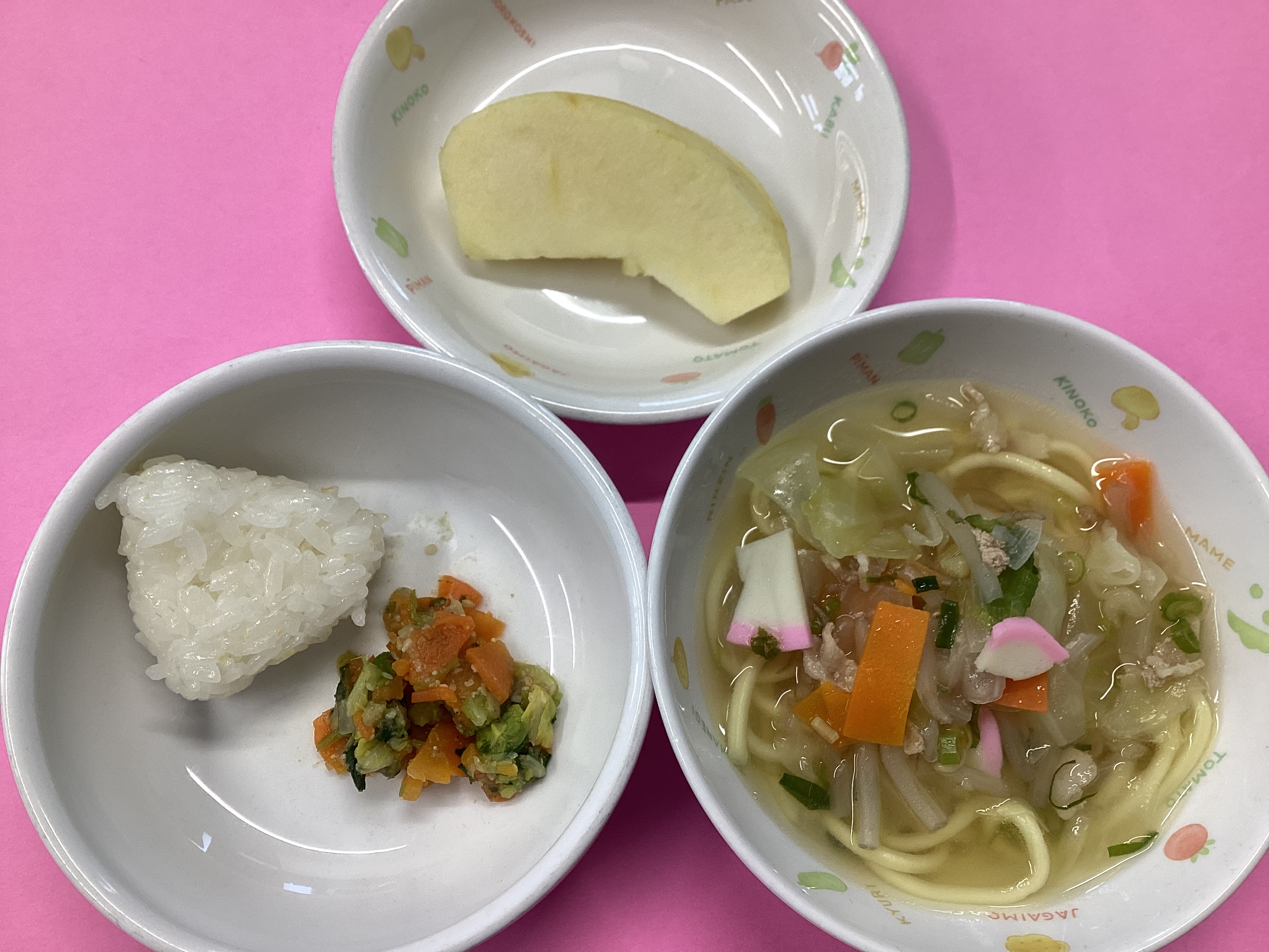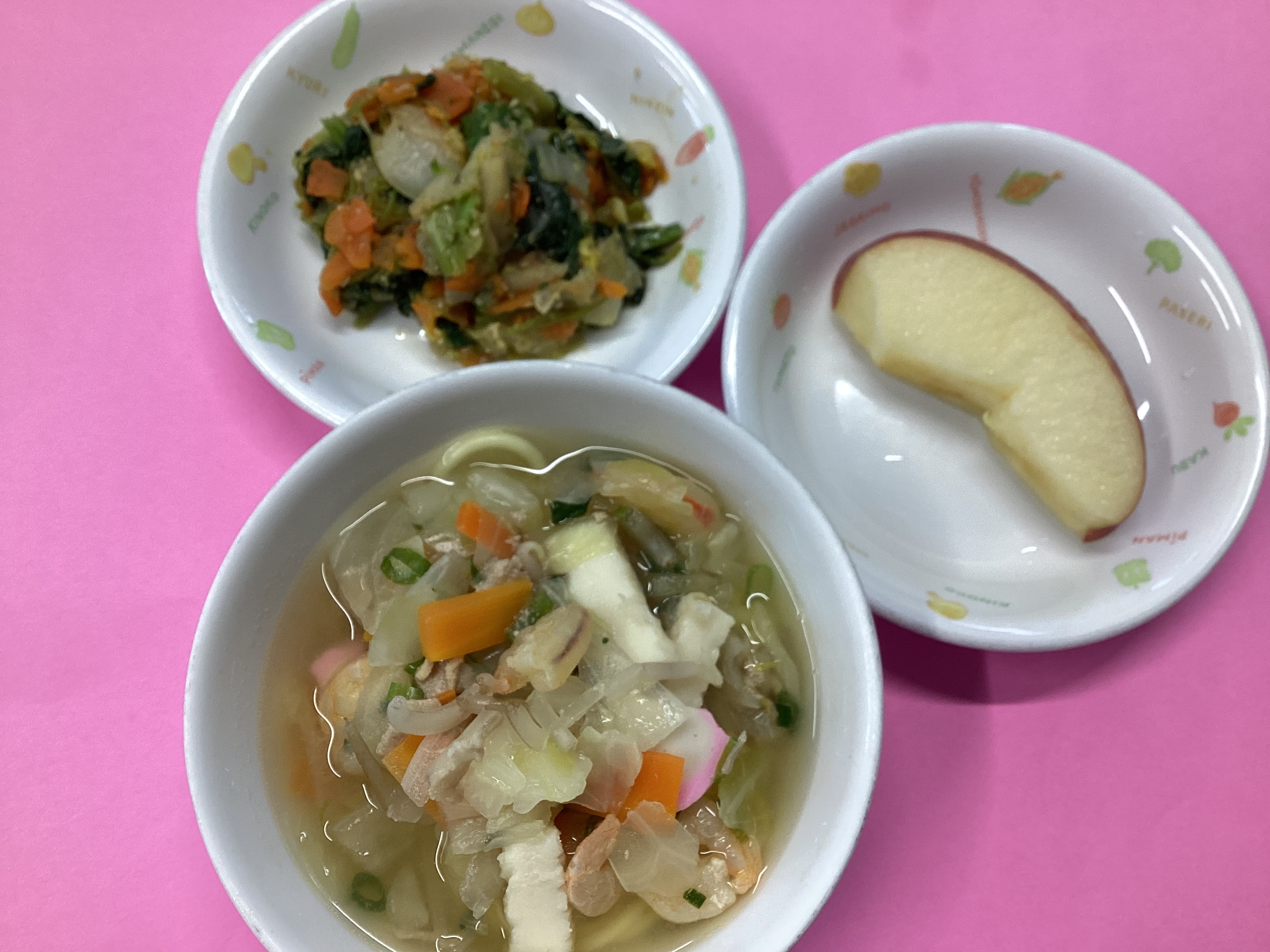 令和8年1月5日のお給食♪ 2026年 1月 9日 Fri 管理者 明けましておめでとうございます! 本年もあさひ保育園の給食ブログをよろしくお願い致します(^O^) ・ちゃんぽん ・三色ごま和え ・りんご ・たまご組のみ)塩むすび (幼児) (未満児)